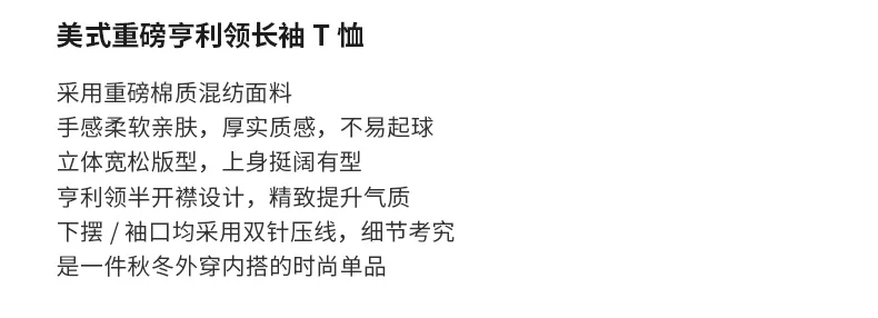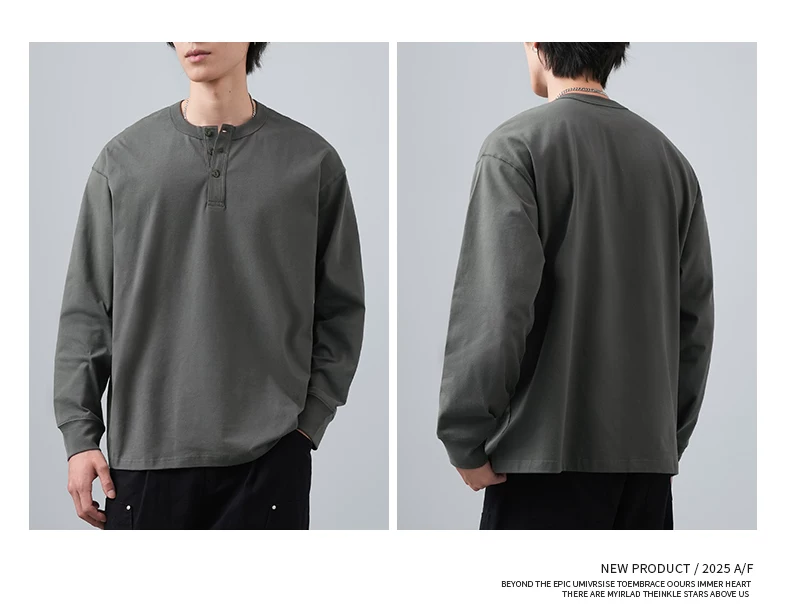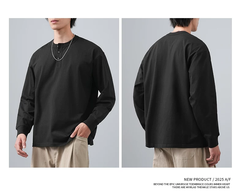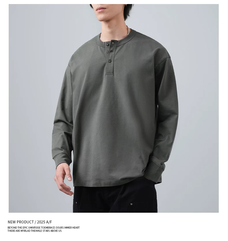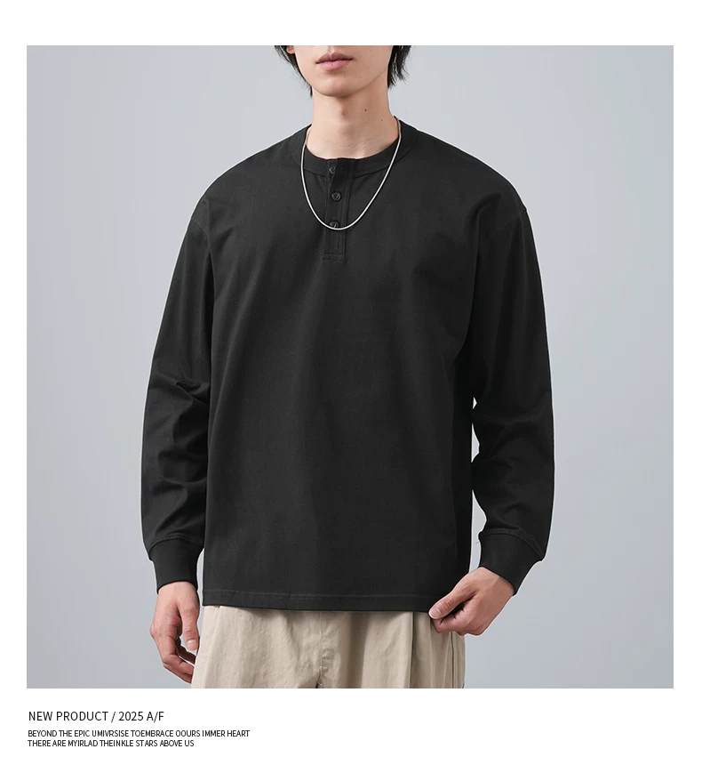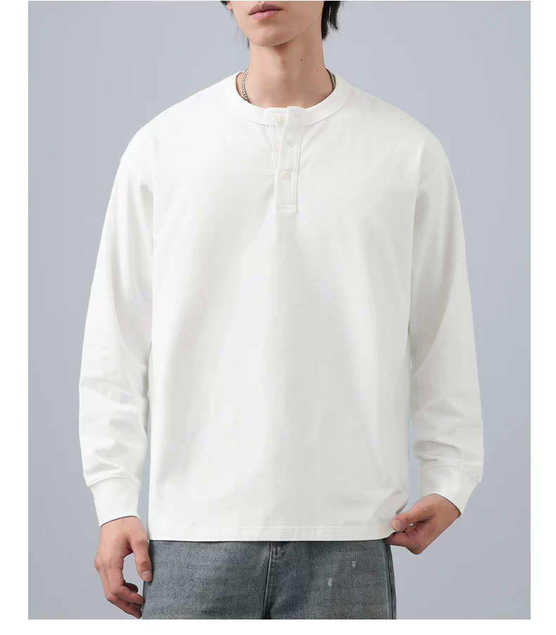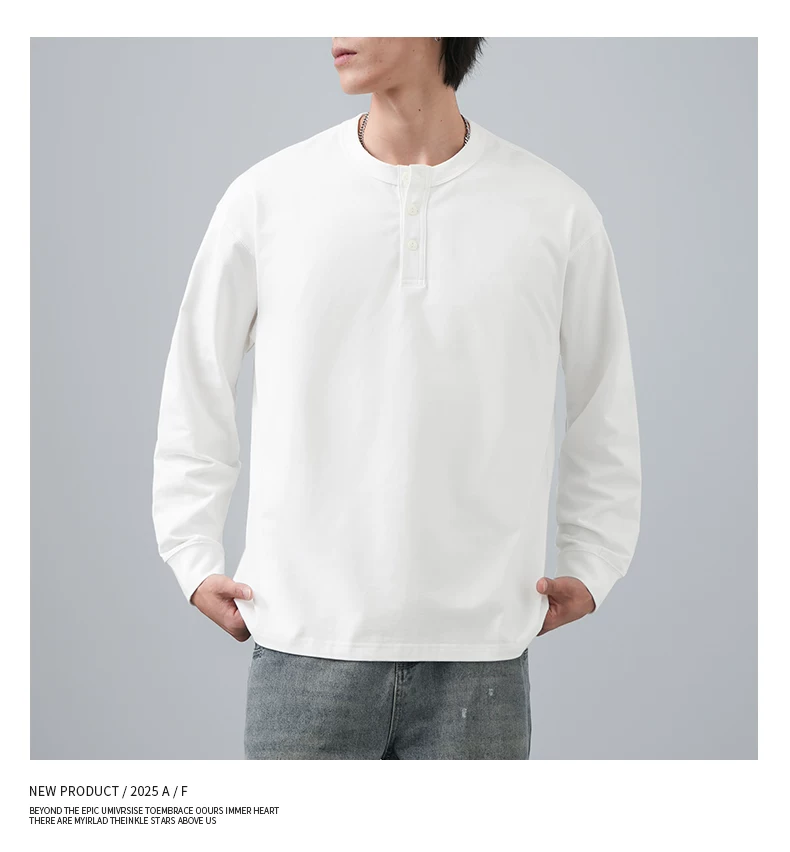 - Áo thun nam dài tay cổ trụ hạng nặng OMZM, áo sơ mi trắng đơn giản phong cách Mỹ mùa thu, áo chui đầu dáng rộng thông thường.