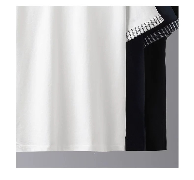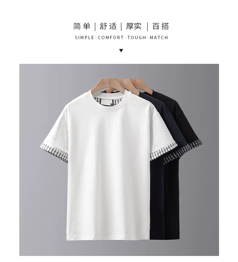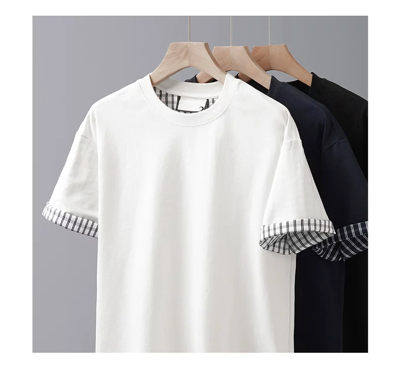 - Áo thun nam giả hai mảnh tay ngắn, chất liệu dày dặn, kiểu dáng rộng rãi mùa hè, cổ tròn, thiết kế thời trang với chi tiết phối tay áo, màu trơn nửa tay.