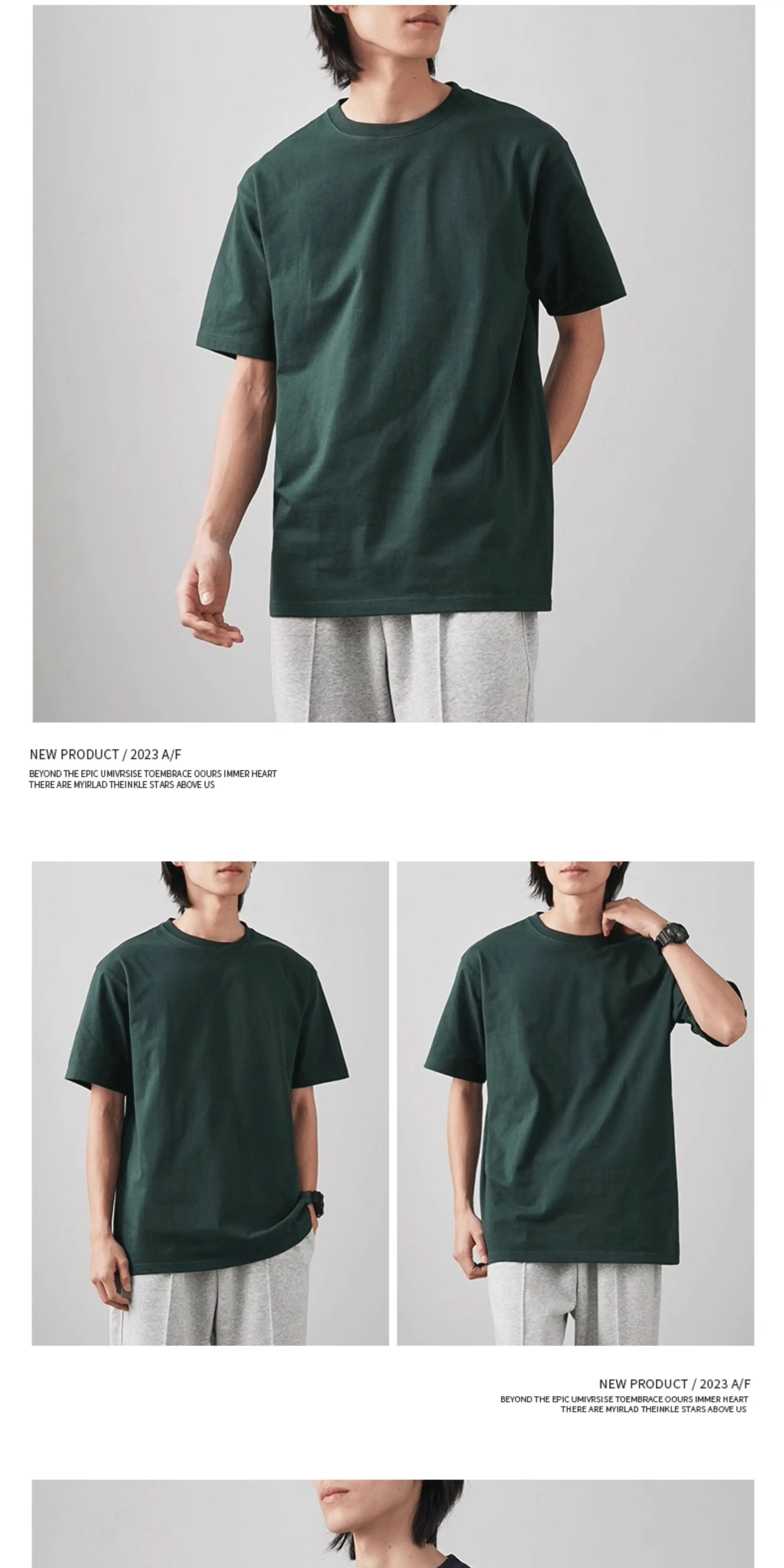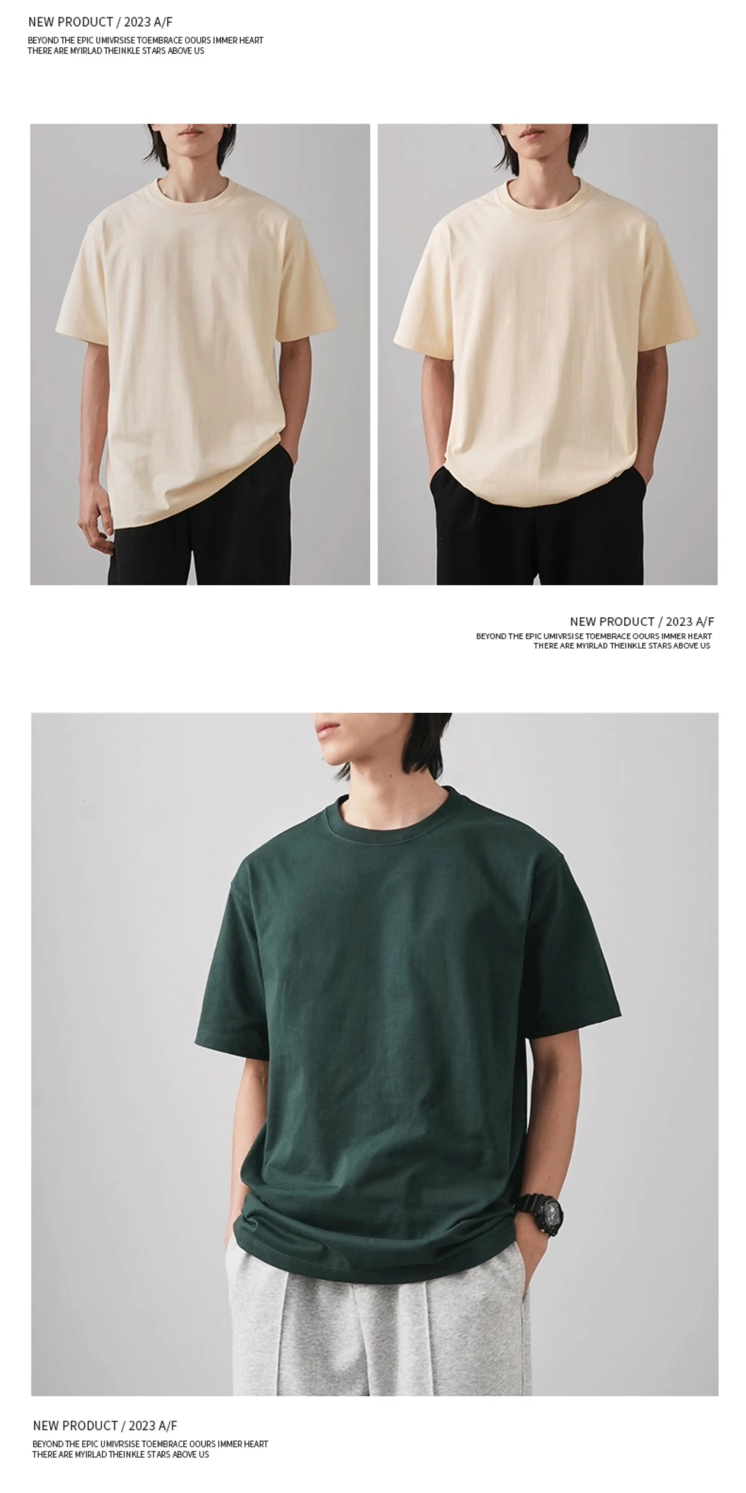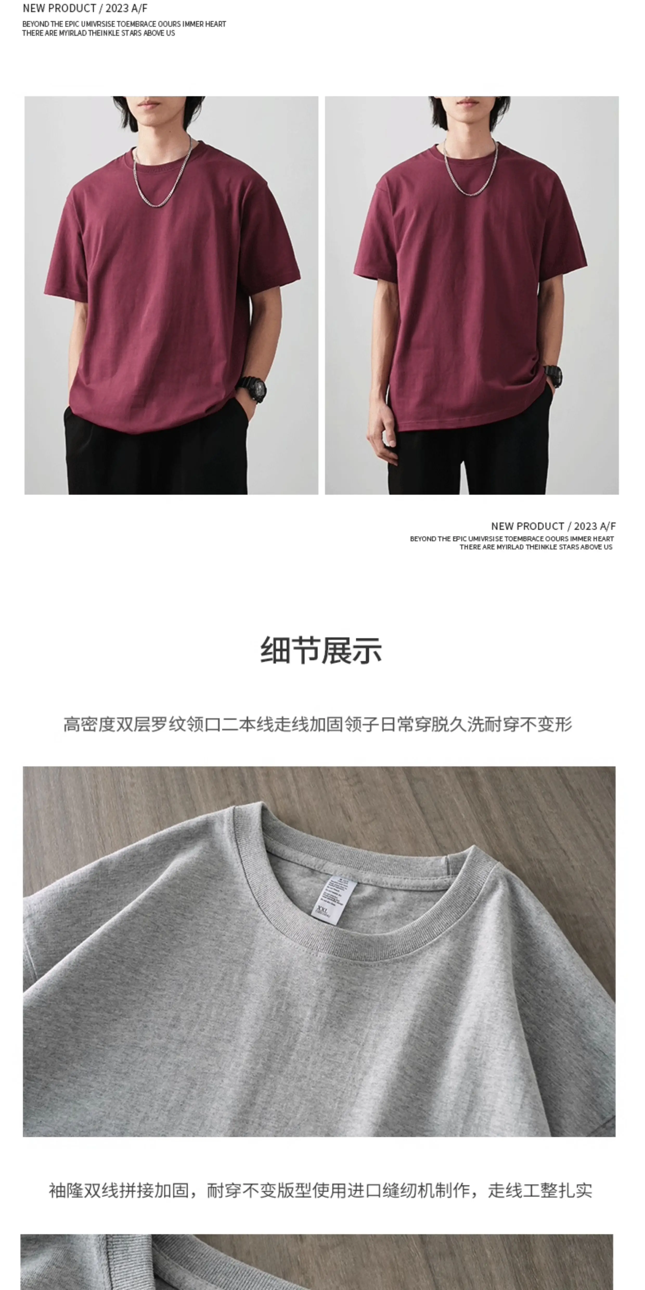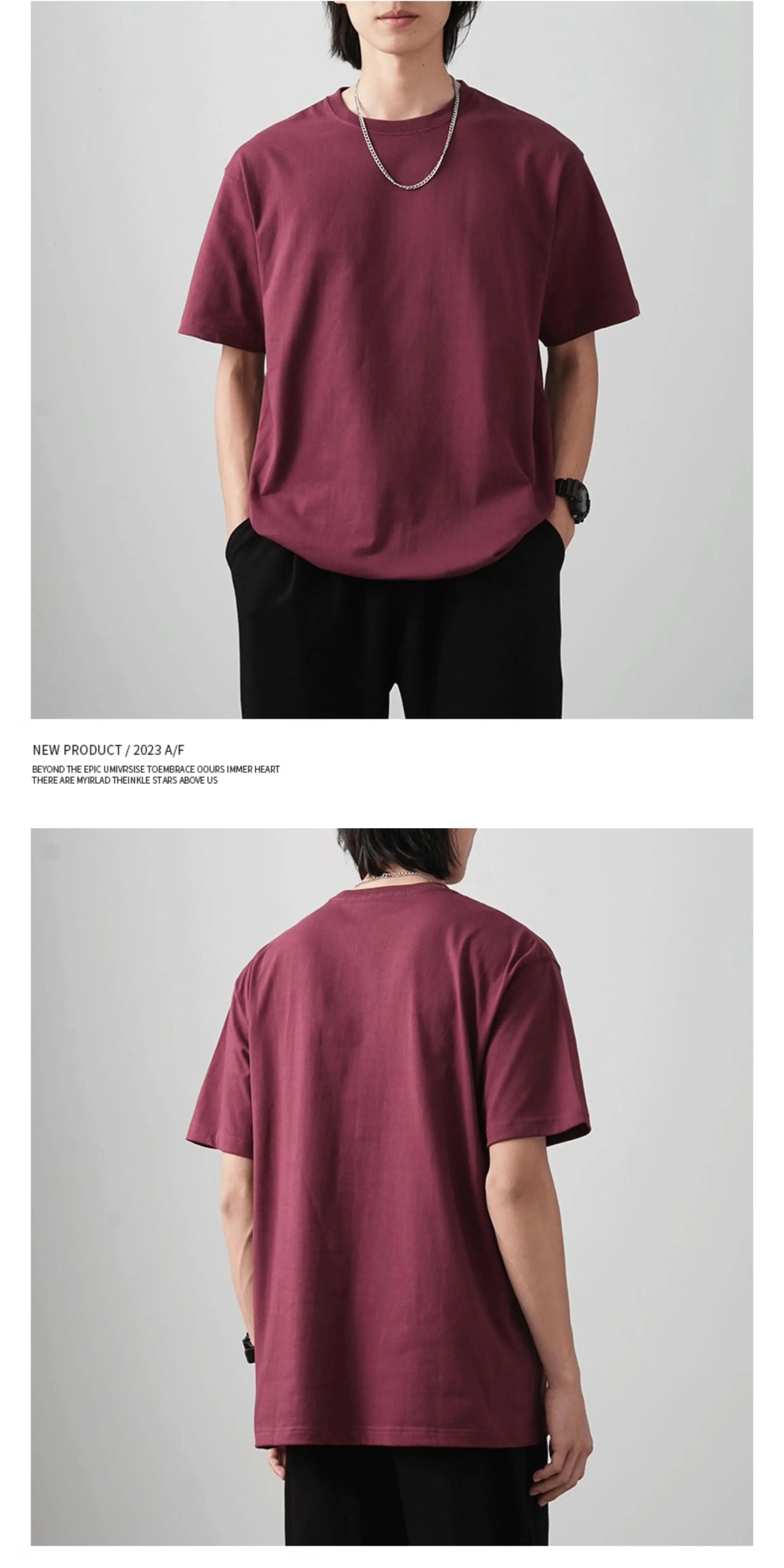 Áo thun nam hạng nặng màu đỏ rượu vang 320G, tay ngắn, Năm Rồng, cotton nguyên chất, áo sơ mi nửa tay cổ điển kiểu Mỹ mùa hè hợp thời trang