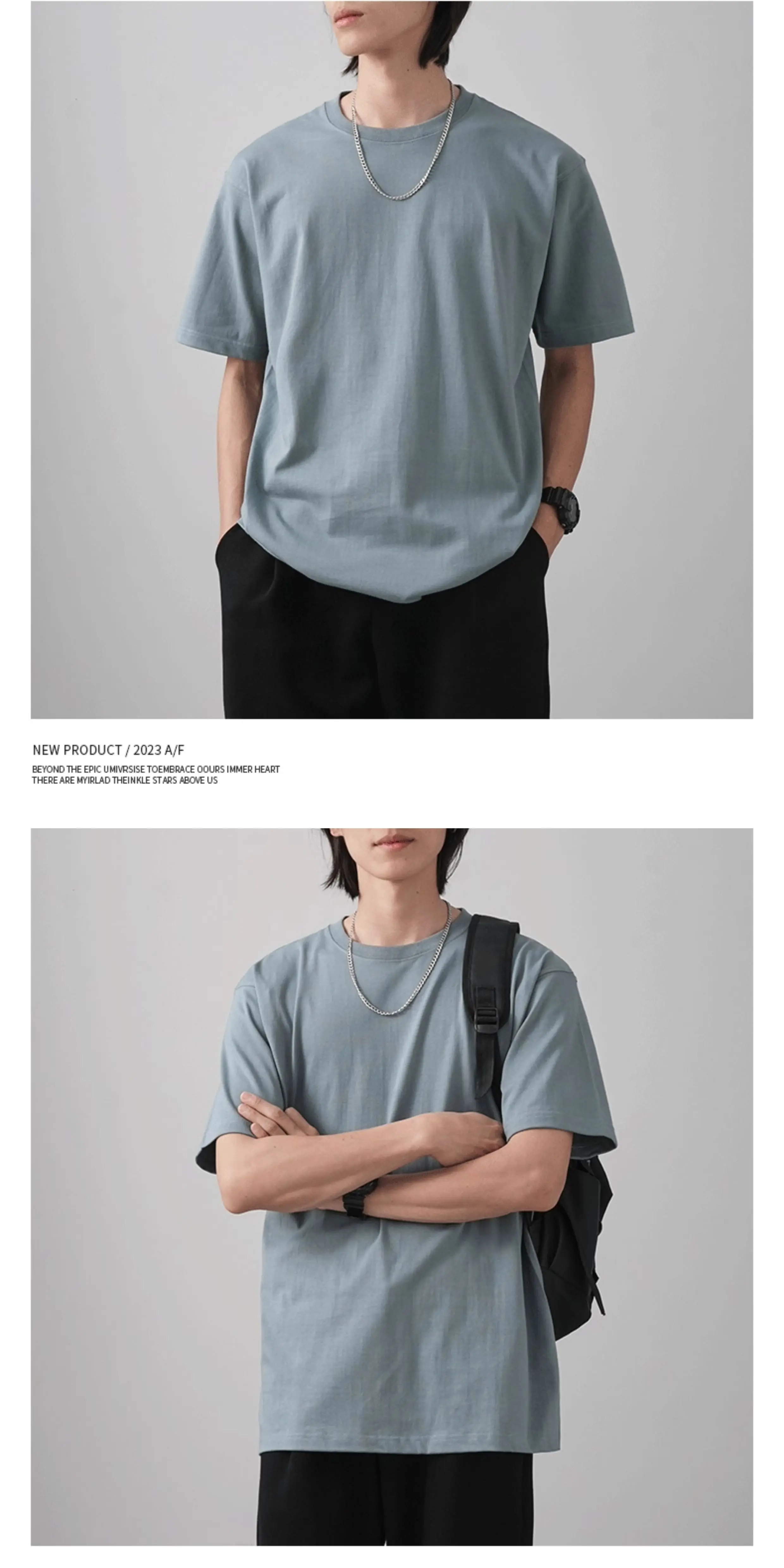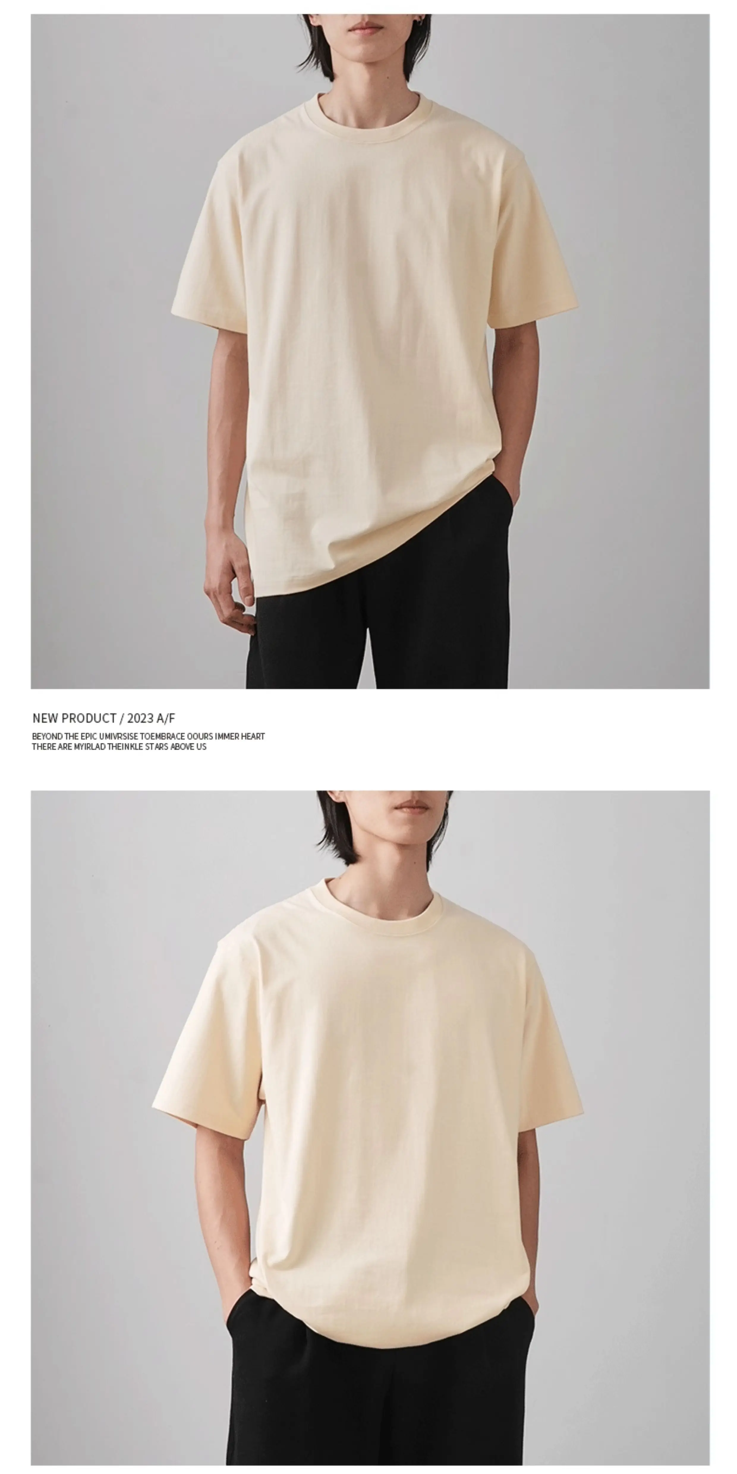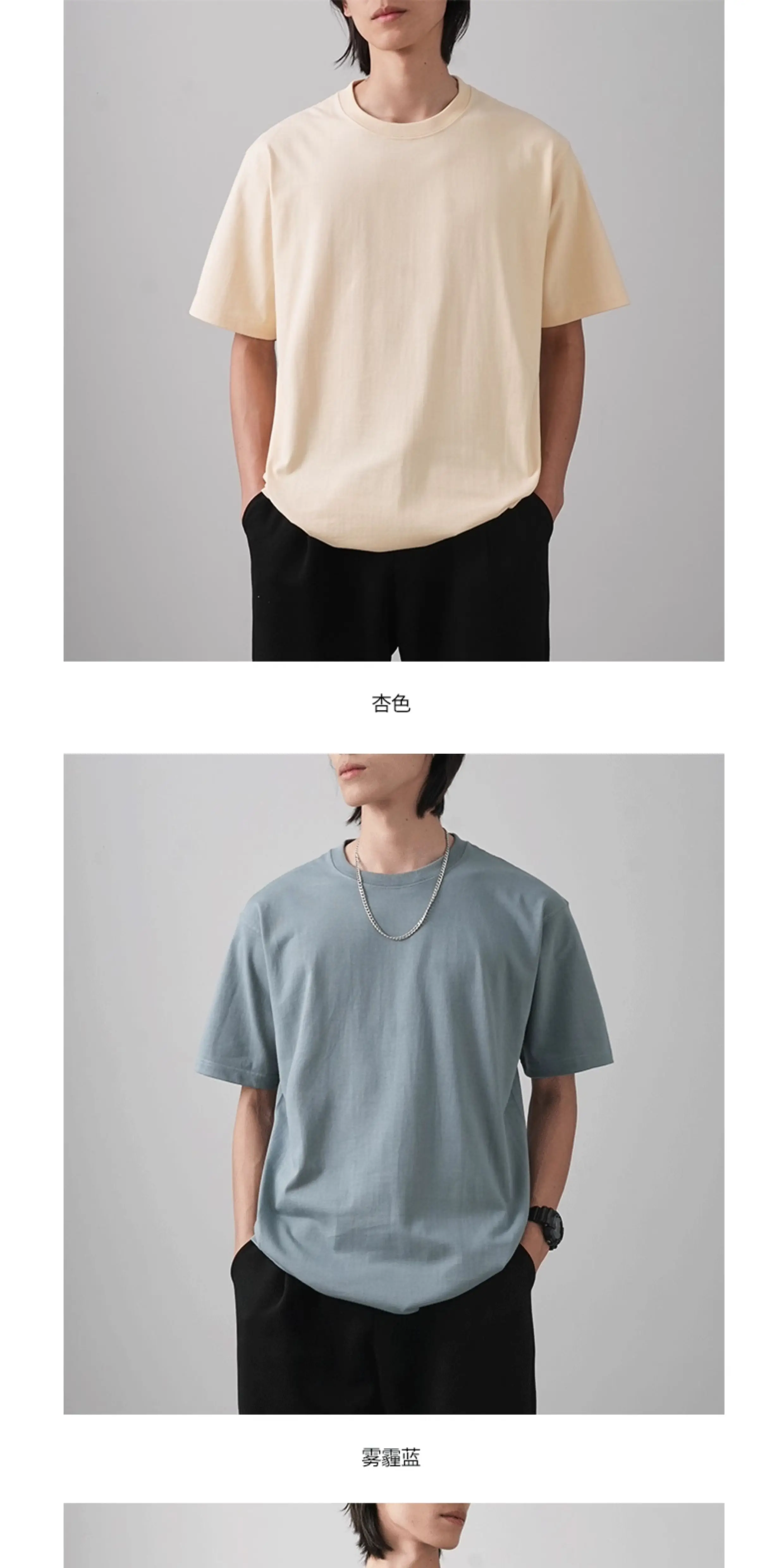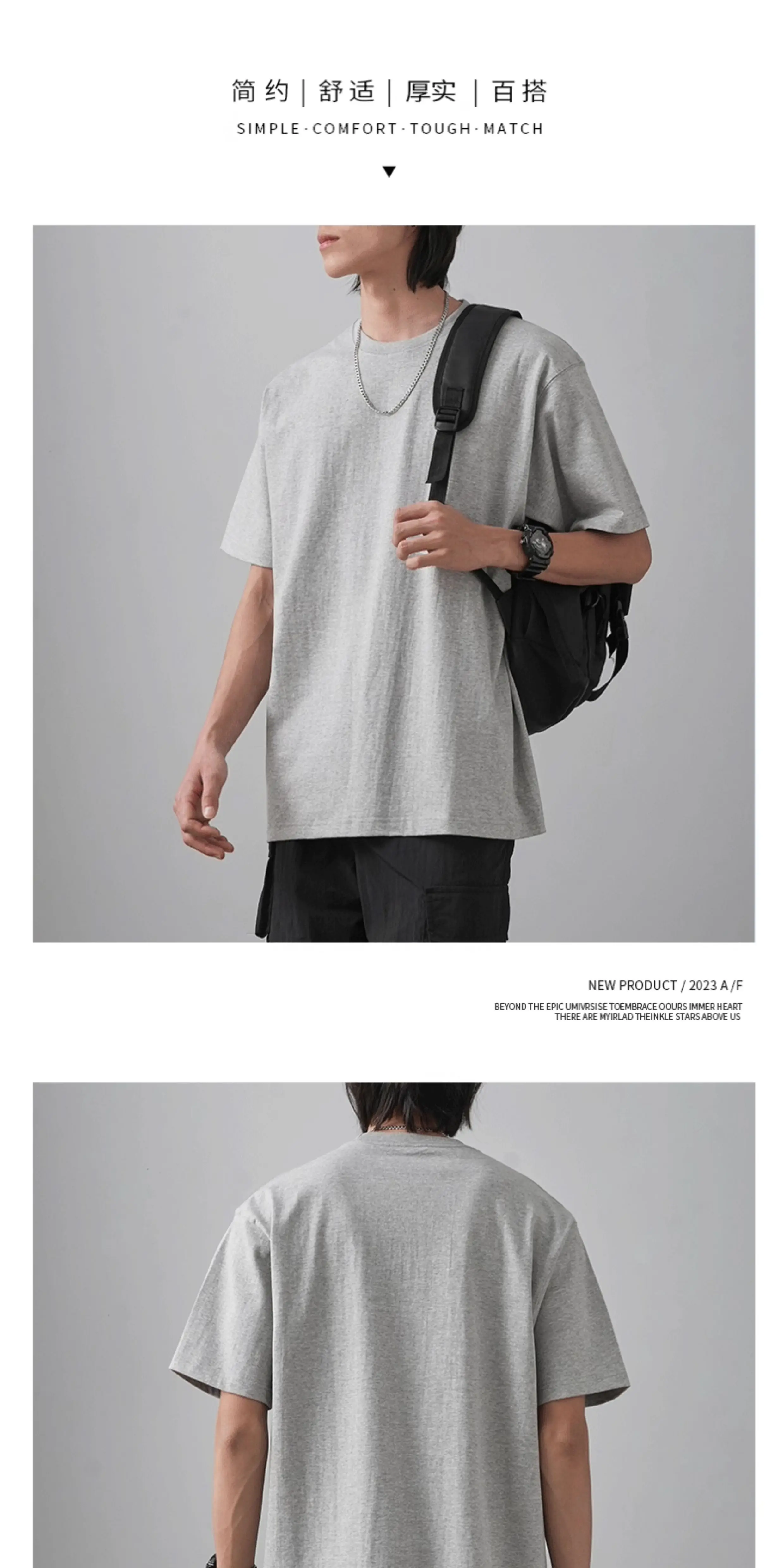 Áo thun nam hạng nặng màu đỏ rượu vang 320G, tay ngắn, Năm Rồng, cotton nguyên chất, áo sơ mi nửa tay cổ điển kiểu Mỹ mùa hè hợp thời trang
