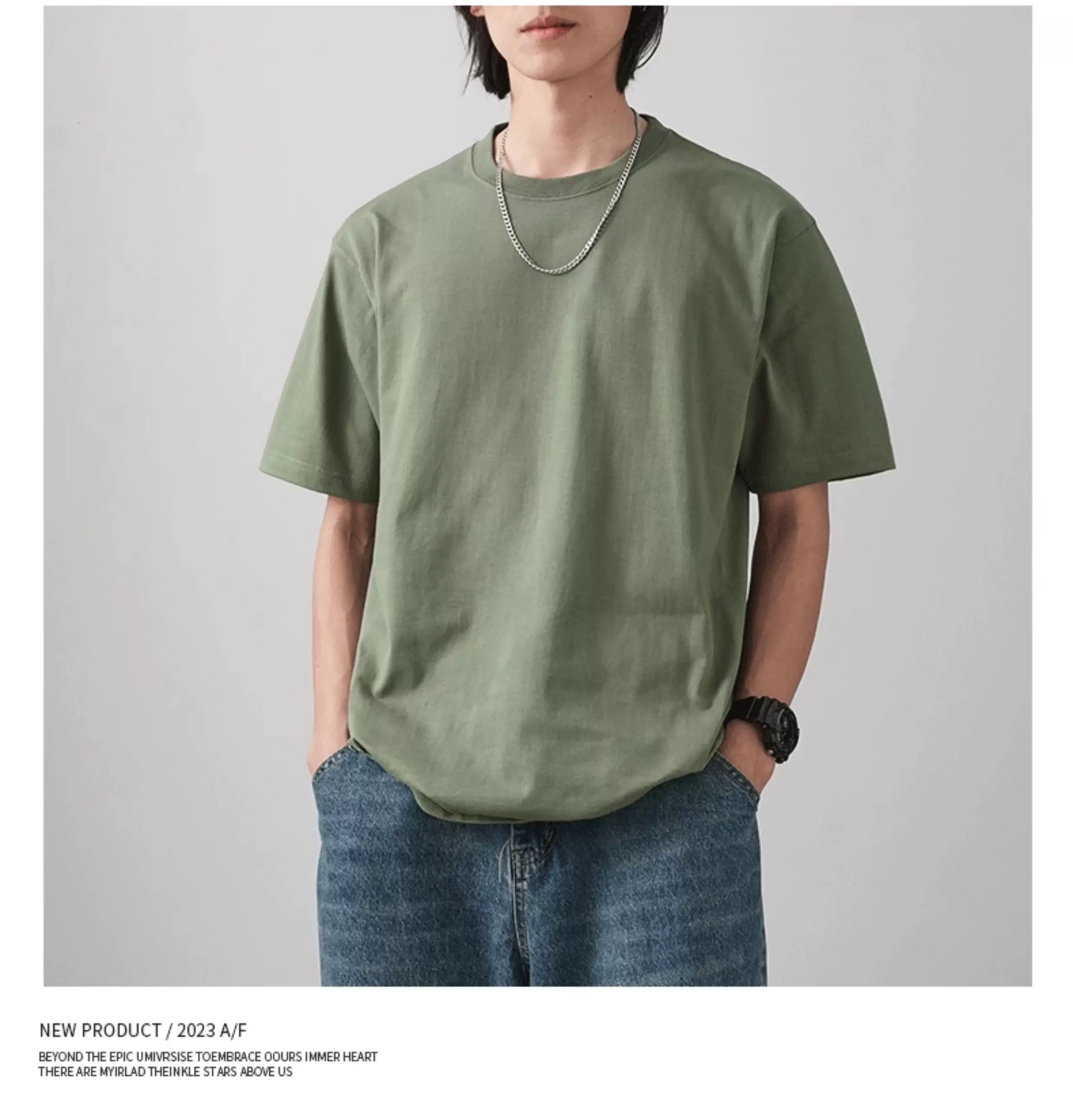 - Áo thun nam hạng nặng màu đỏ rượu vang 320G, tay ngắn, Năm Rồng, cotton nguyên chất, áo sơ mi nửa tay cổ điển kiểu Mỹ mùa hè hợp thời trang