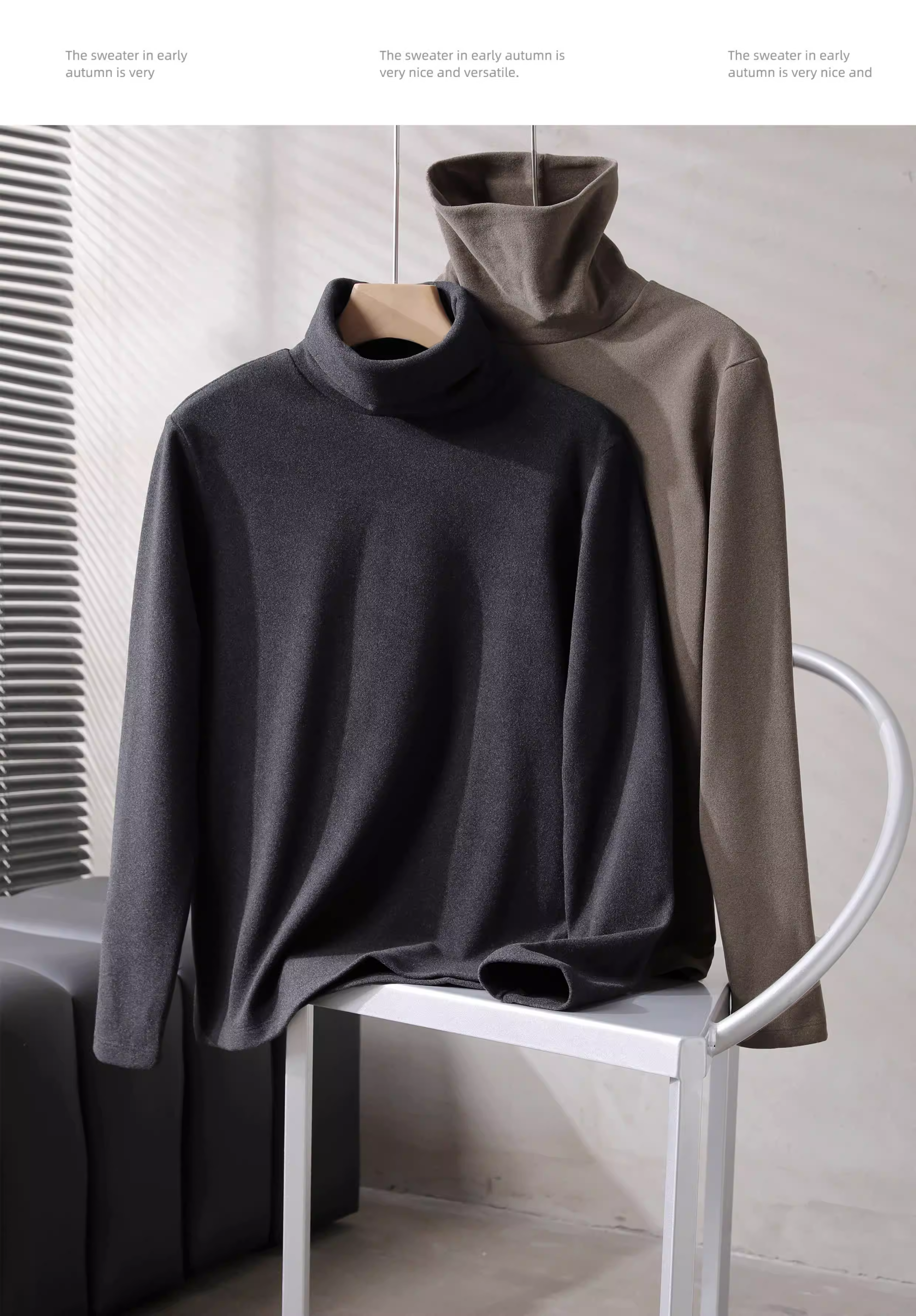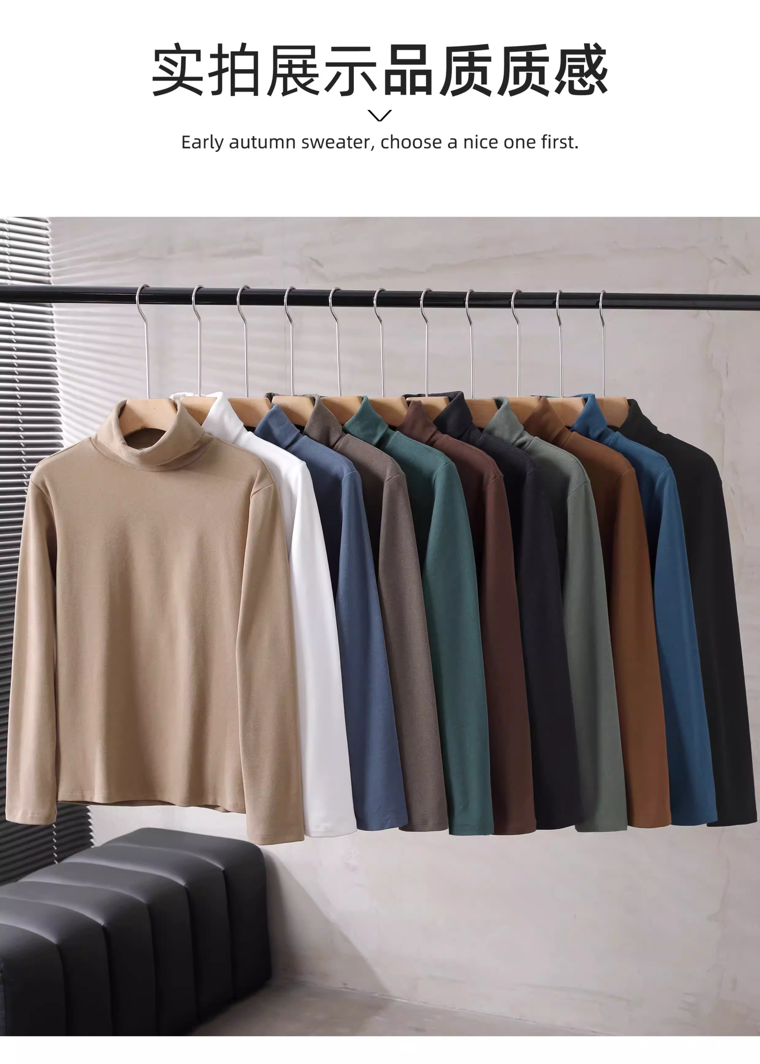 Áo thun nam JIEYI màu trơn giữ ấm mùa thu đông, lớp lót giữ nhiệt chải mềm tự sưởi ấm, cổ cao, dáng ôm, tay dài