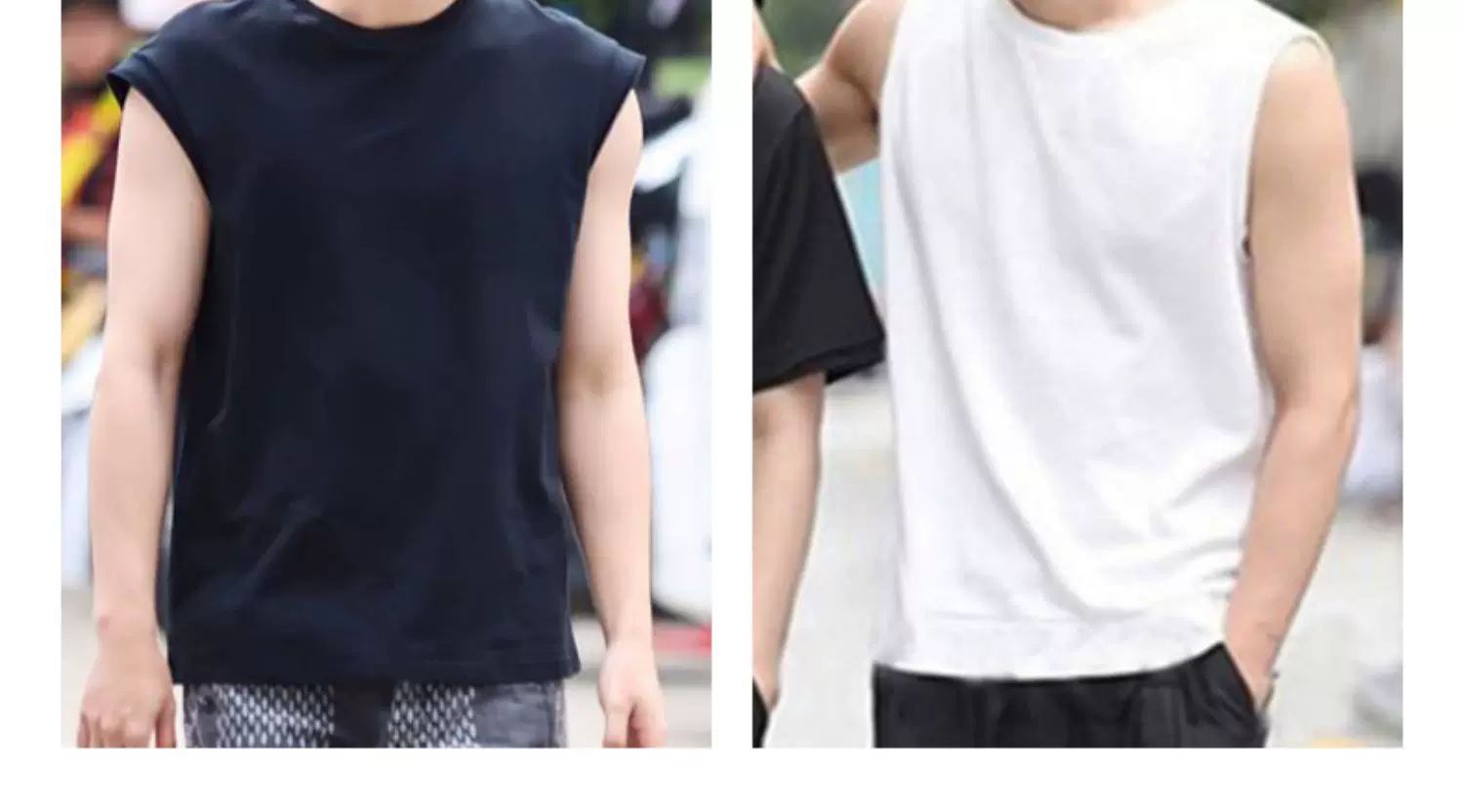 - Áo thun nam không tay, chất liệu cotton nguyên chất, cổ tròn, mặc trong mùa hè, áo vest thể thao màu trắng tinh khiết, dáng rộng.