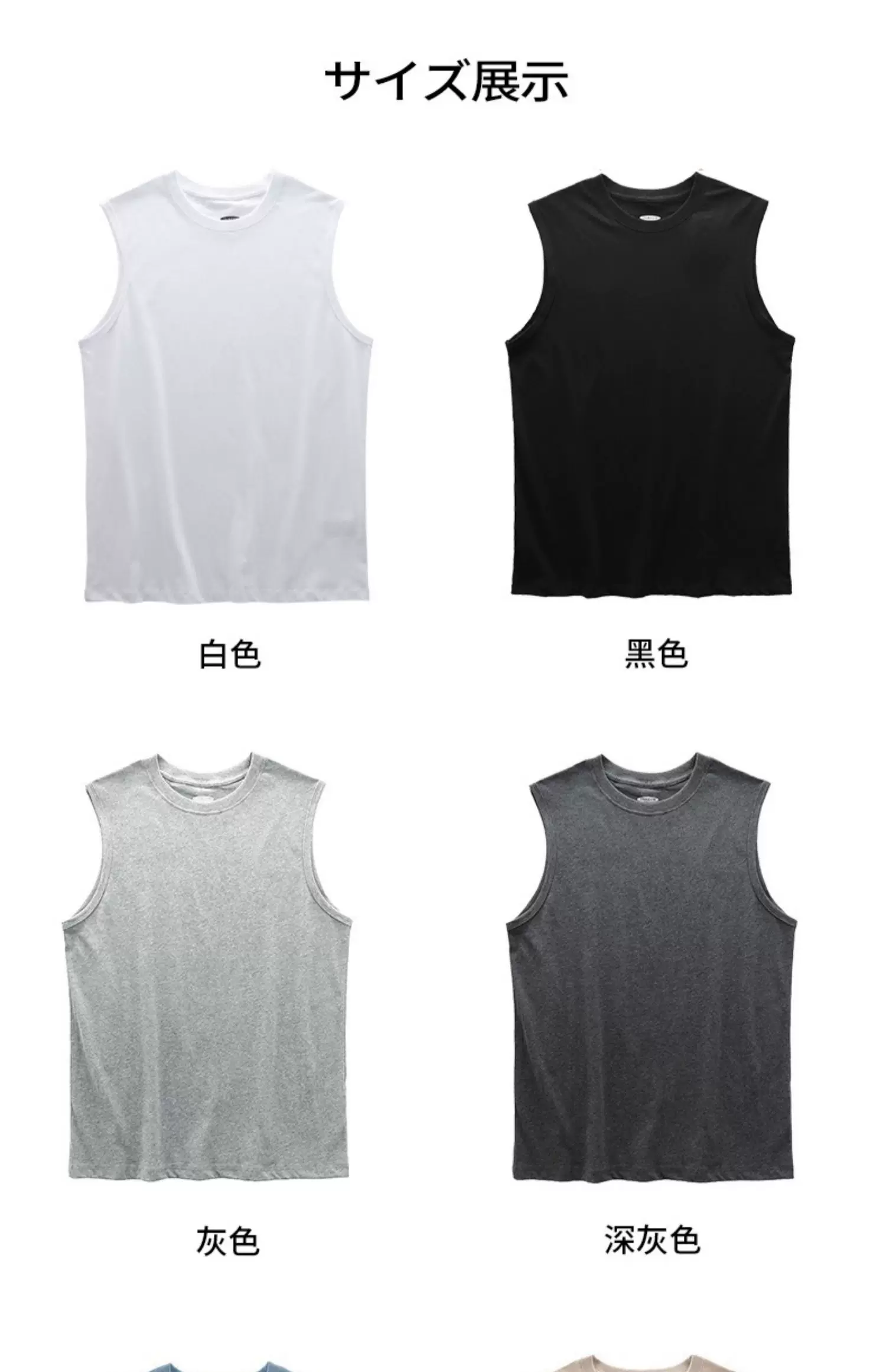 Áo thun nam không tay, chất liệu cotton nguyên chất, cổ tròn, mặc trong mùa hè, áo vest thể thao màu trắng tinh khiết, dáng rộng.