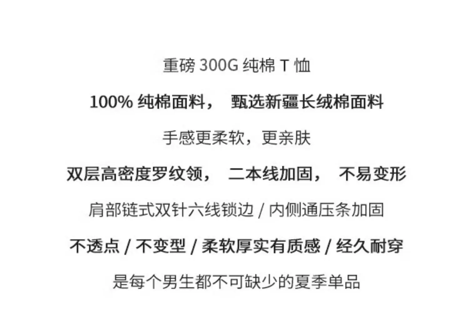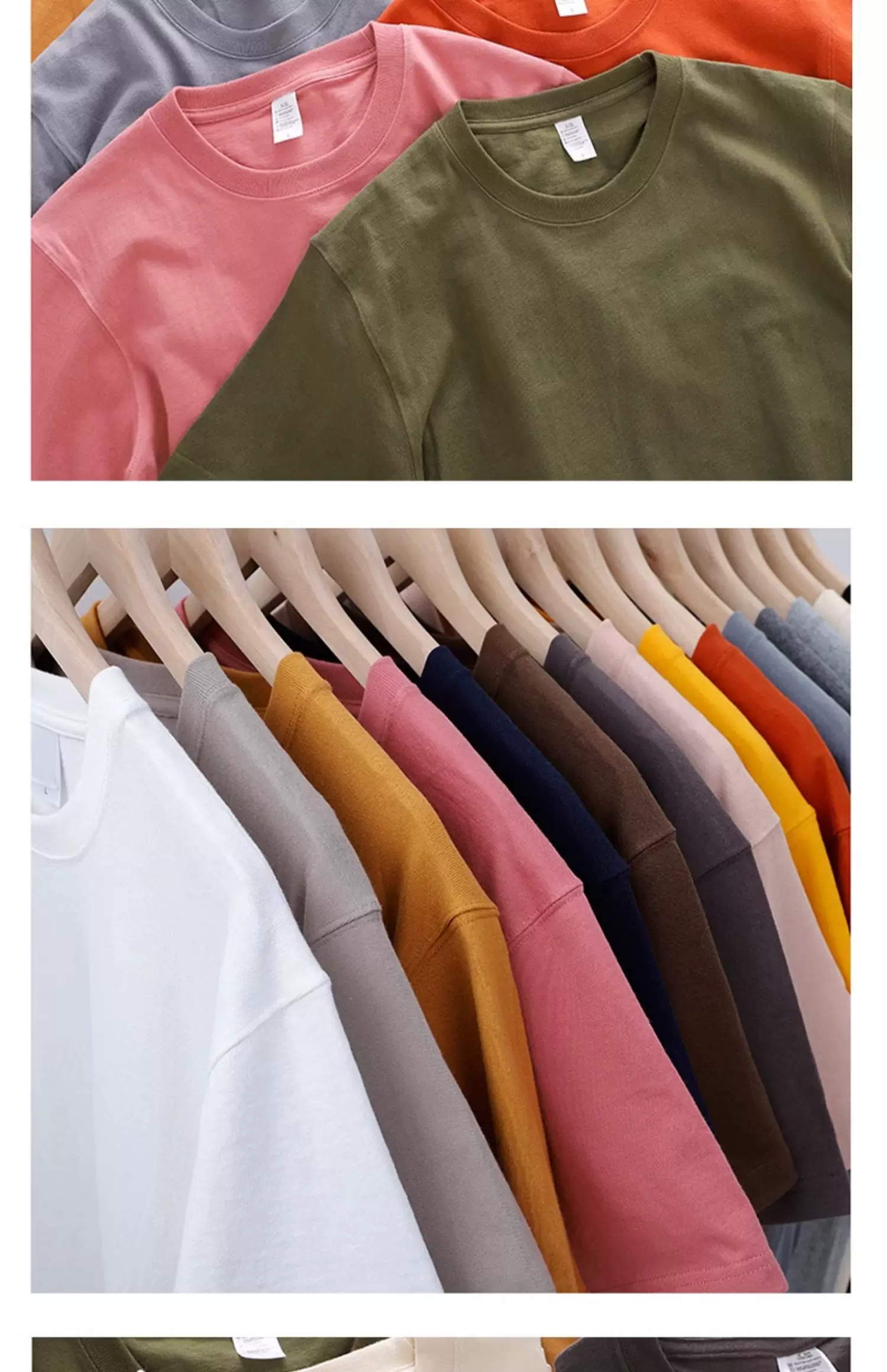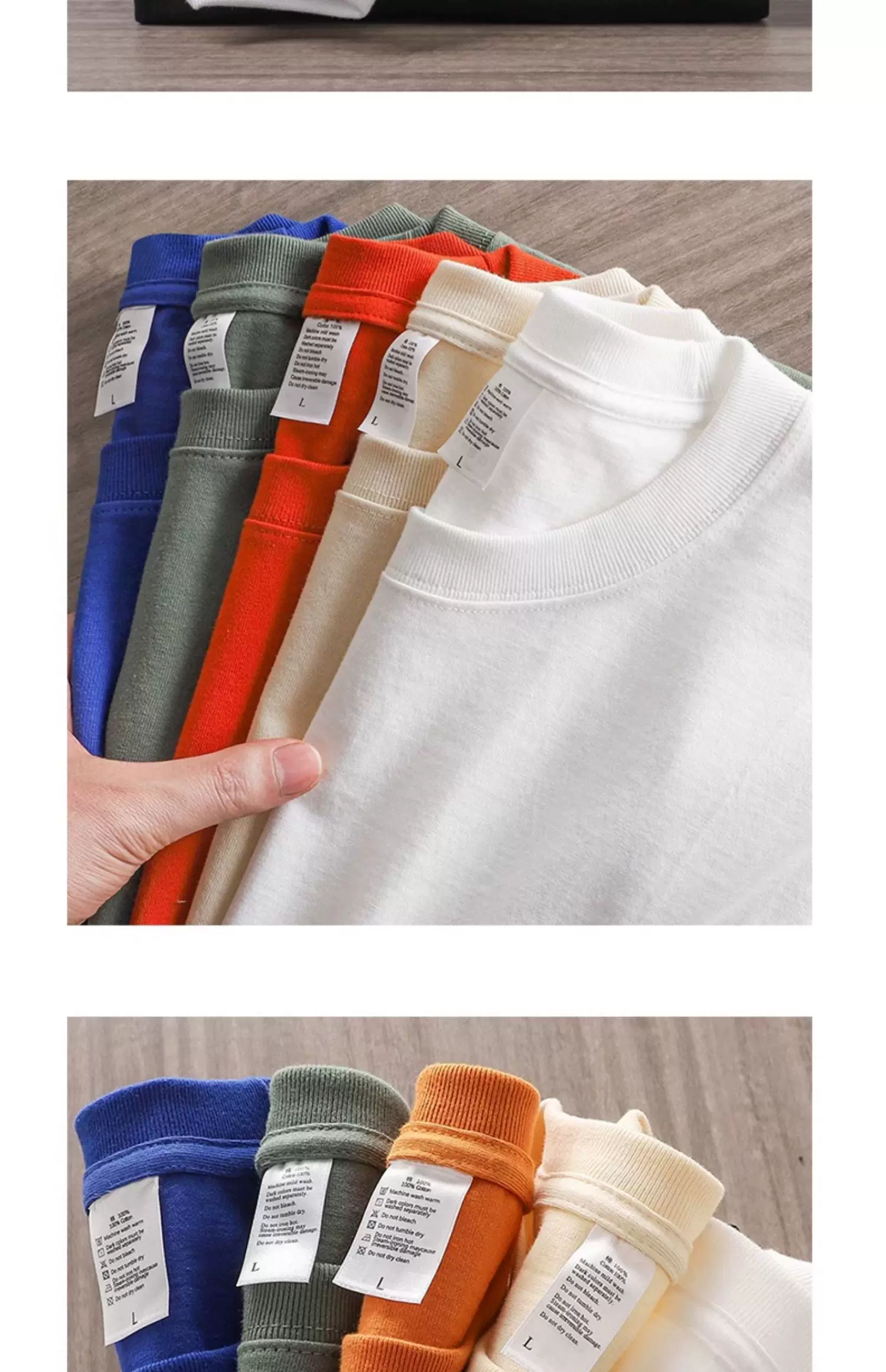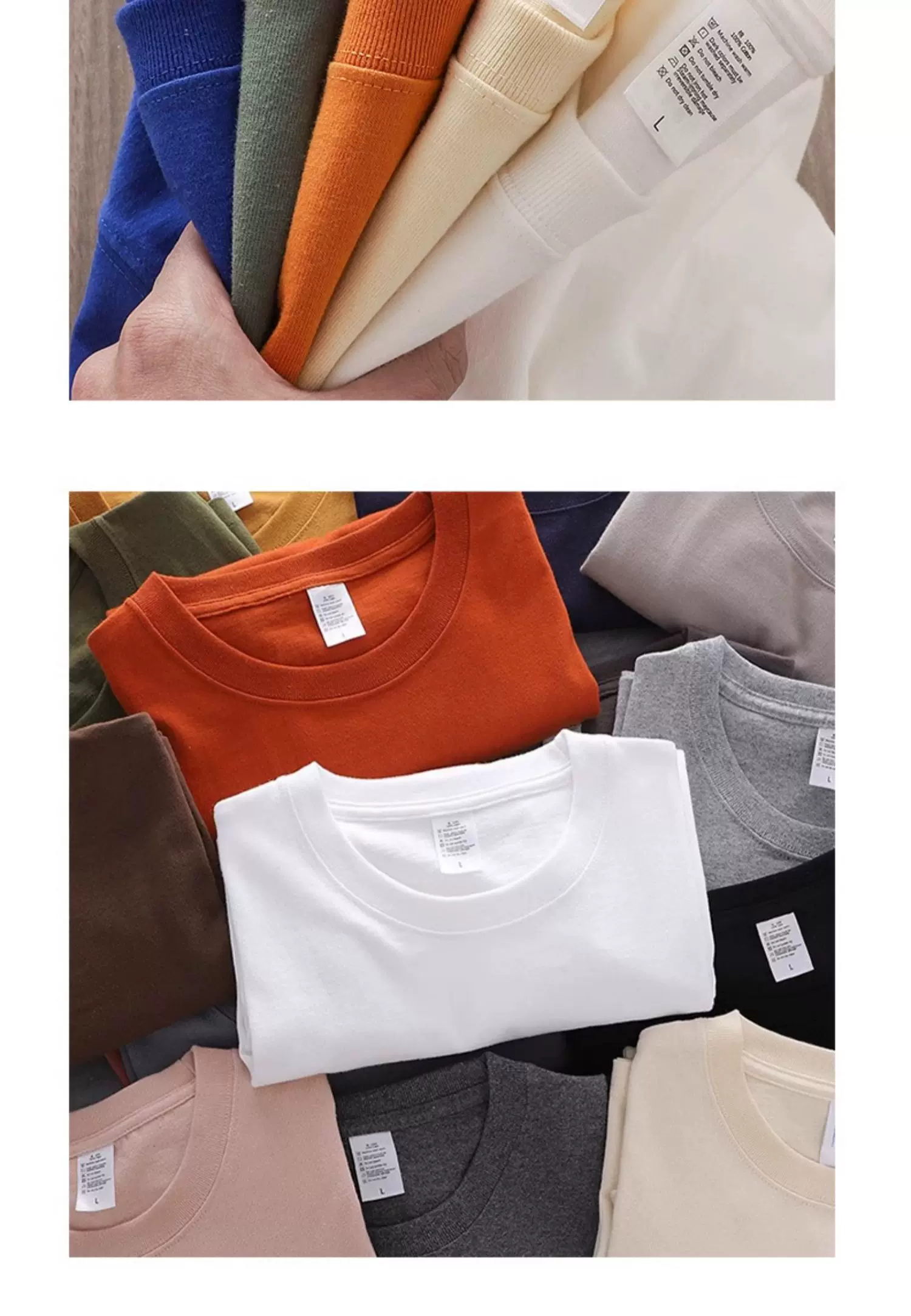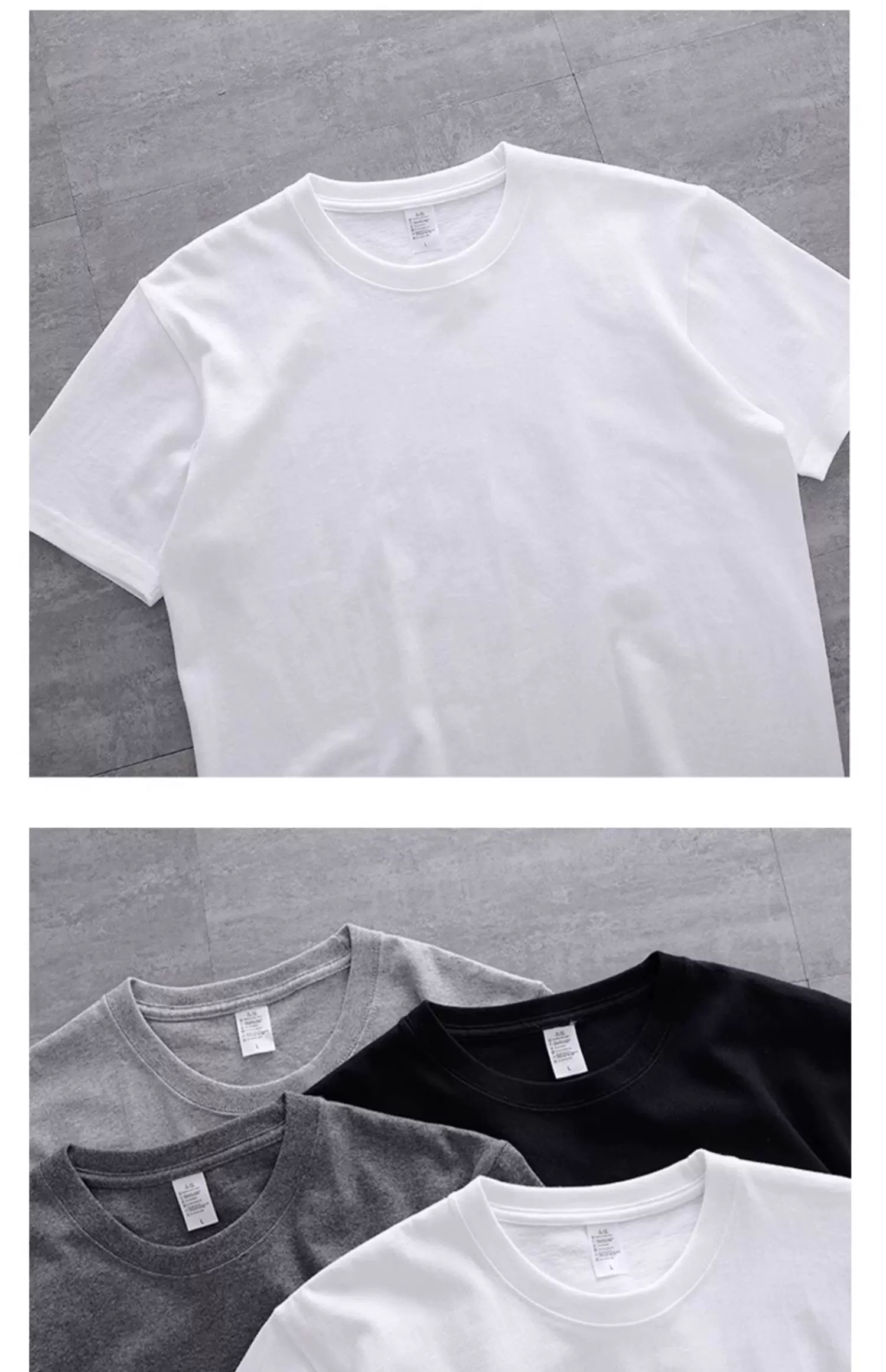 Áo thun nam kiểu Mỹ, chất liệu cotton 100%, dày 300g, tay ngắn, dáng rộng, màu trắng trơn, màu sắc đơn giản, kiểu dáng cổ điển.