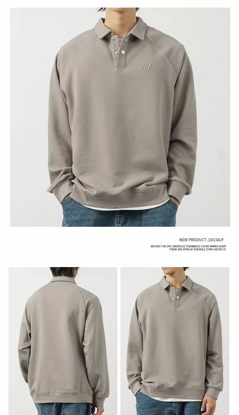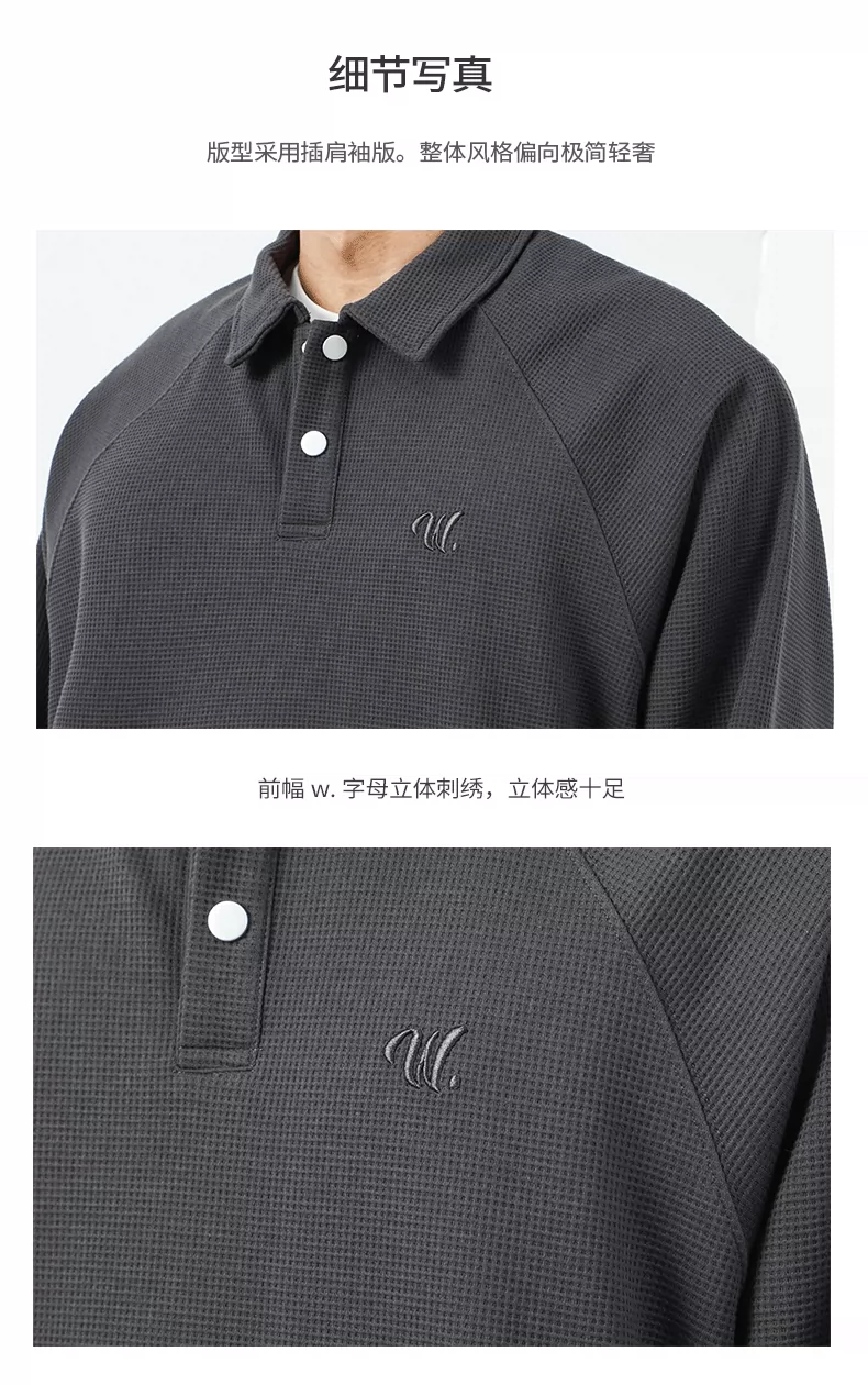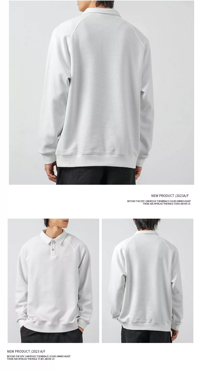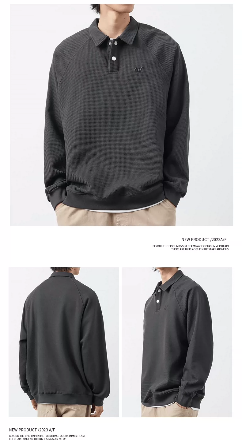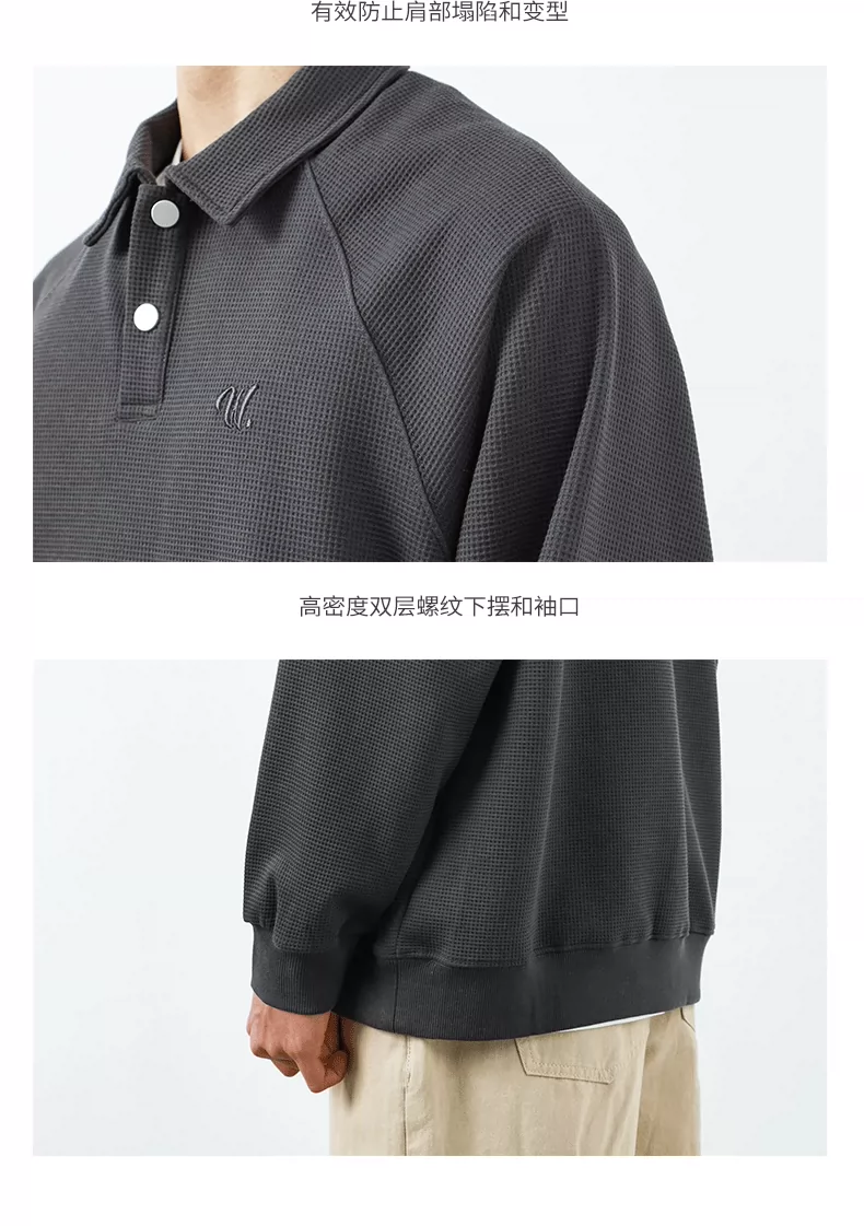 - Áo thun nam OMZM kiểu Mỹ, chất liệu vải waffle dày 340G, cổ áo kiểu polo thêu, dáng rộng, mùa thu, áo lót dài tay