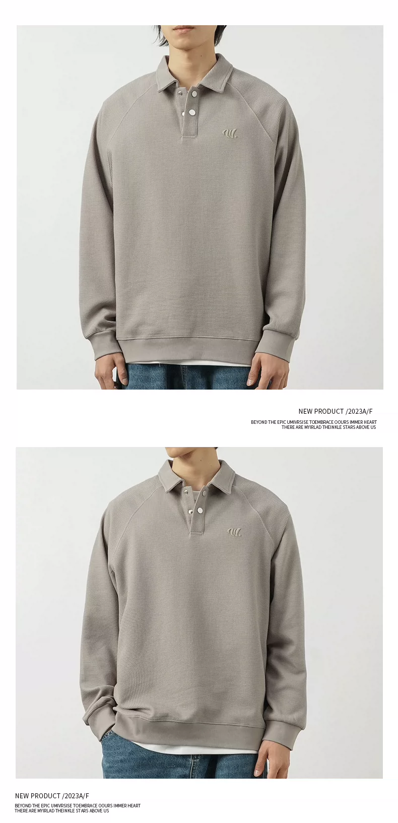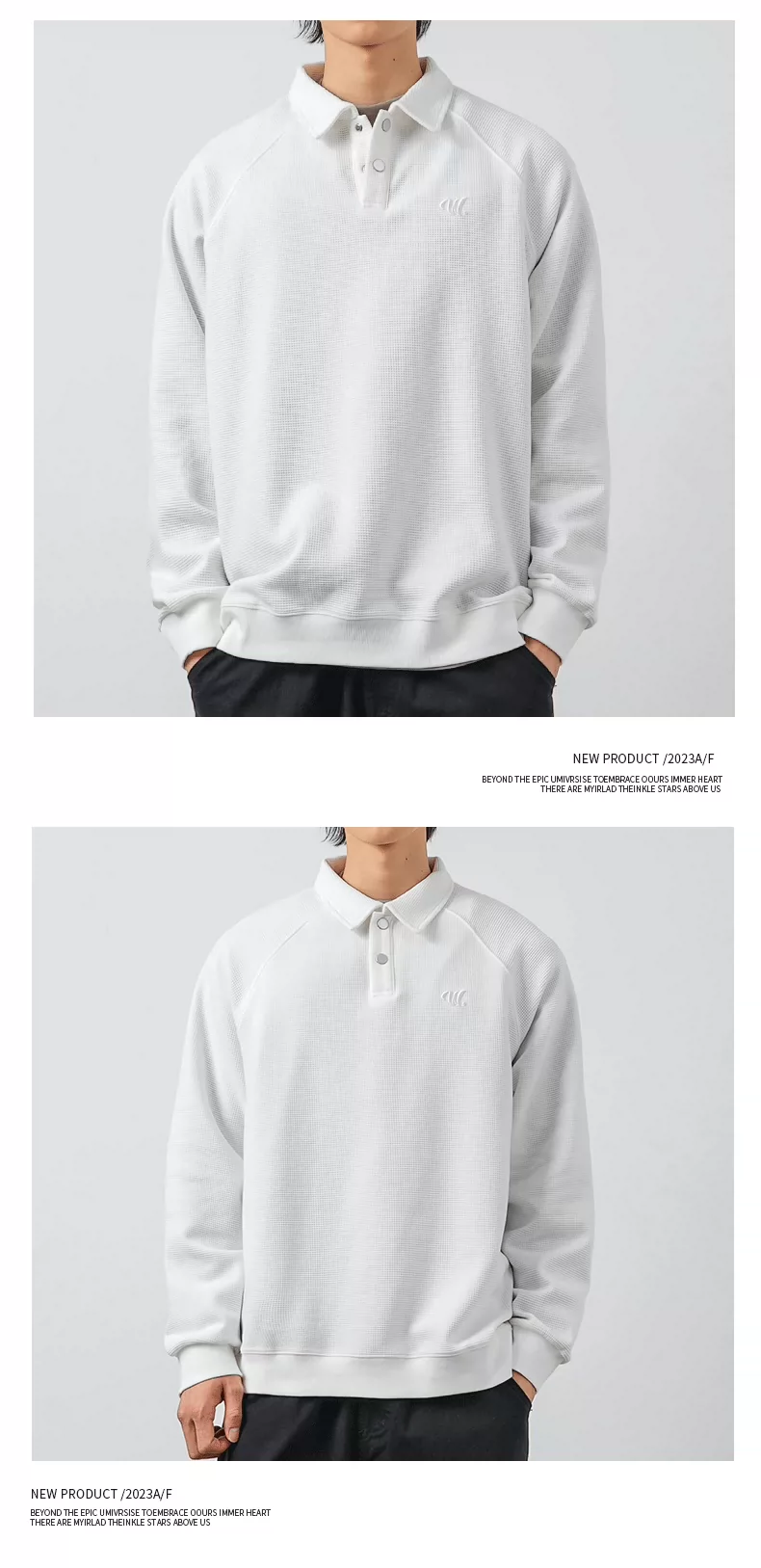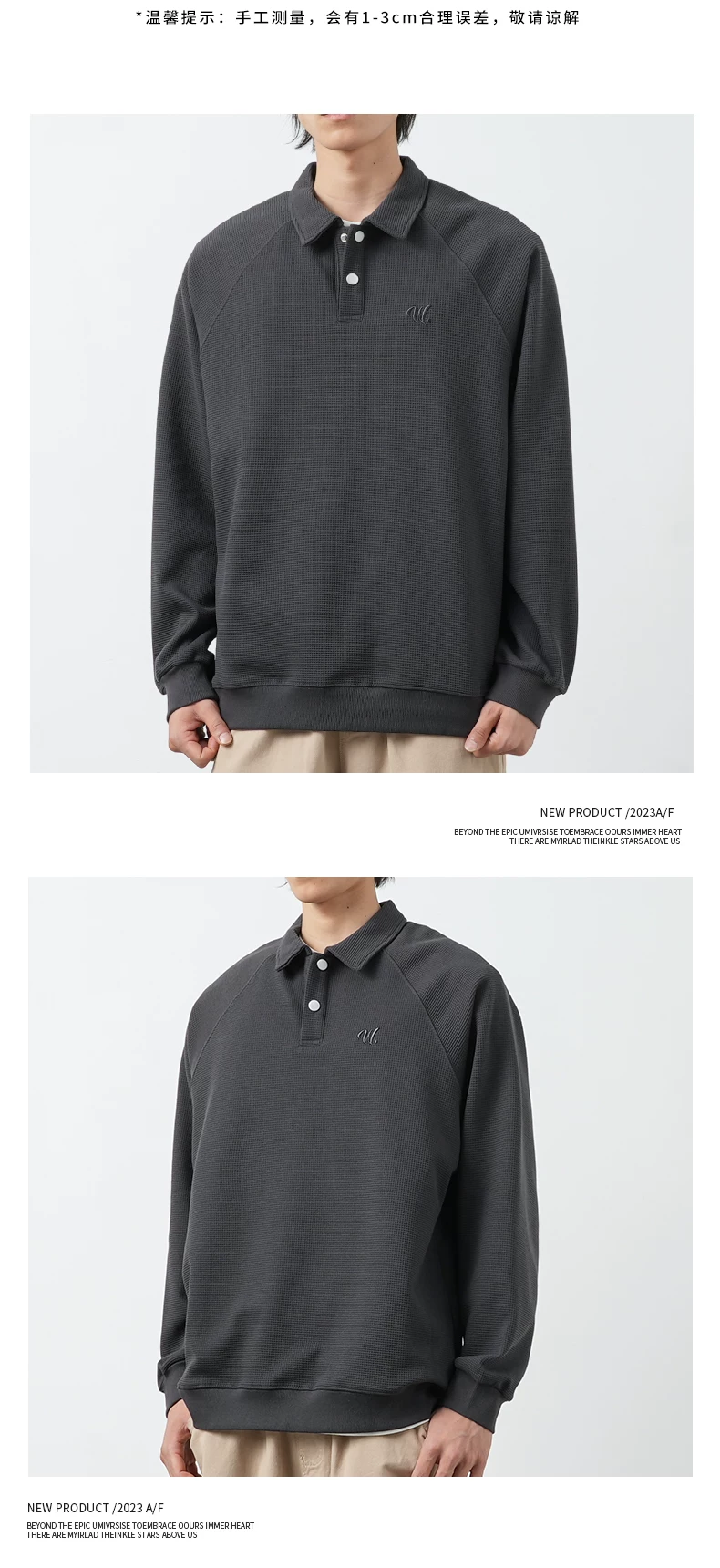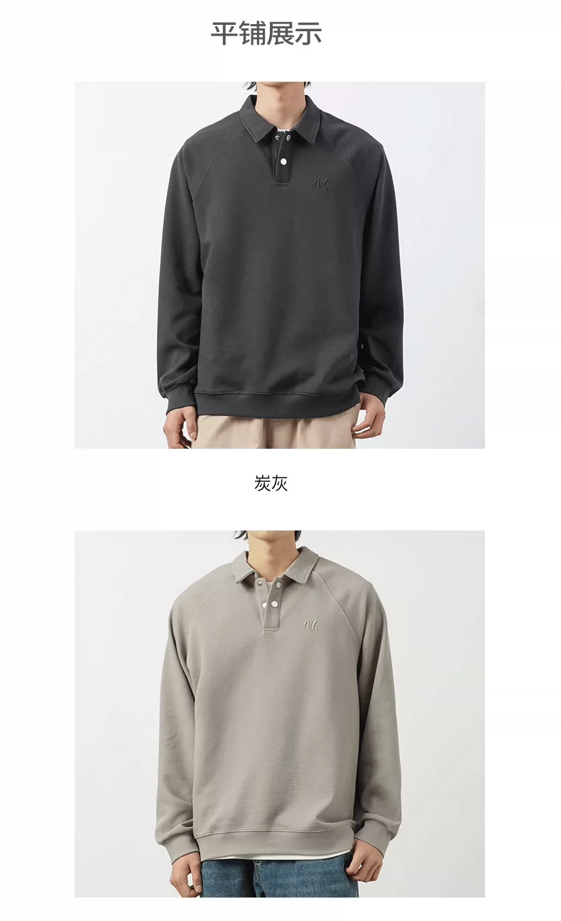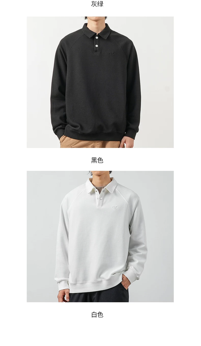 - Áo thun nam OMZM kiểu Mỹ, chất liệu vải waffle dày 340G, cổ áo kiểu polo thêu, dáng rộng, mùa thu, áo lót dài tay