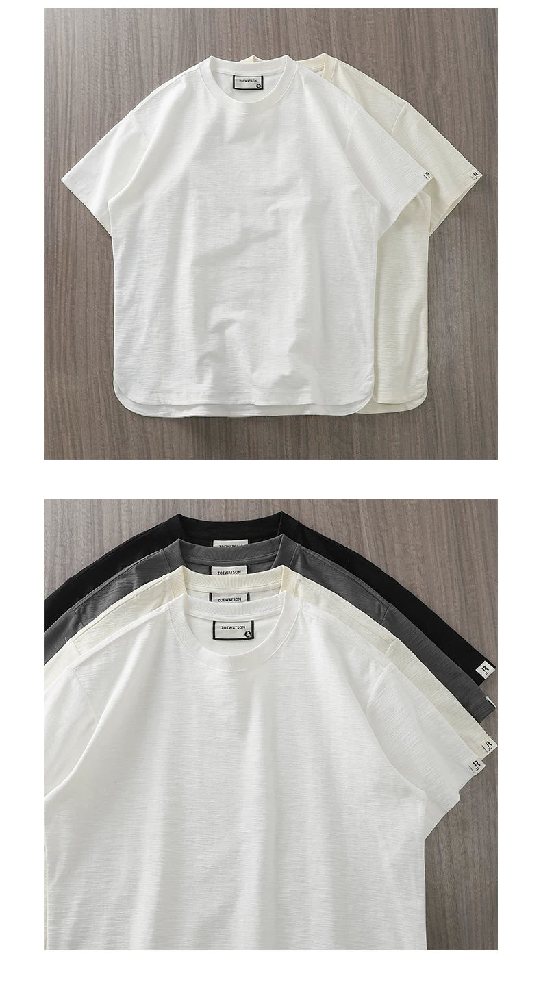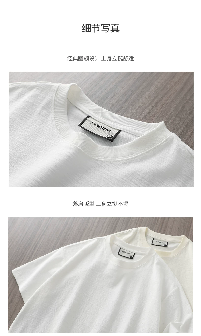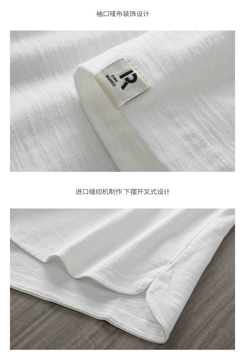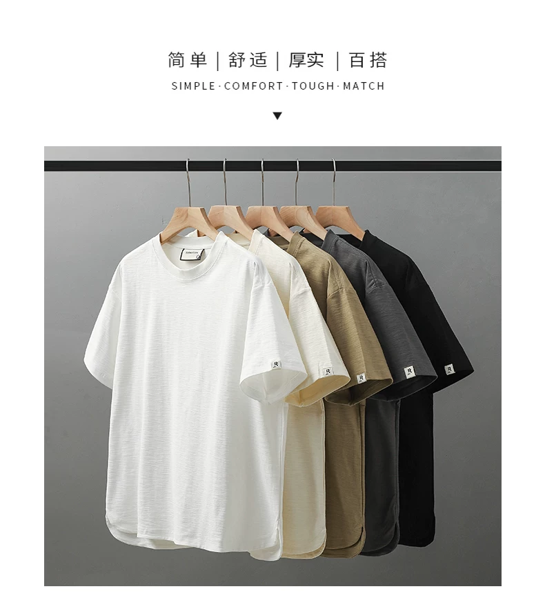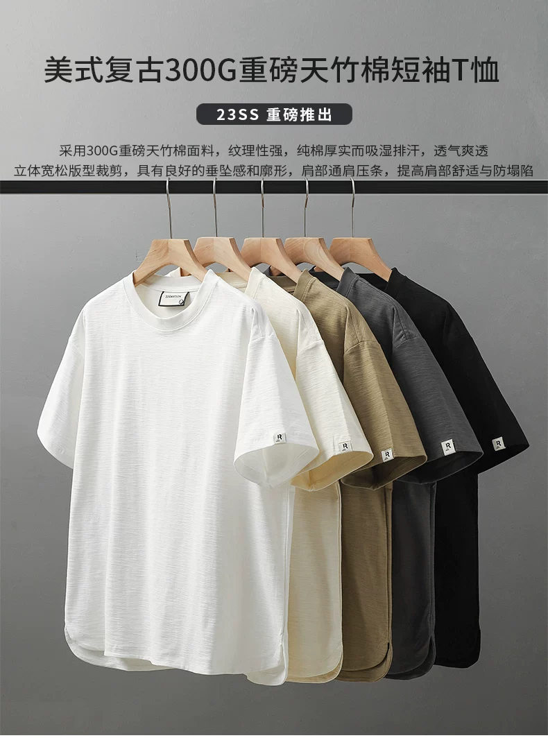 Áo thun nam OMZM300g chất liệu cotton tre cao cấp, tay ngắn, thoáng mát mùa hè, kiểu dáng cổ tròn phong cách Mỹ, màu trắng tinh khiết, tay lửng.