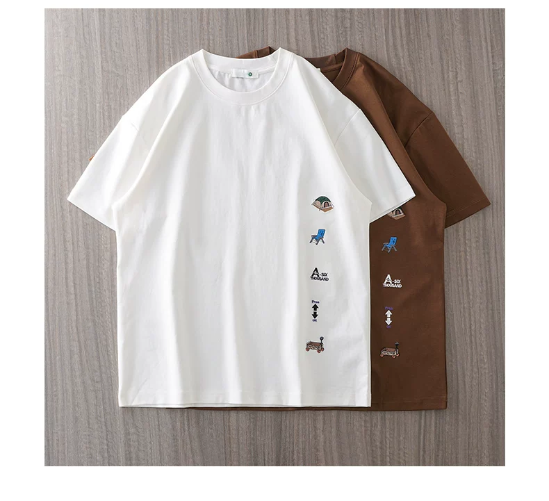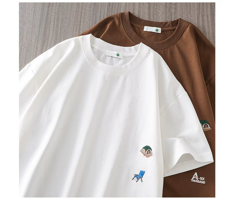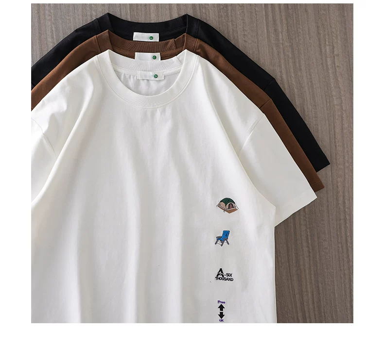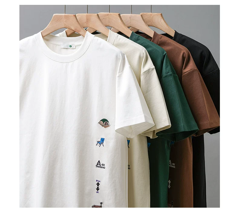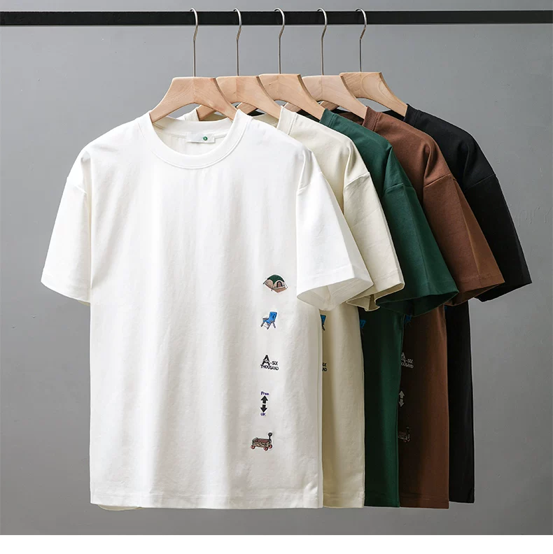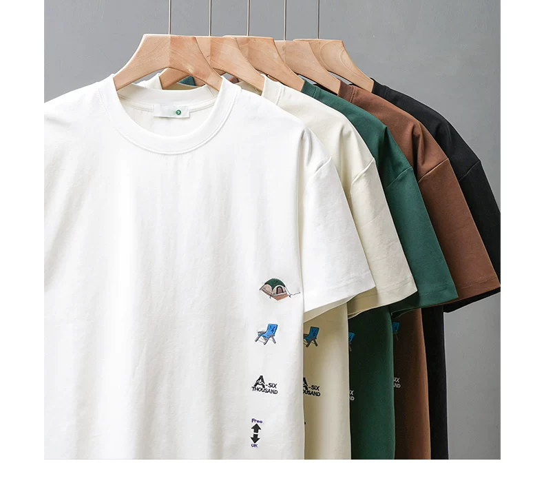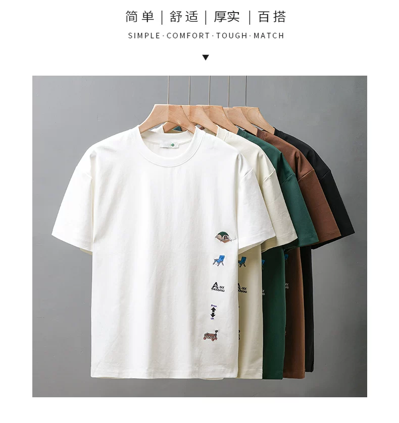 - Áo thun nam tay ngắn chất dày 250G kiểu Mỹ, mẫu mới hè 2025, áo thun cổ tròn thêu dày, áo thun tay lửng rộng rãi