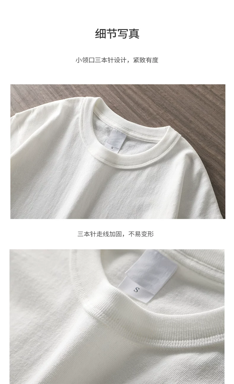 Áo thun nam tay ngắn nặng 400g ba lớp, áo lót mùa đông, áo thun cotton trắng ngoại cỡ kiểu Mỹ.