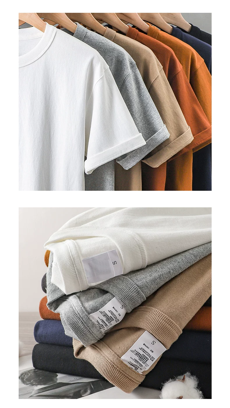 - Áo thun nam tay ngắn nặng 400g ba lớp, áo lót mùa đông, áo thun cotton trắng ngoại cỡ kiểu Mỹ.