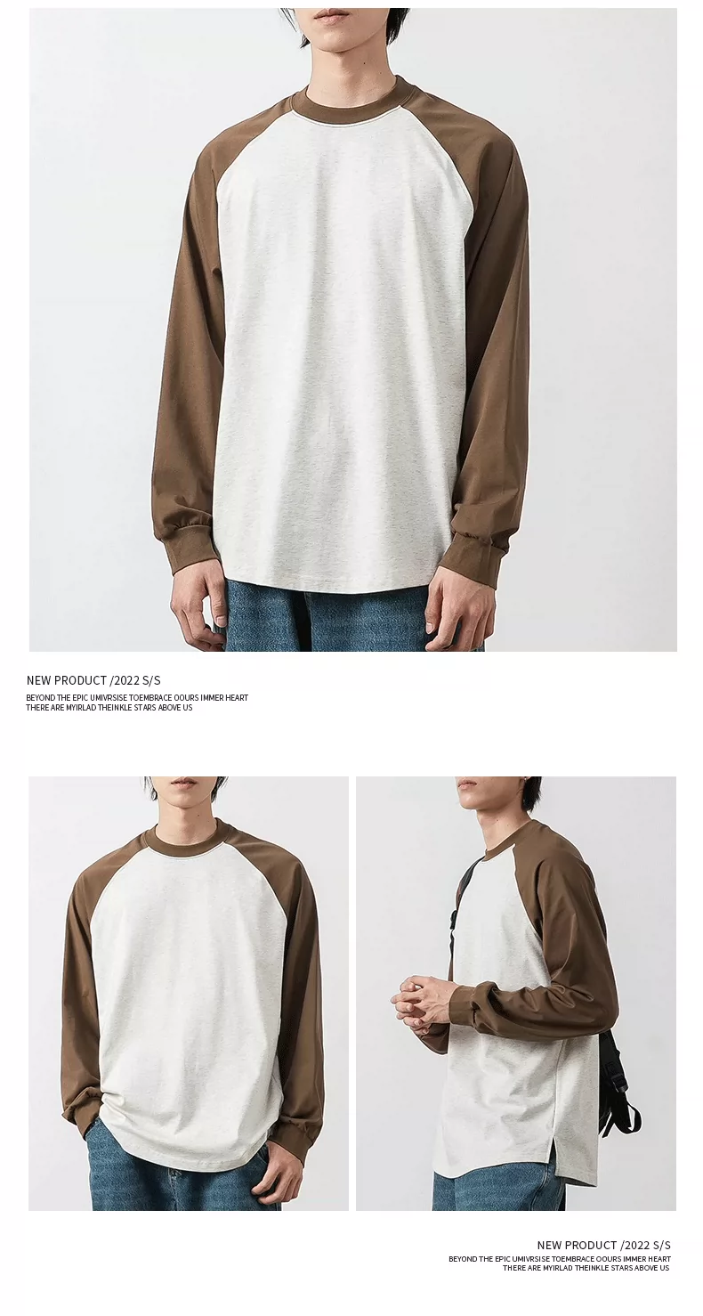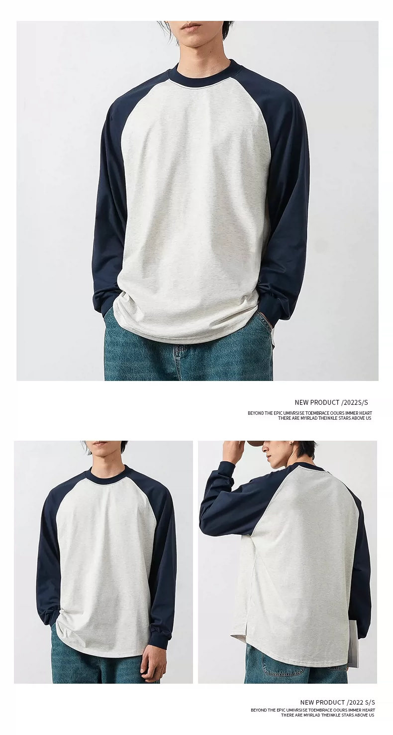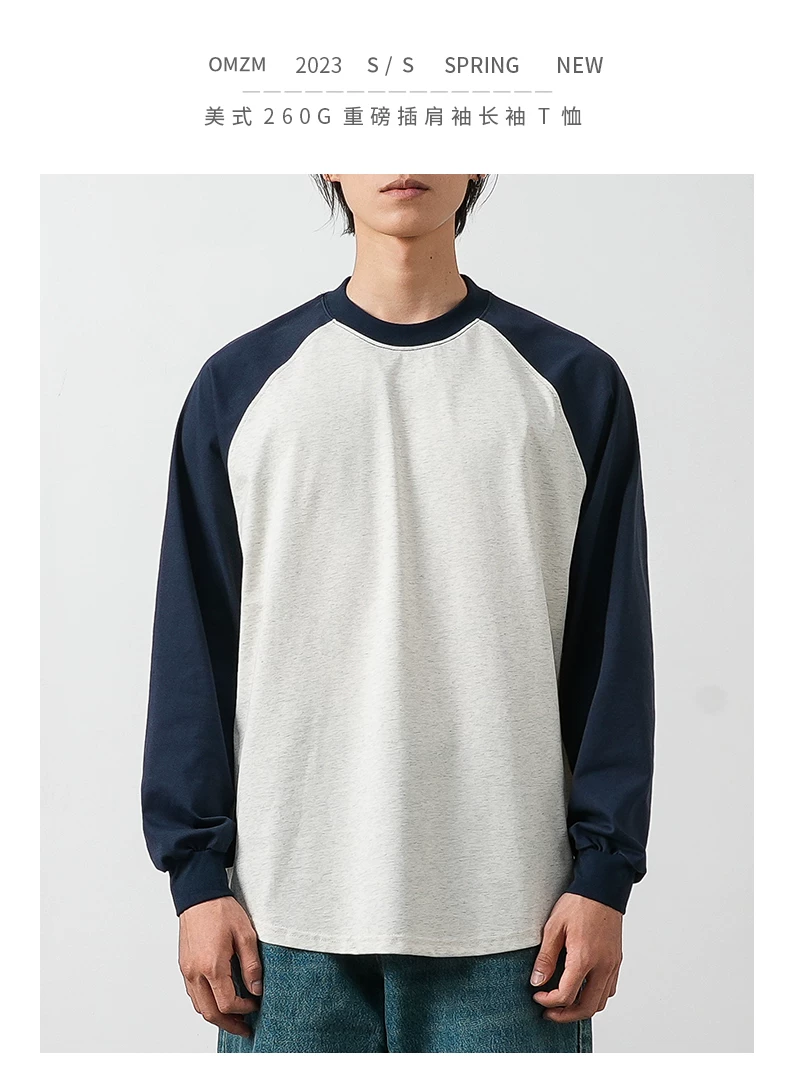 Áo thun nam tay raglan kiểu Mỹ OMZM 260g chất dày, tay dài, mùa thu, dáng rộng, phối màu, kiểu áo sweatshirt, áo lót