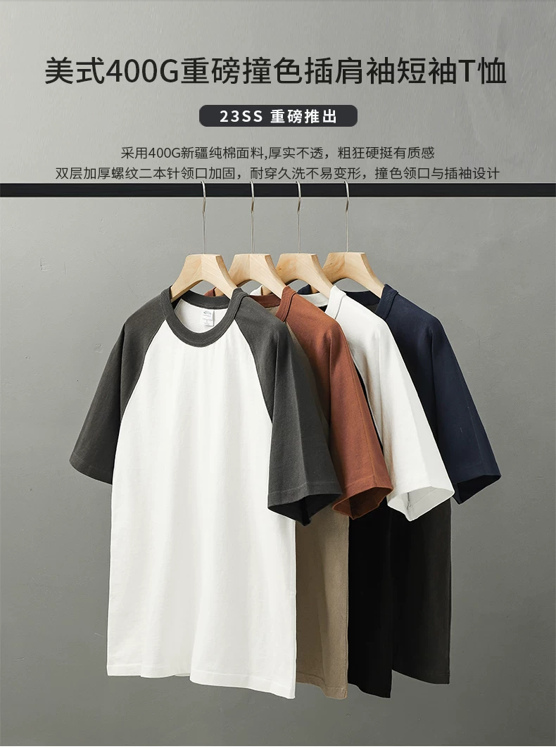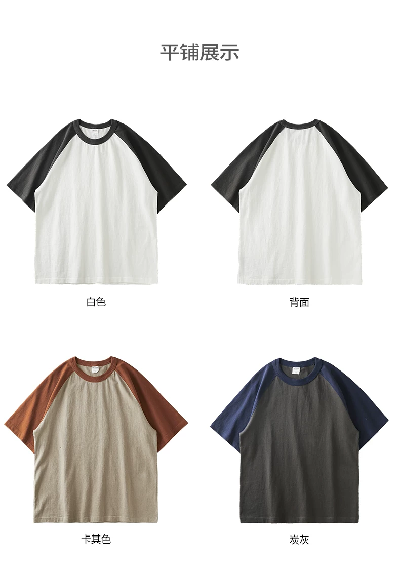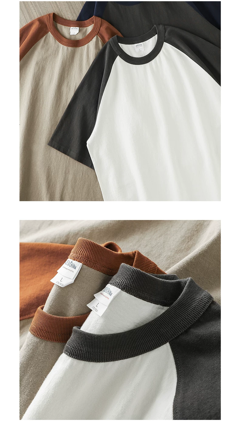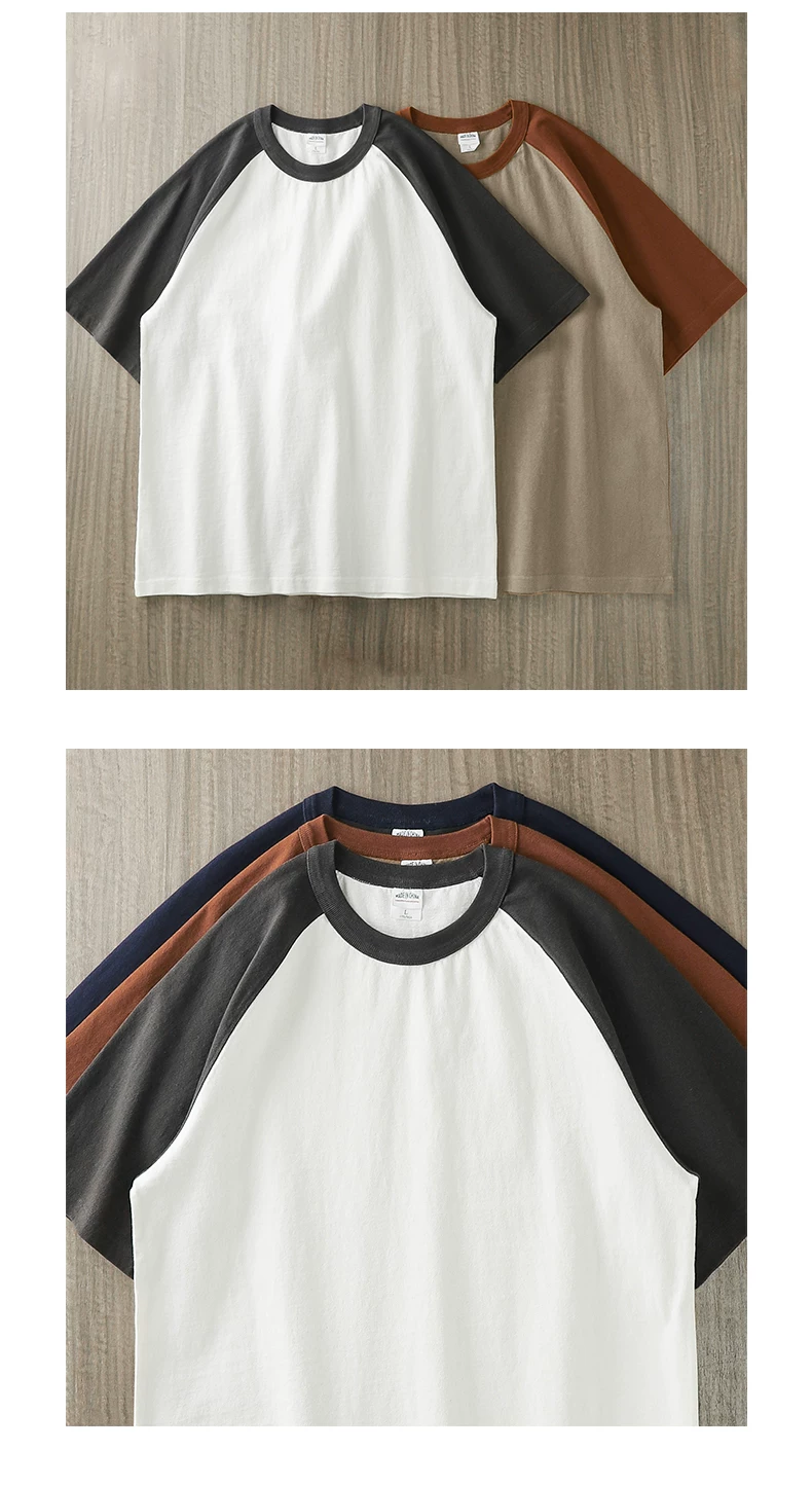 Áo thun nam tay raglan kiểu Mỹ OMZM 400g, chất liệu cotton nguyên chất, màu phối mùa hè, tay ngắn, kiểu nửa tay