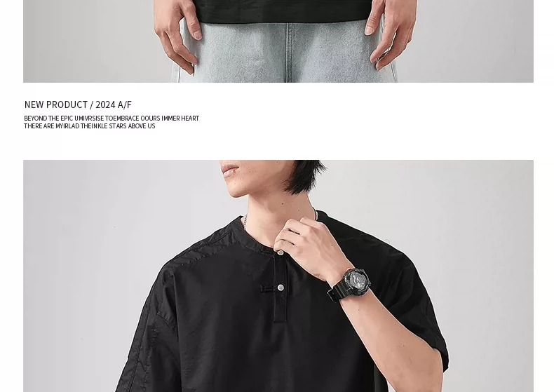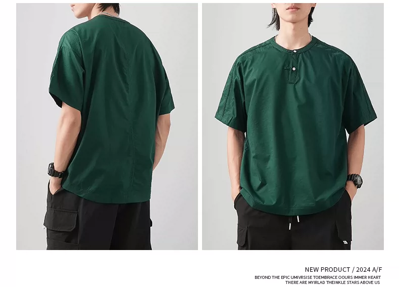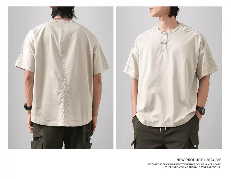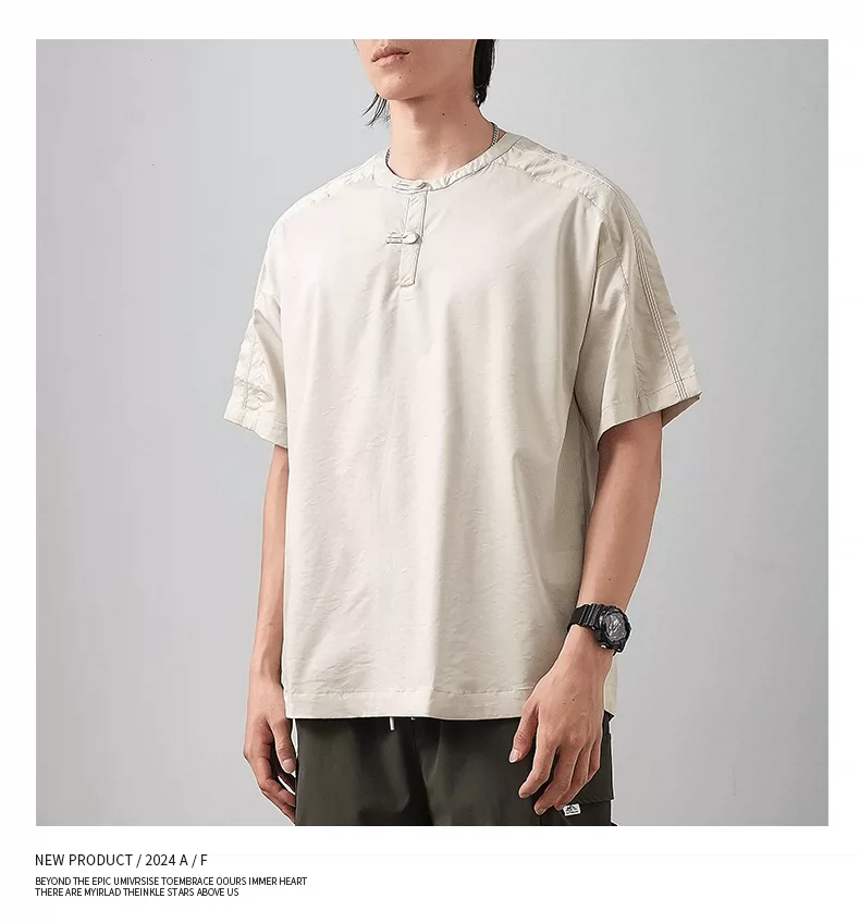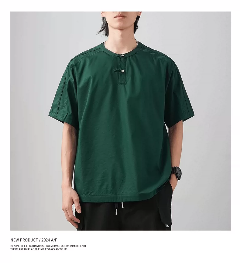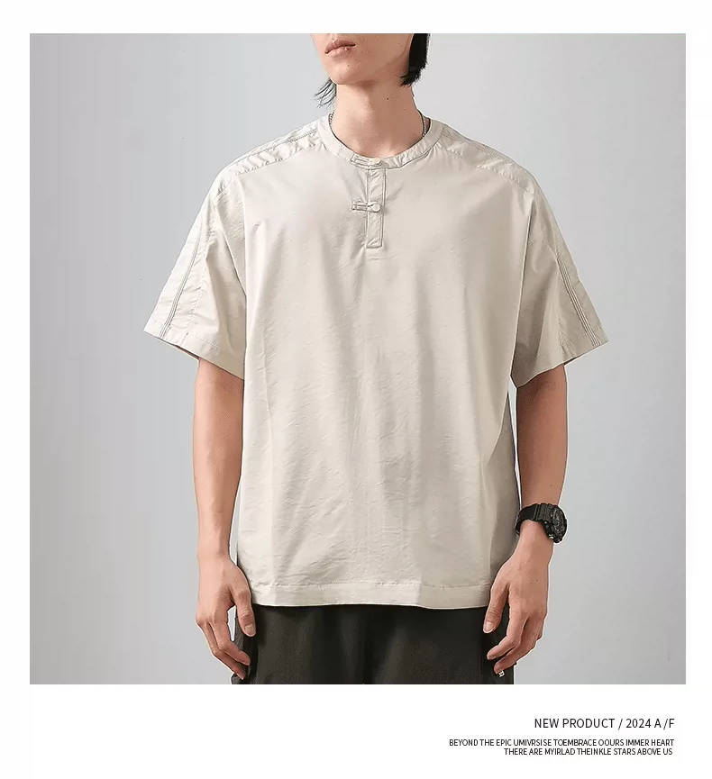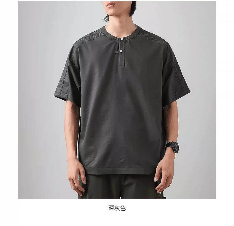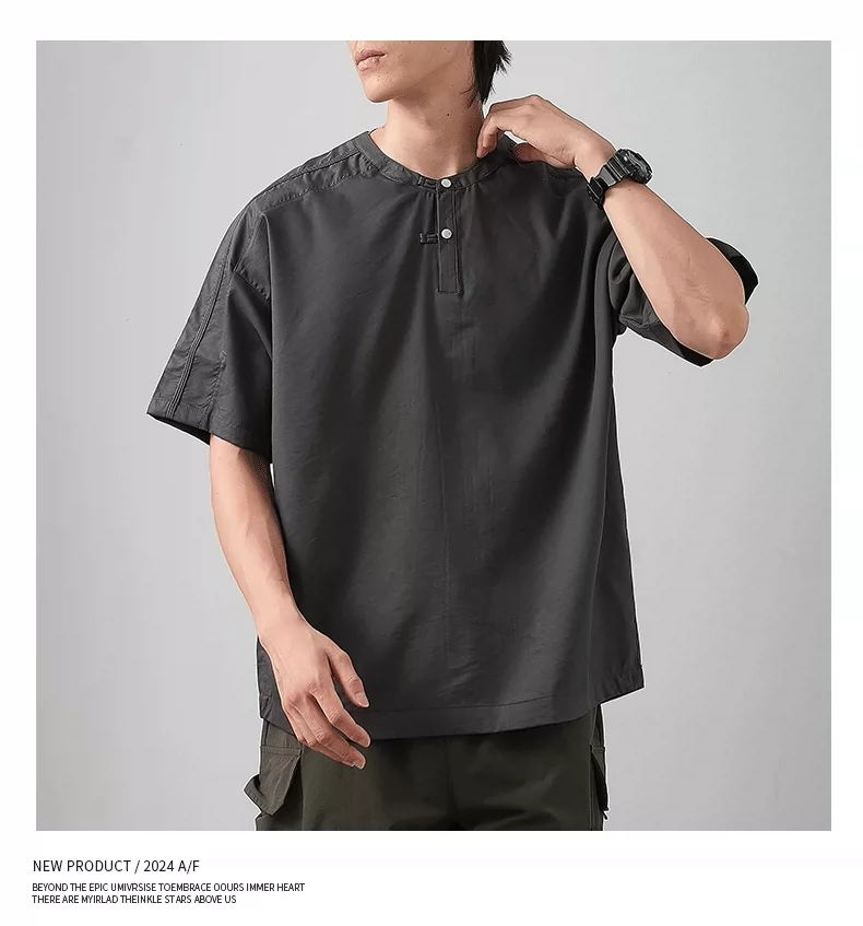 - Áo thun ngắn tay cổ Henry kiểu Trung Quốc mới chất liệu lụa đá dành cho nam, áo Henry mùa hè mỏng thoáng khí, kiểu dáng rộng màu trơn nửa tay.