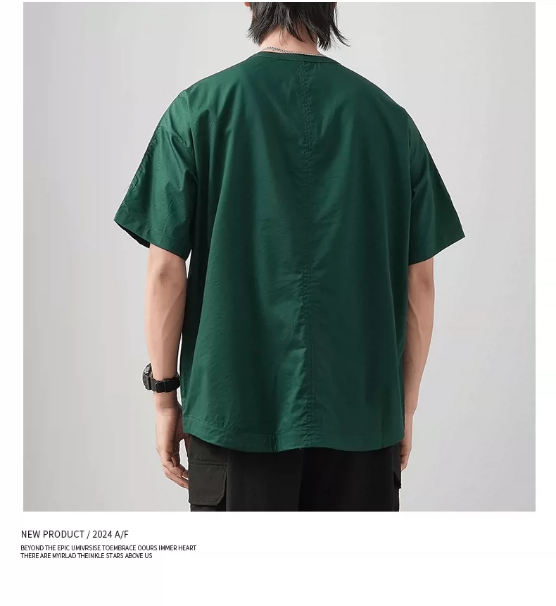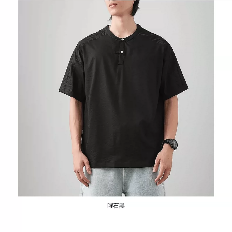 Áo thun ngắn tay cổ Henry kiểu Trung Quốc mới chất liệu lụa đá dành cho nam, áo Henry mùa hè mỏng thoáng khí, kiểu dáng rộng màu trơn nửa tay.