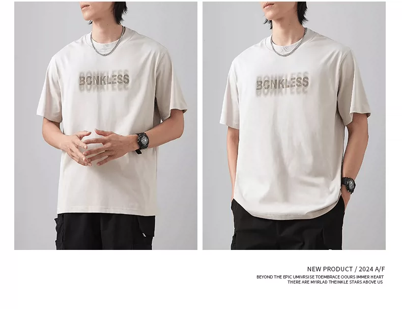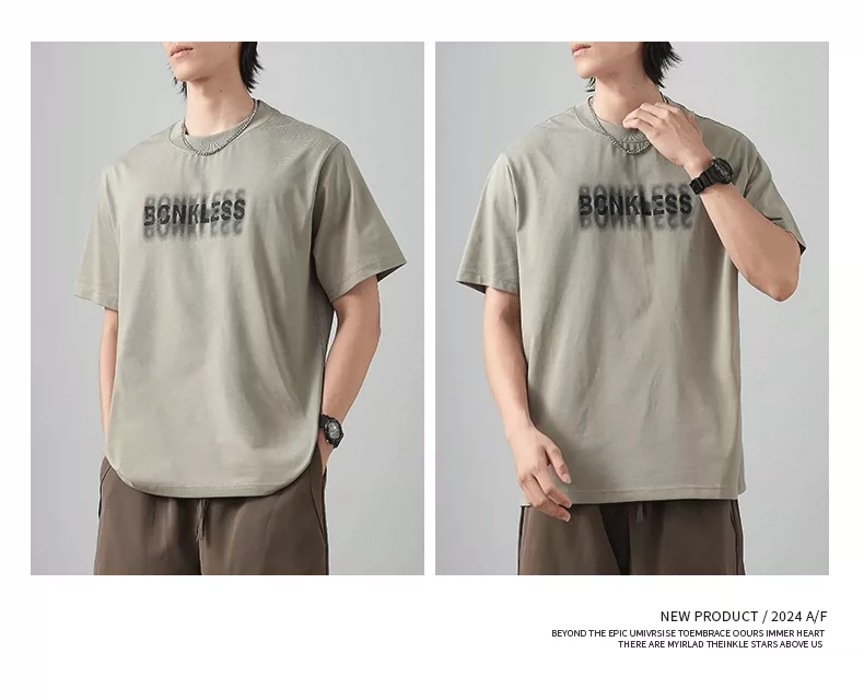 - Áo thun ngắn tay hạng nặng 230G phong cách Mỹ OMZM dành cho nam và nữ, áo thun cặp đôi dáng rộng in chữ mùa hè