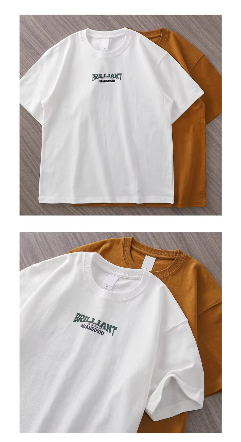 - Áo thun ngắn tay hạng nặng 320g dành cho nam, chất liệu cotton nguyên chất, dày và không lộ xuyên thấu, màu trắng, in hình xe địa hình cổ điển nguyên bản, tay lửng rộng rãi.