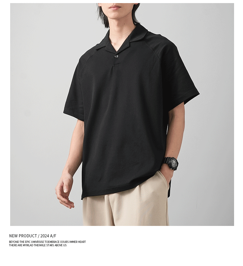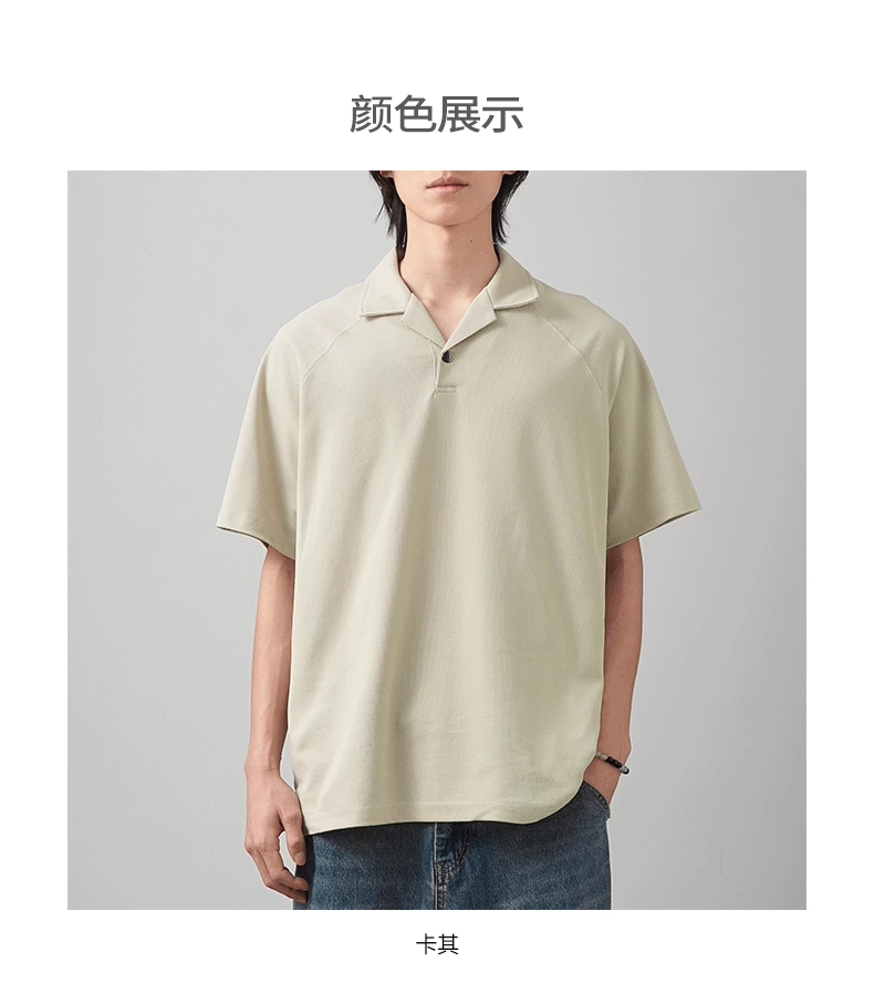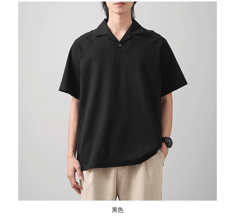 - Áo thun POLO chất liệu vải lụa đá mát lạnh dành cho nam, tay ngắn, thoáng khí, chất liệu cotton pique mùa hè, cổ Cuba, kháng khuẩn, màu trơn, tay lửng