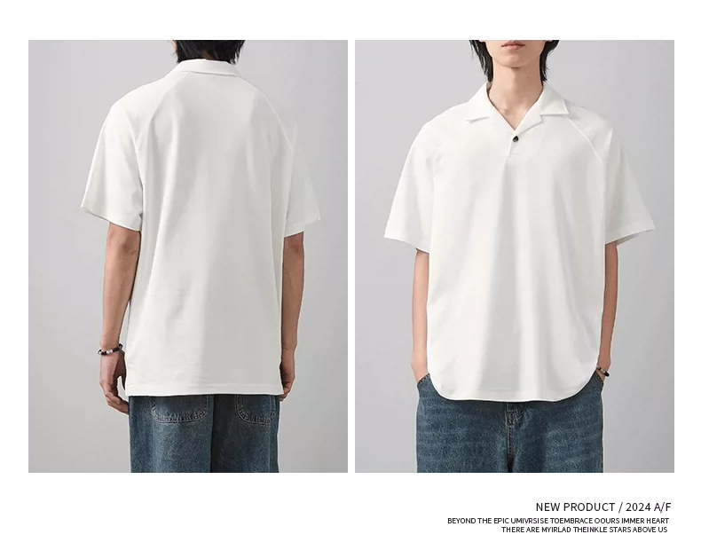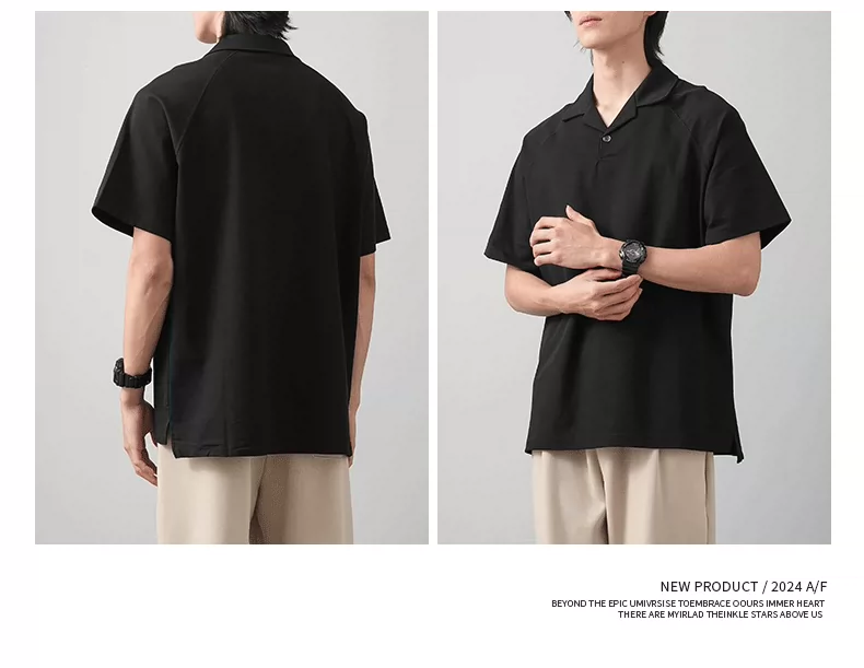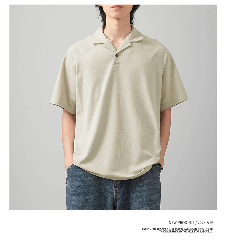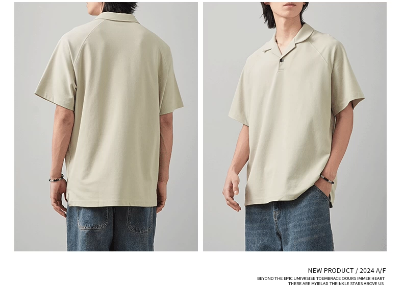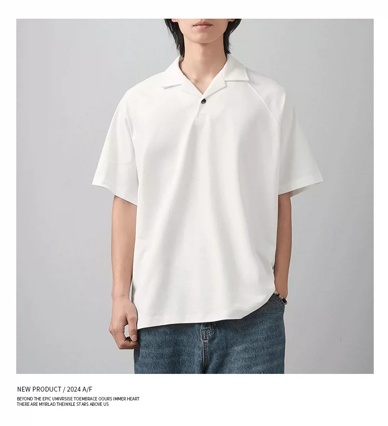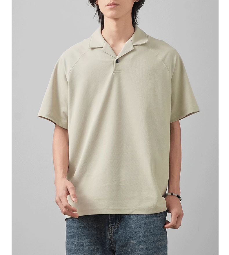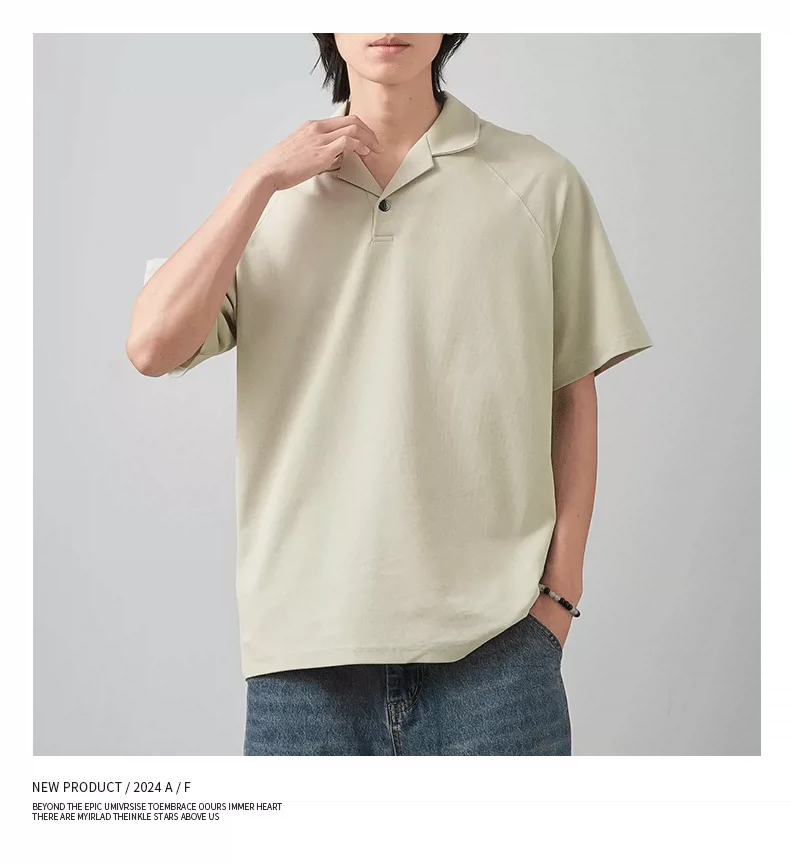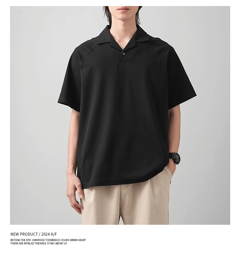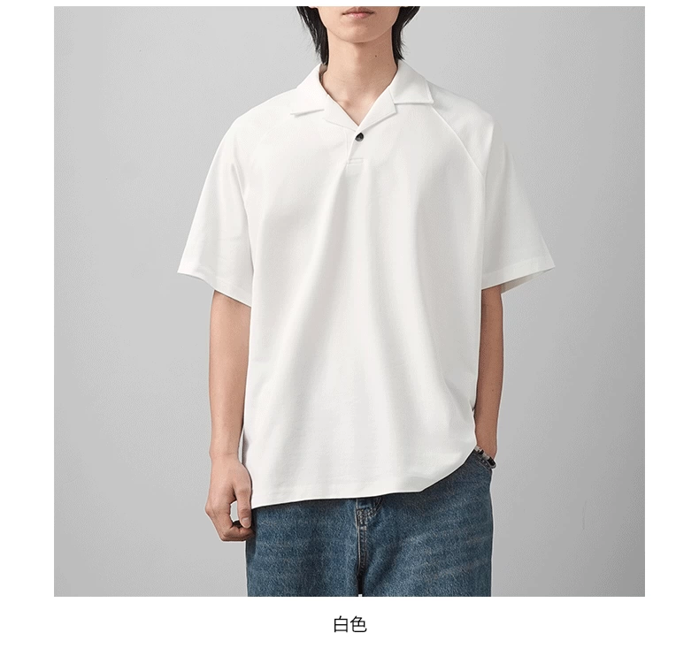 Áo thun POLO chất liệu vải lụa đá mát lạnh dành cho nam, tay ngắn, thoáng khí, chất liệu cotton pique mùa hè, cổ Cuba, kháng khuẩn, màu trơn, tay lửng