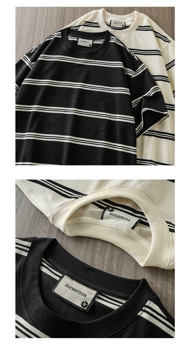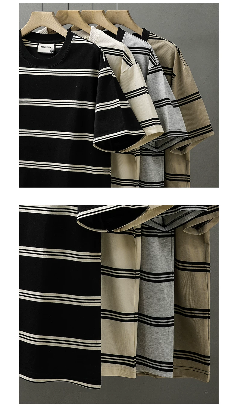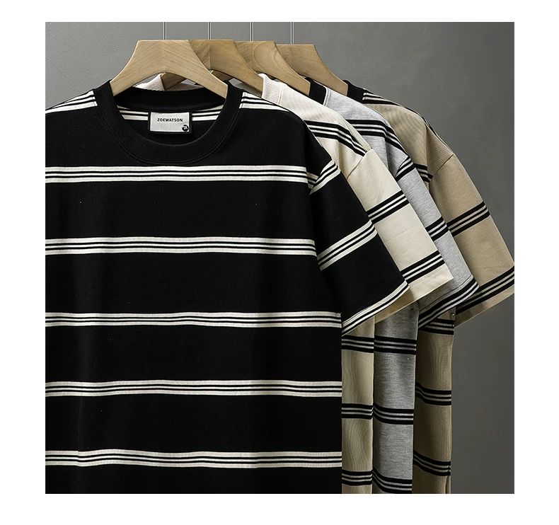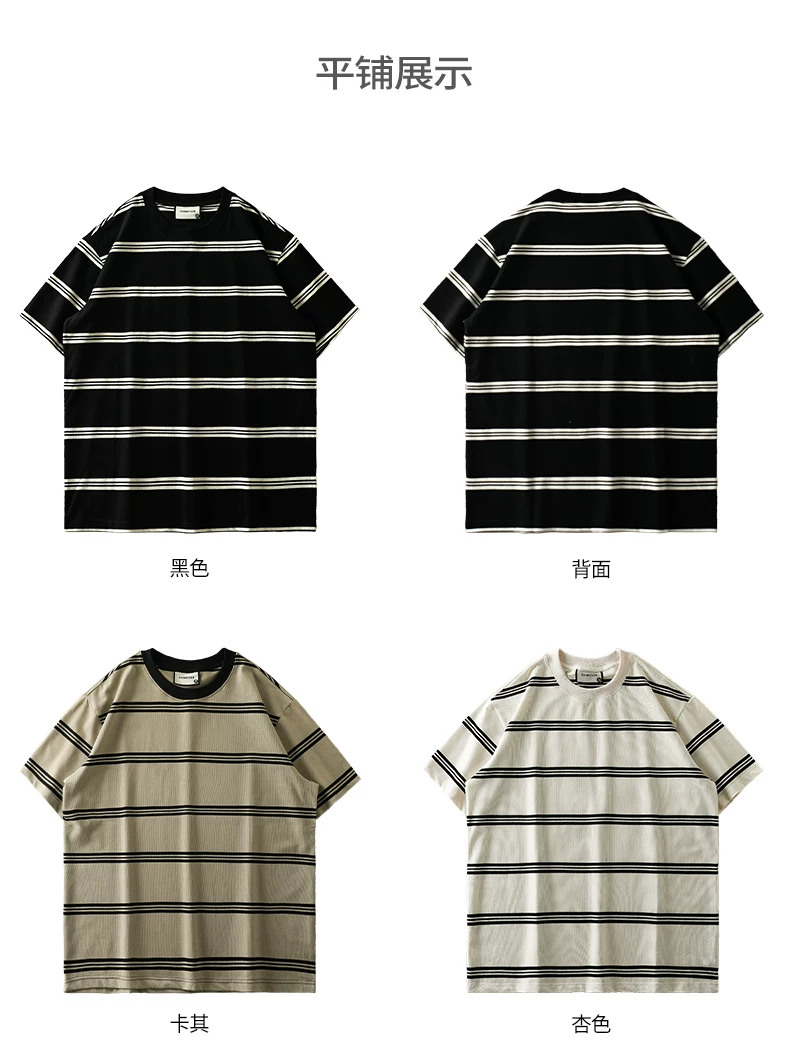 - Áo thun sợi polyester sọc nặng 250G kiểu cổ điển của Mỹ OMZM dành cho nam và nữ, áo sơ mi ngắn tay dáng rộng hợp thời trang mùa hè dành cho cặp đôi