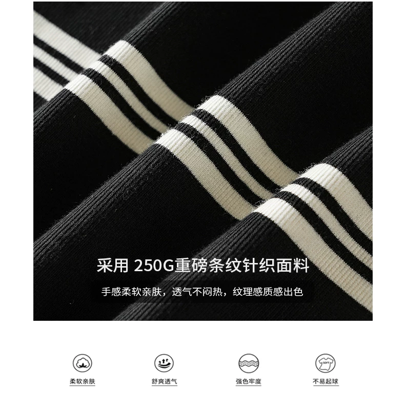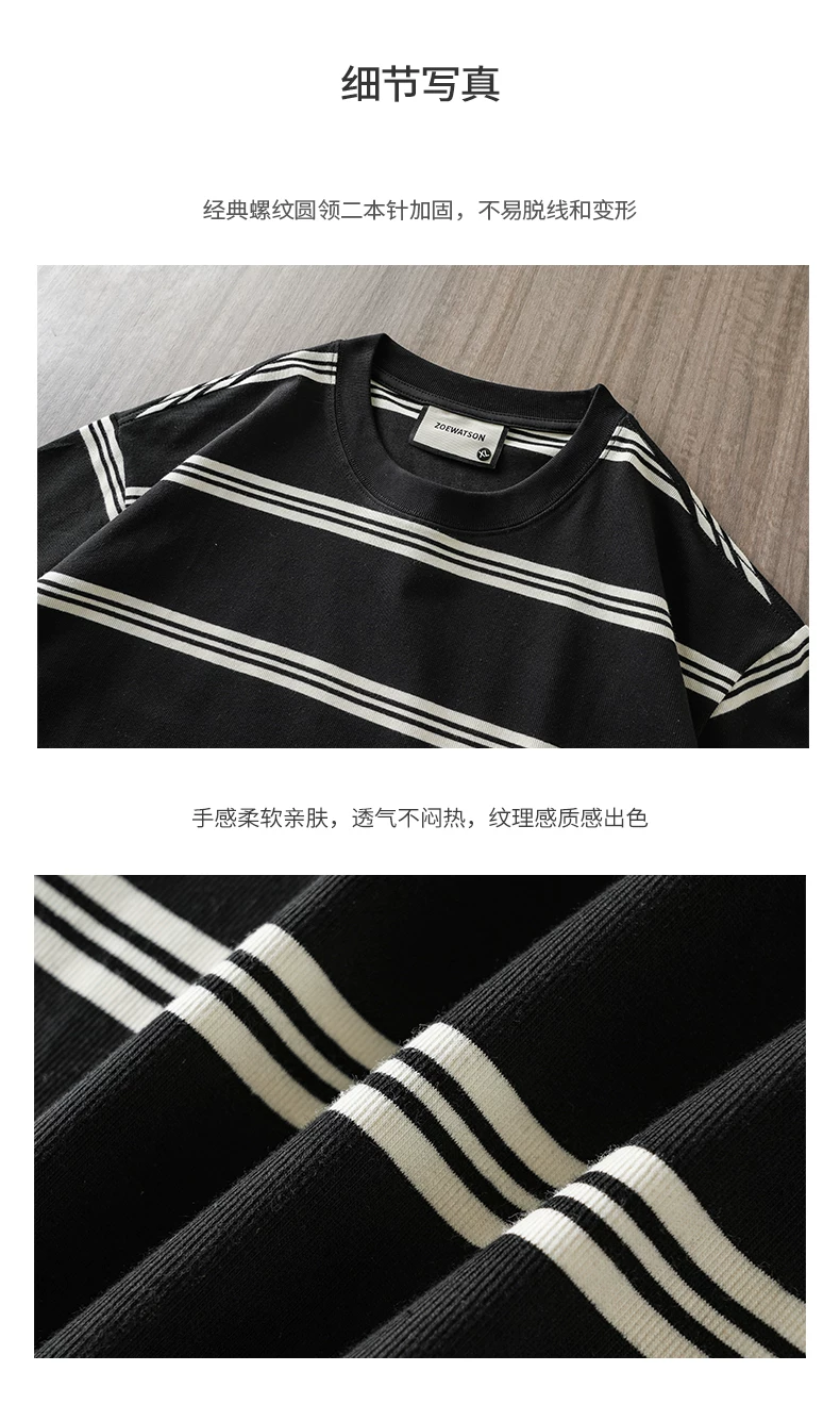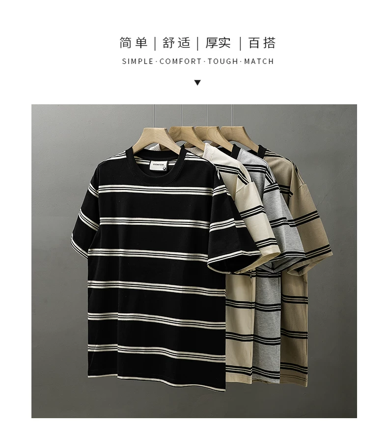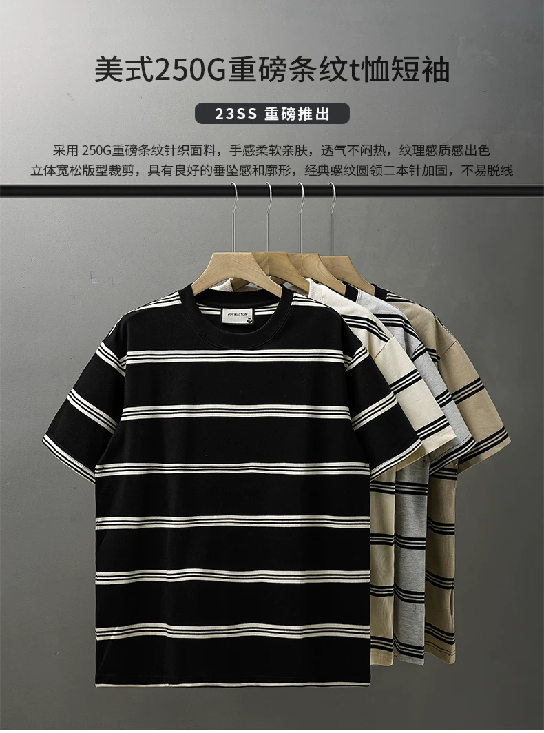 Áo thun sợi polyester sọc nặng 250G kiểu cổ điển của Mỹ OMZM dành cho nam và nữ, áo sơ mi ngắn tay dáng rộng hợp thời trang mùa hè dành cho cặp đôi
