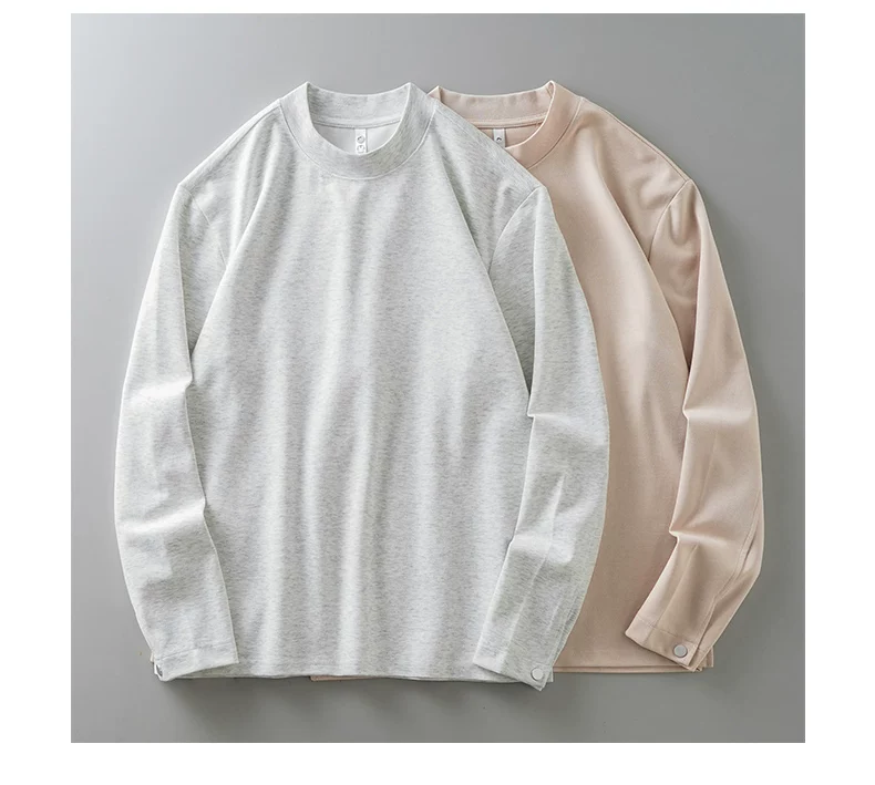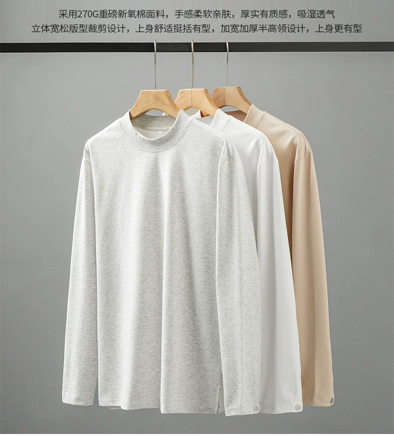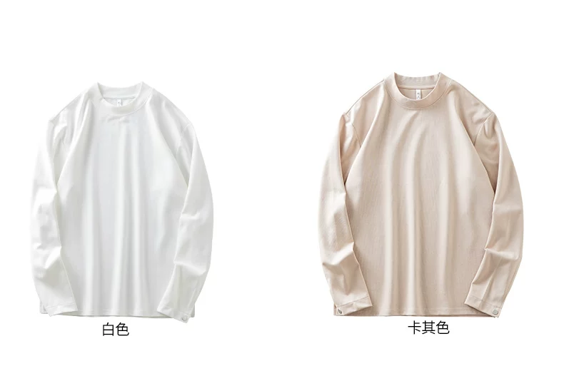 - Áo thun tay dài cổ lọ nửa cao, chất liệu dày dặn 270G kiểu Mỹ, dành cho nam và nữ, mẫu mới xuân 2025, màu trơn, áo lót cổ trung bình.
