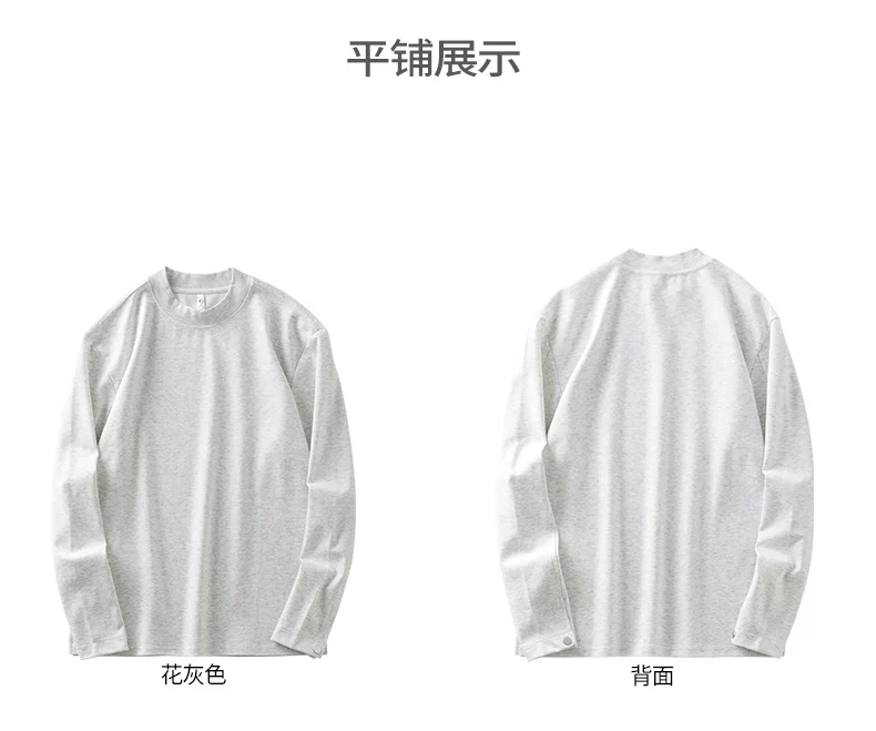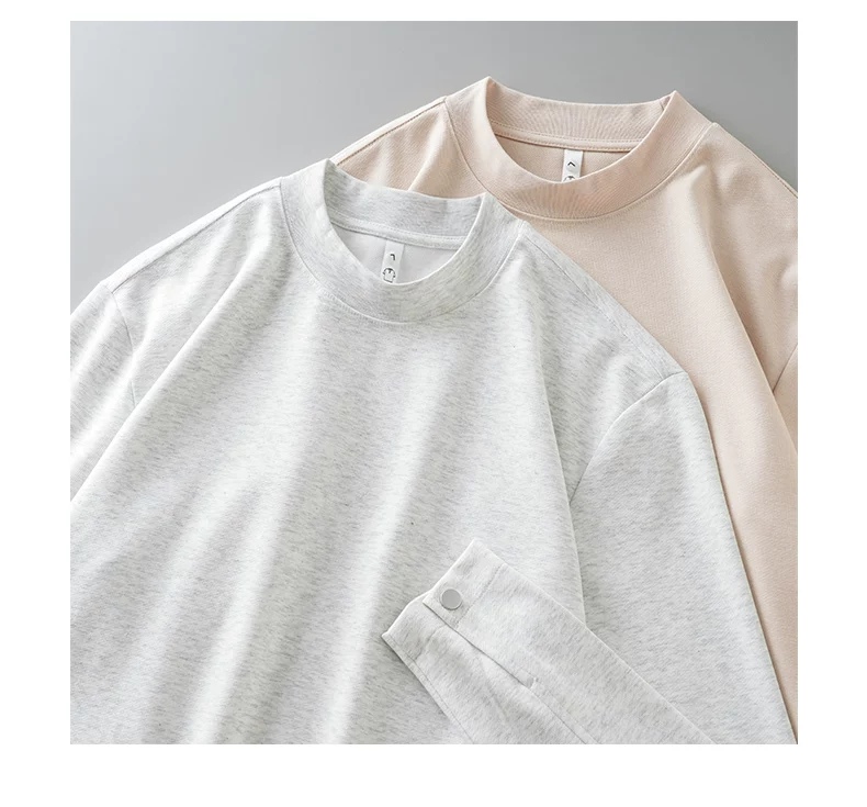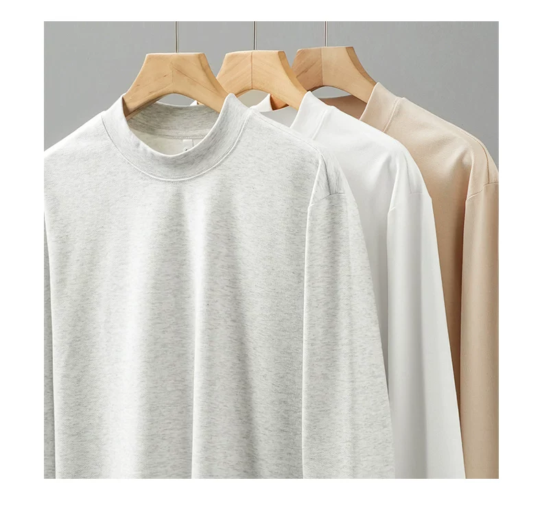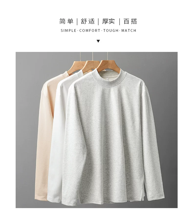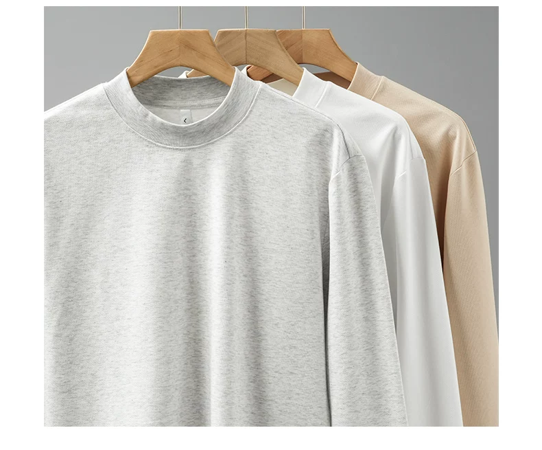 Áo thun tay dài cổ lọ nửa cao, chất liệu dày dặn 270G kiểu Mỹ, dành cho nam và nữ, mẫu mới xuân 2025, màu trơn, áo lót cổ trung bình.