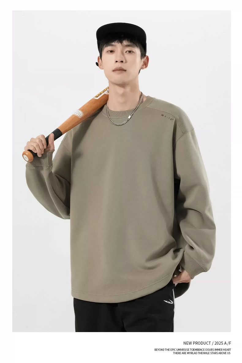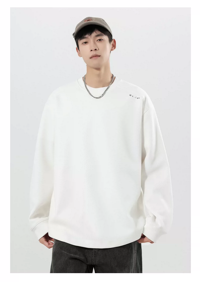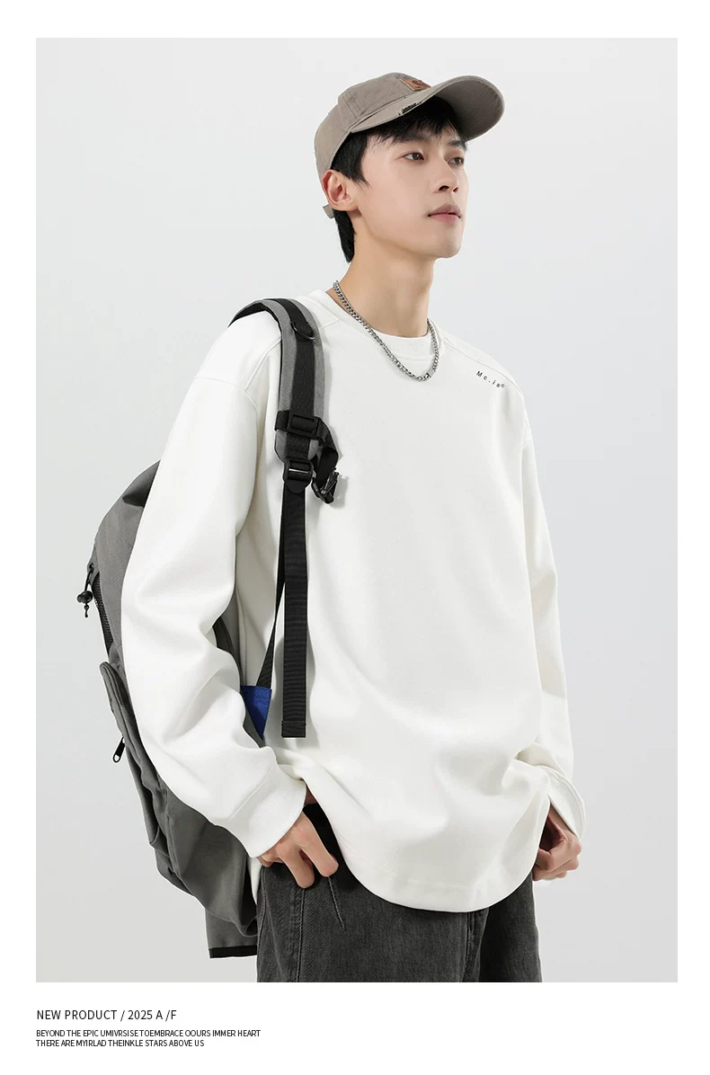 - Áo thun trắng hạng nặng OMZM300G dành cho nam, áo thun đa năng đơn giản mùa thu, dáng rộng, size lớn, áo sơ mi dài tay mới.