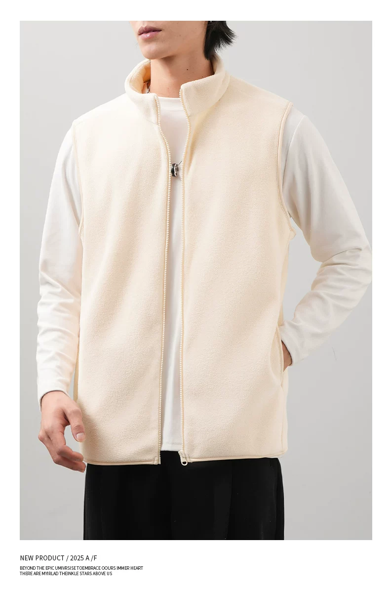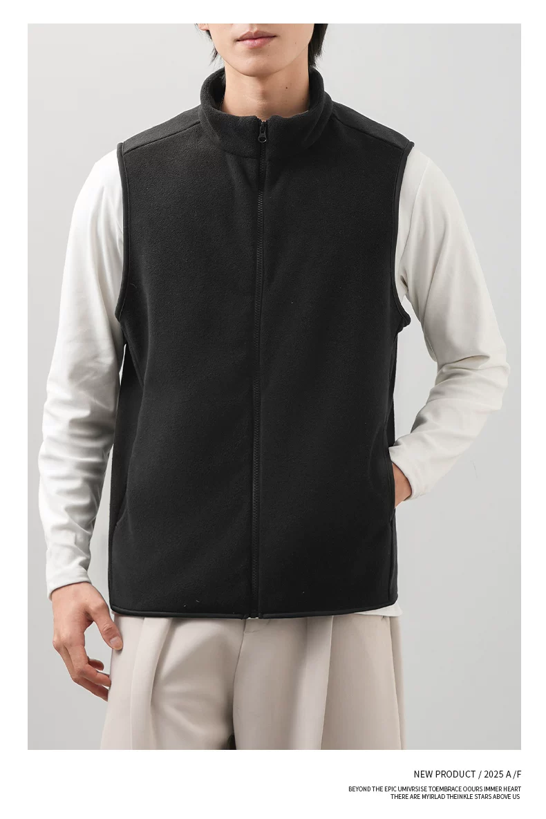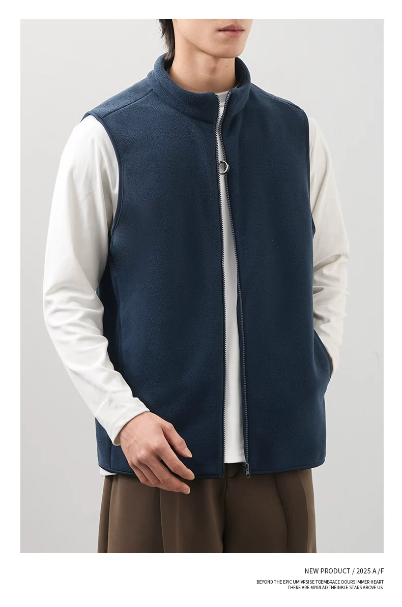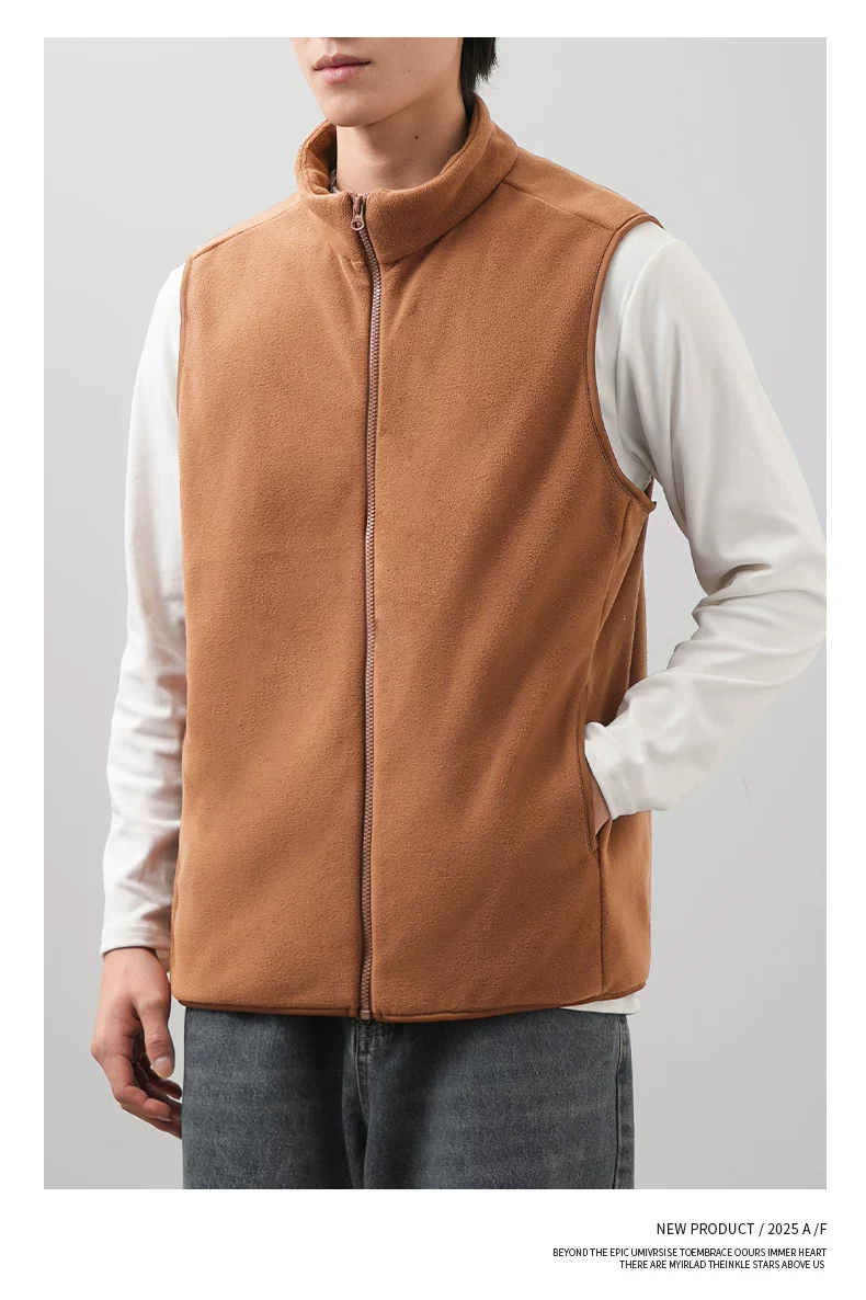 - Áo vest lông cừu kiểu Mỹ OMZM dành cho nam, áo cardigan dày dặn và ấm áp mùa đông, áo khoác không tay cổ đứng màu trơn