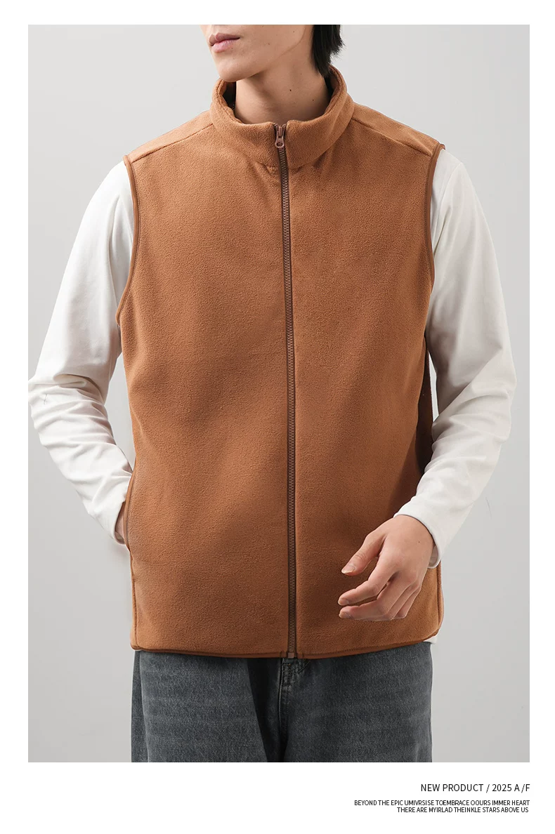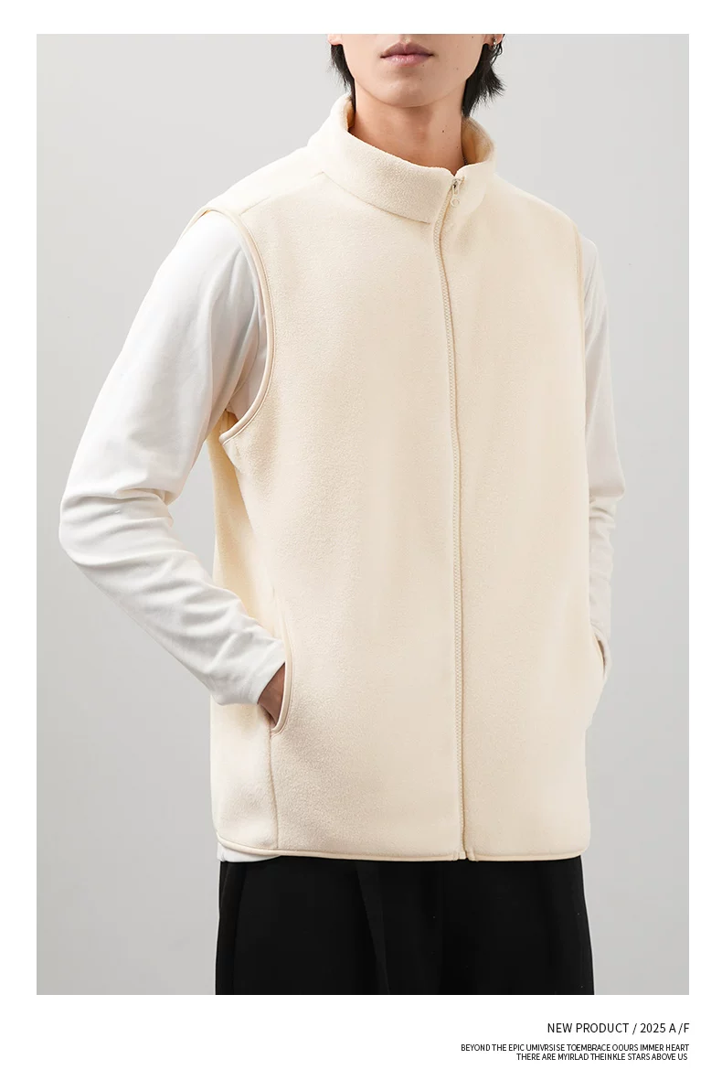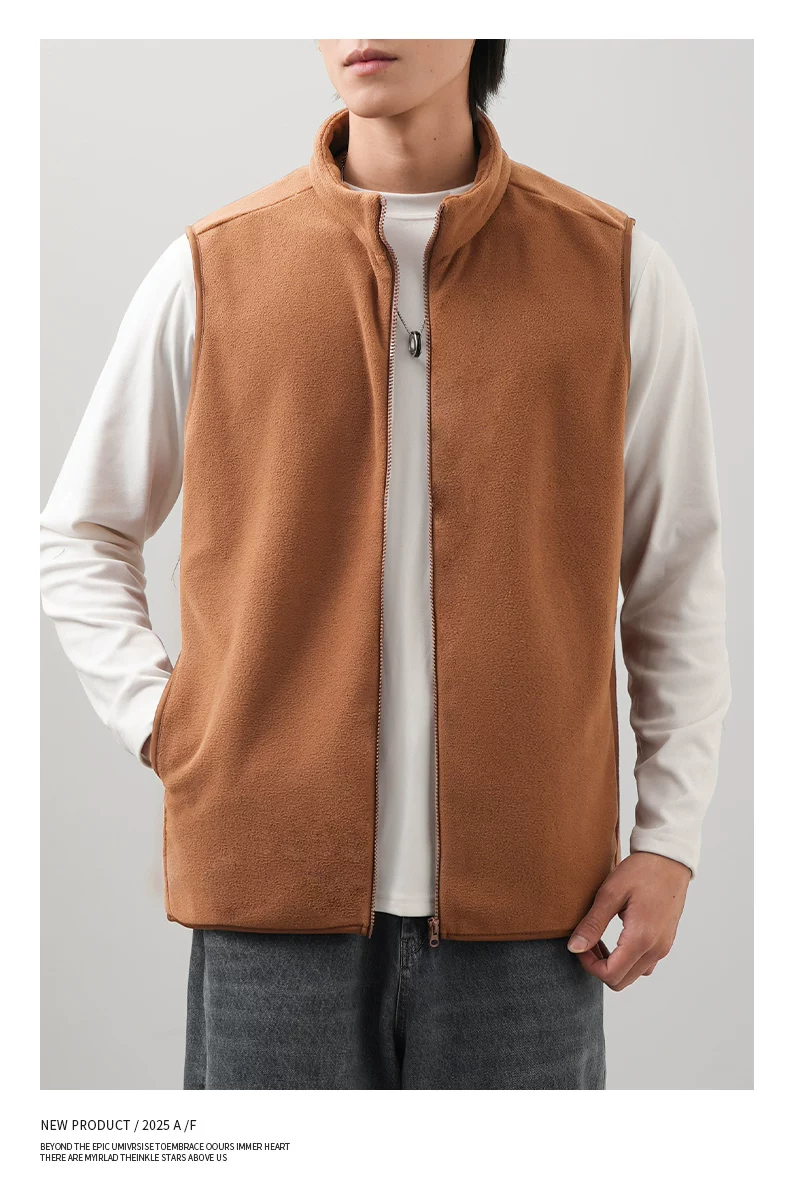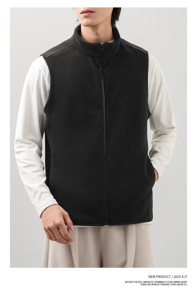 - Áo vest lông cừu kiểu Mỹ OMZM dành cho nam, áo cardigan dày dặn và ấm áp mùa đông, áo khoác không tay cổ đứng màu trơn
