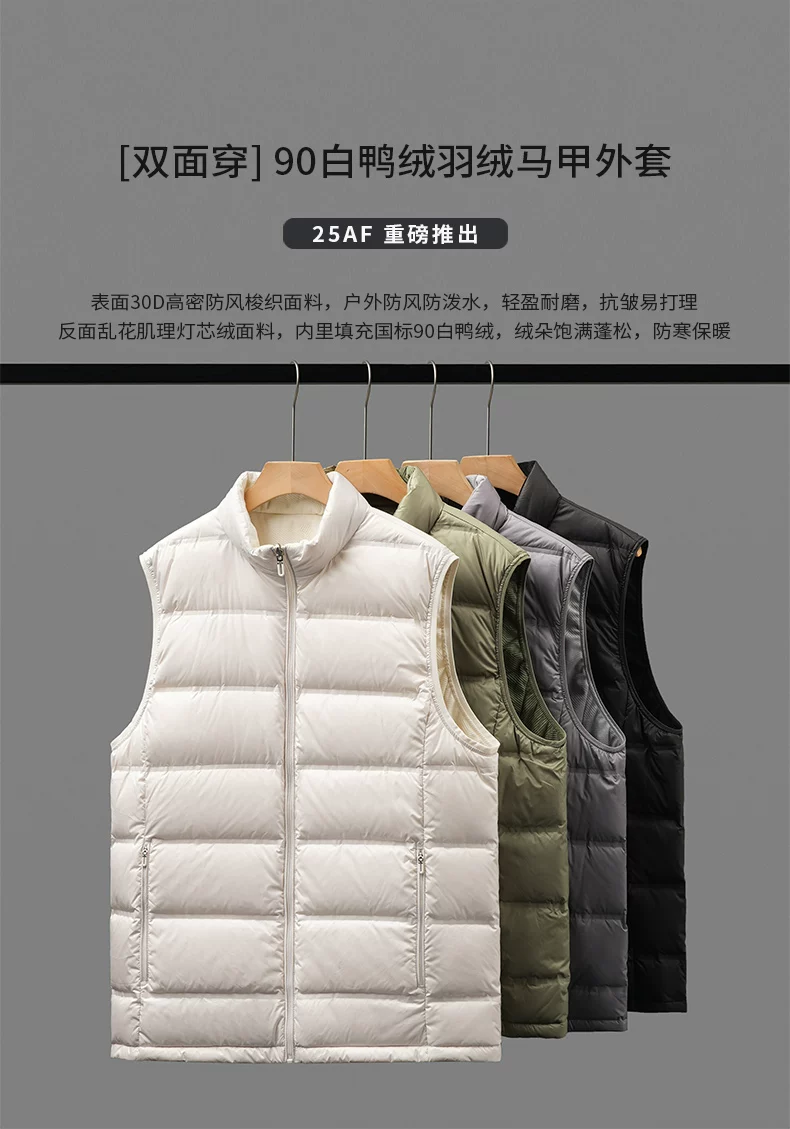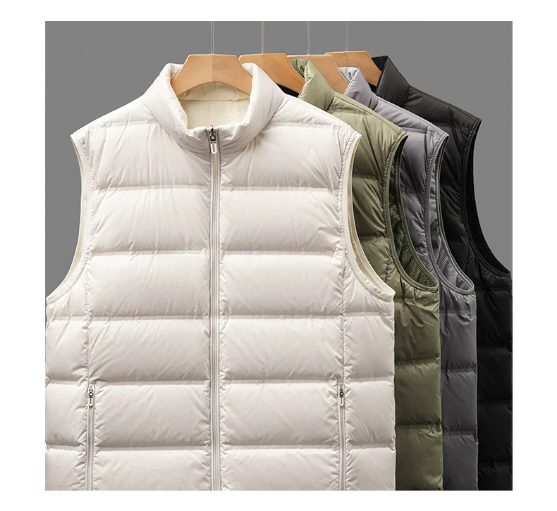 - Áo vest lông vịt trắng OMZM90 dành cho nam, áo vest ngắn có gân ấm áp mùa đông, áo khoác không tay dày dặn.