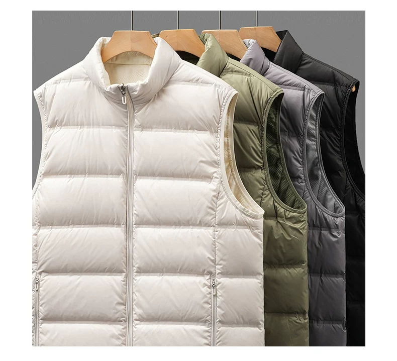 Áo vest lông vịt trắng OMZM90 dành cho nam, áo vest ngắn có gân ấm áp mùa đông, áo khoác không tay dày dặn.