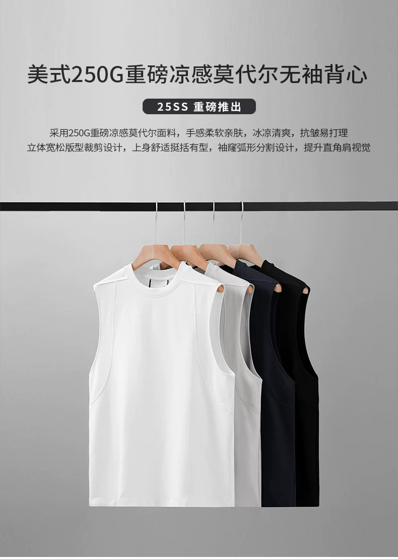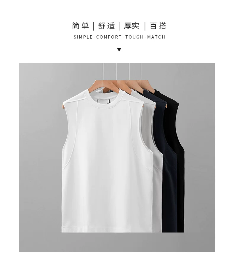 Áo vest nam 250G, chất liệu lụa đá mùa hè, nhanh khô, áo lót thể thao, áo thun không tay rộng rãi mặc ngoài