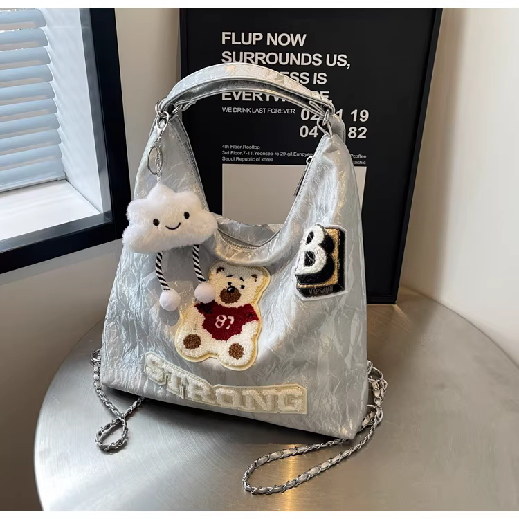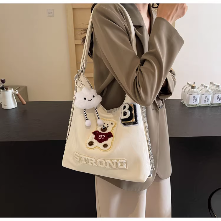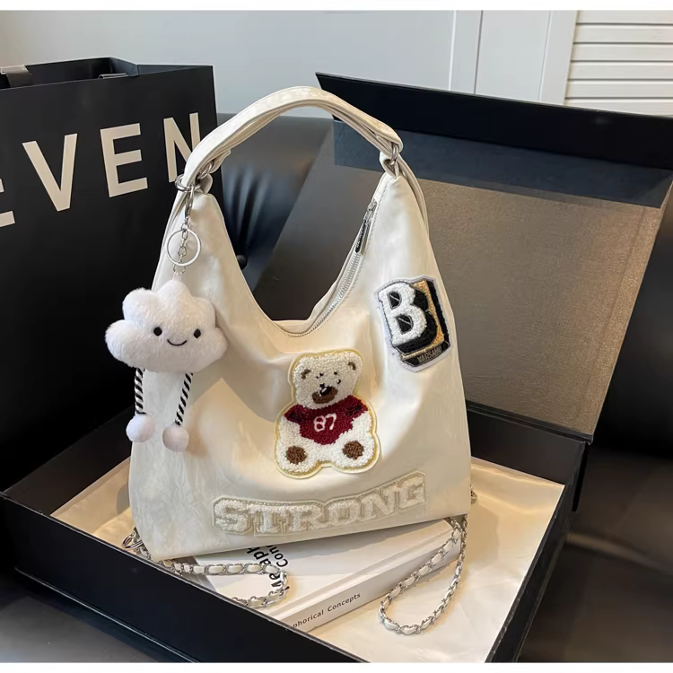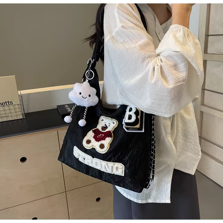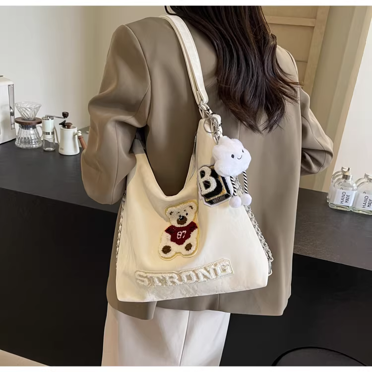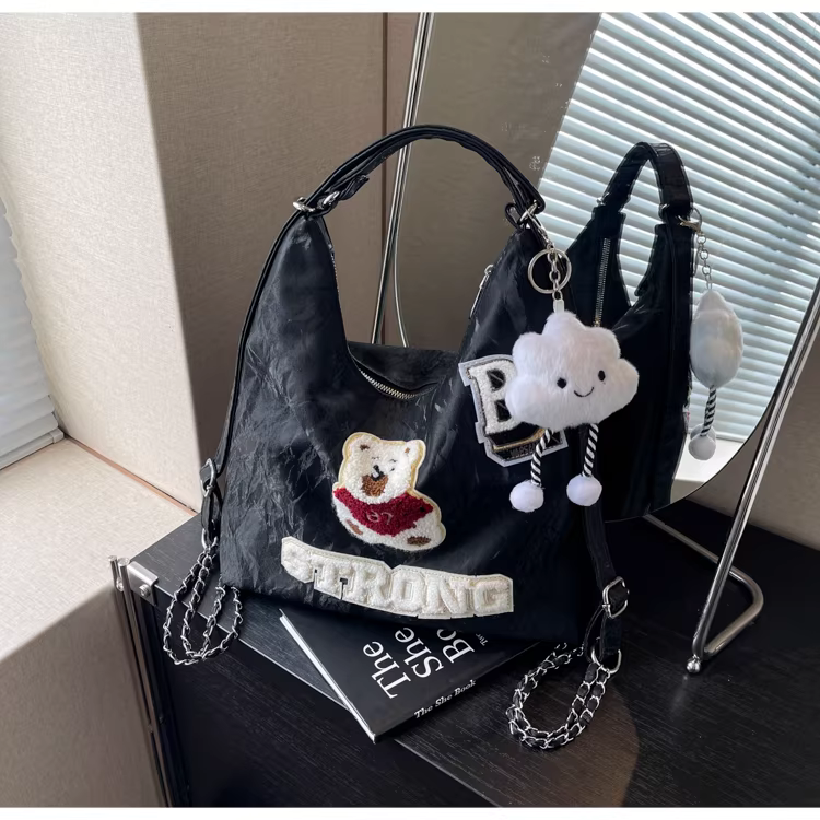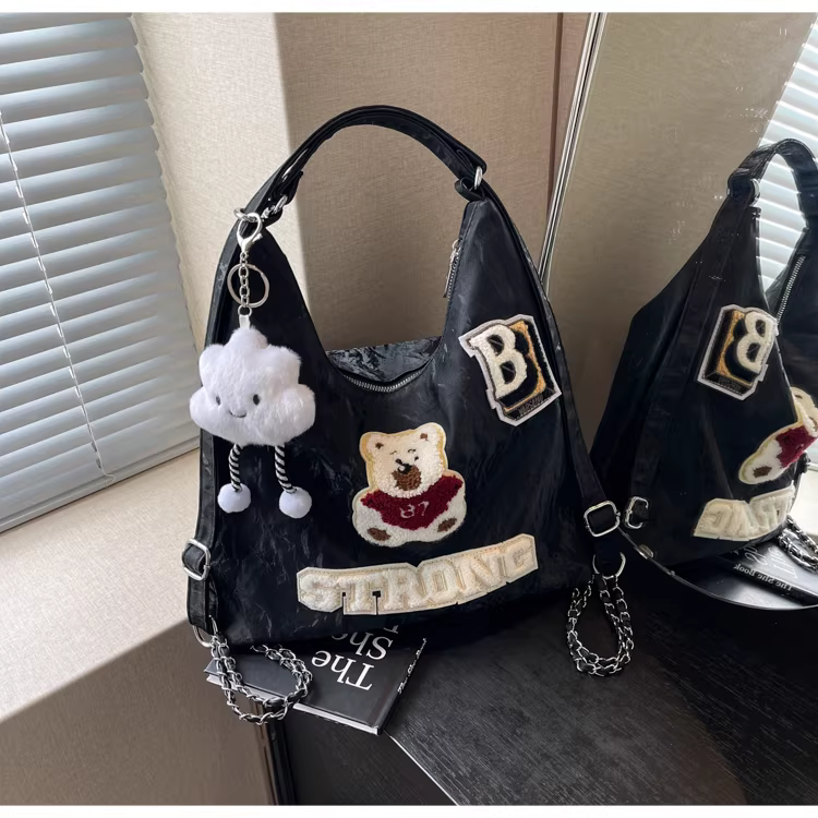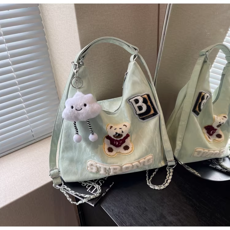 Ba lô nữ thiết kế độc đáo, túi đeo chéo hình gấu, mẫu túi mới 2025, túi đeo dây xích dành cho học sinh.