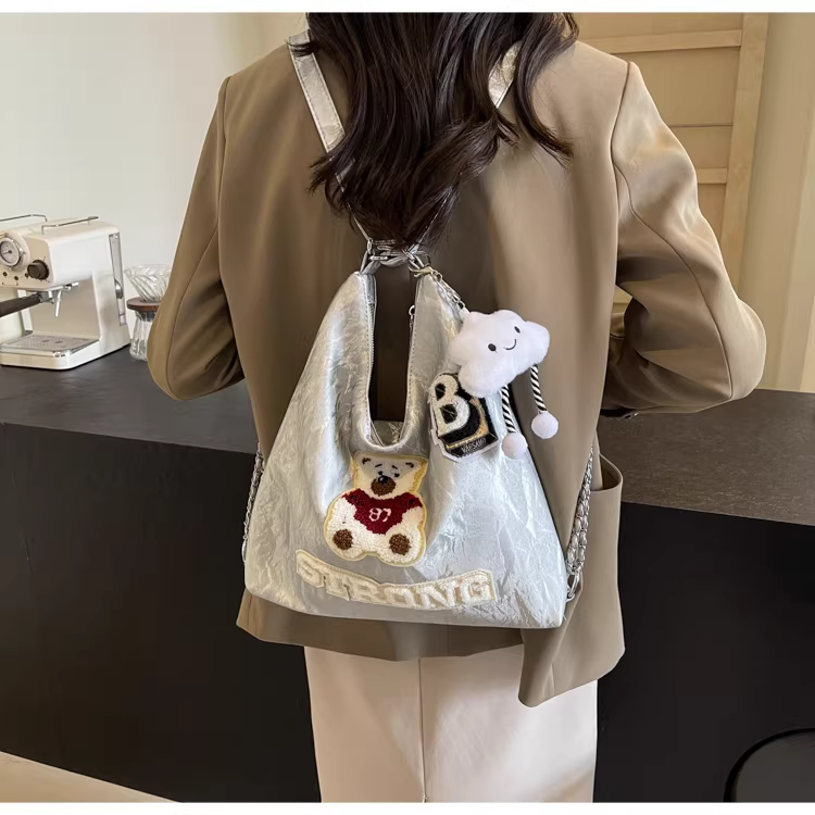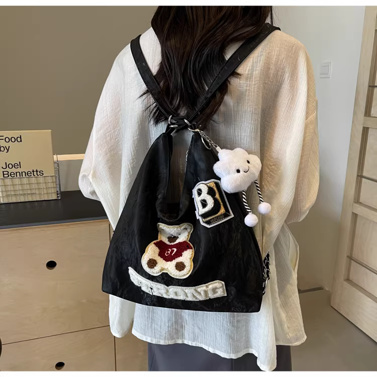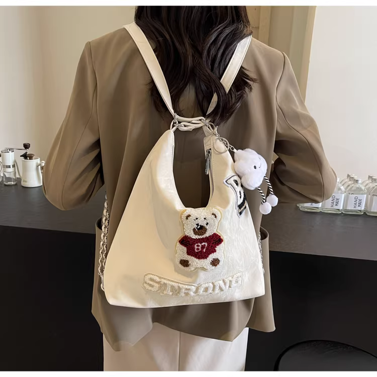 - Ba lô nữ thiết kế độc đáo, túi đeo chéo hình gấu, mẫu túi mới 2025, túi đeo dây xích dành cho học sinh.