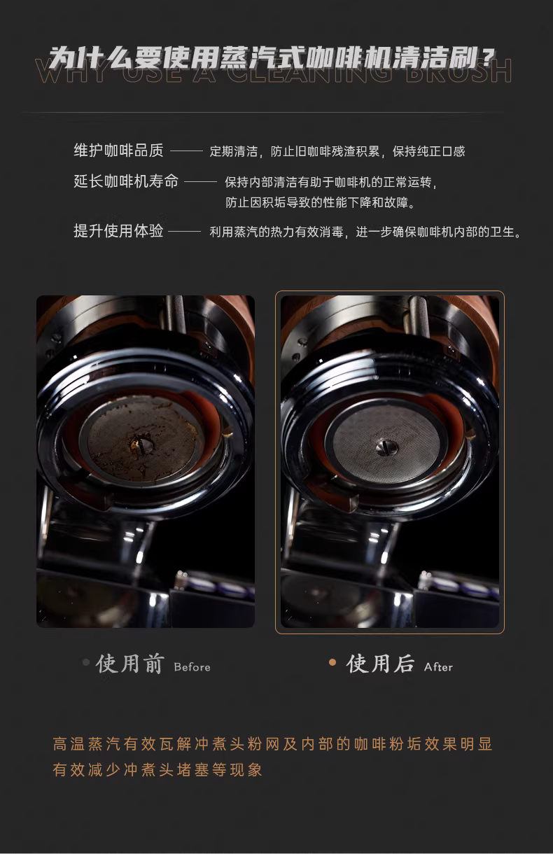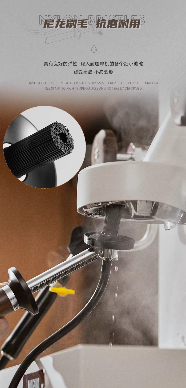 - Bàn chải đầu pha cà phê bằng hơi nước MUVNA dành cho máy pha cà phê espresso, bàn chải vệ sinh chống bỏng áp suất cao thương mại dùng cho gia đình.