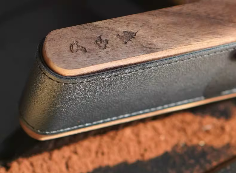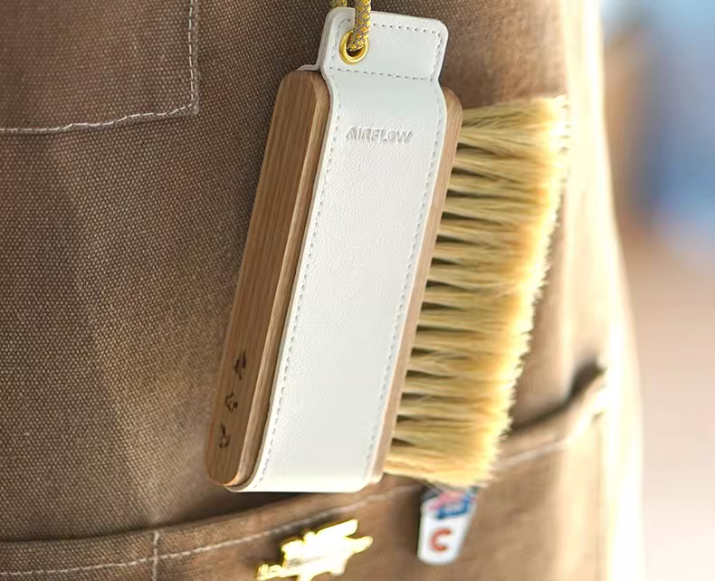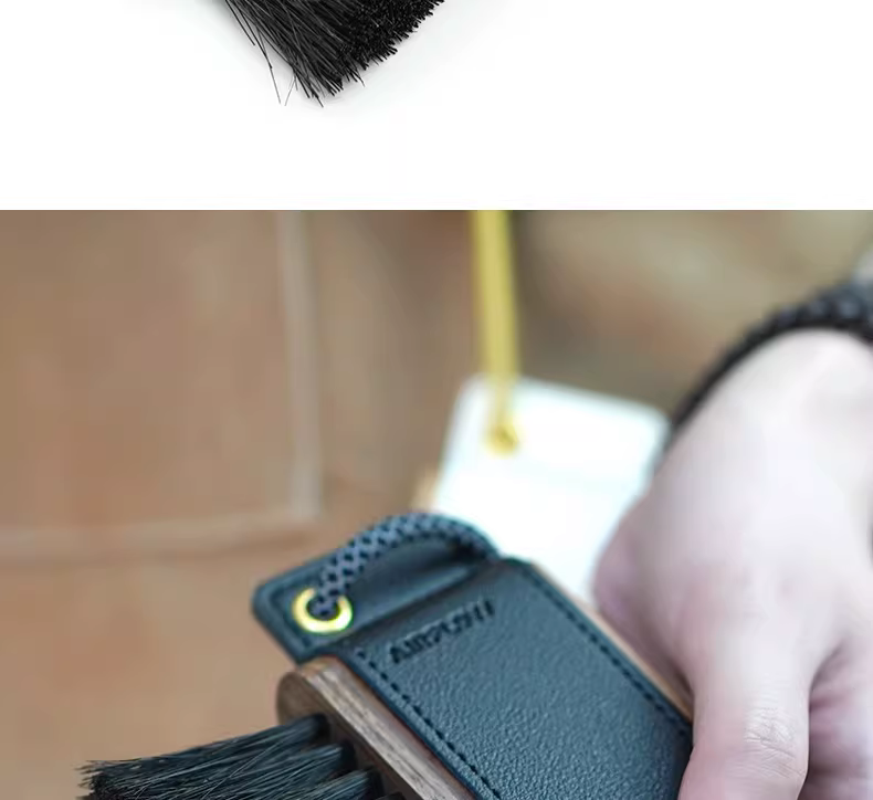 - Bàn chải làm sạch bột cà phê Ý bằng gỗ chắc chắn, lông ngựa, có hộp đựng bằng da