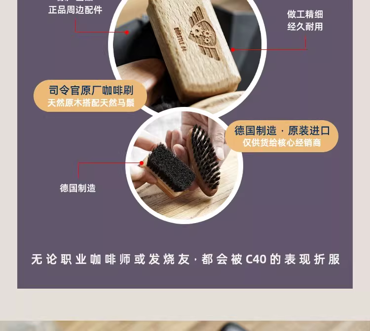 - Bàn chải làm sạch máy xay cà phê Commander C40 chính hãng của Đức, phụ kiện dụng cụ làm sạch bụi bẩn tại quán cà phê