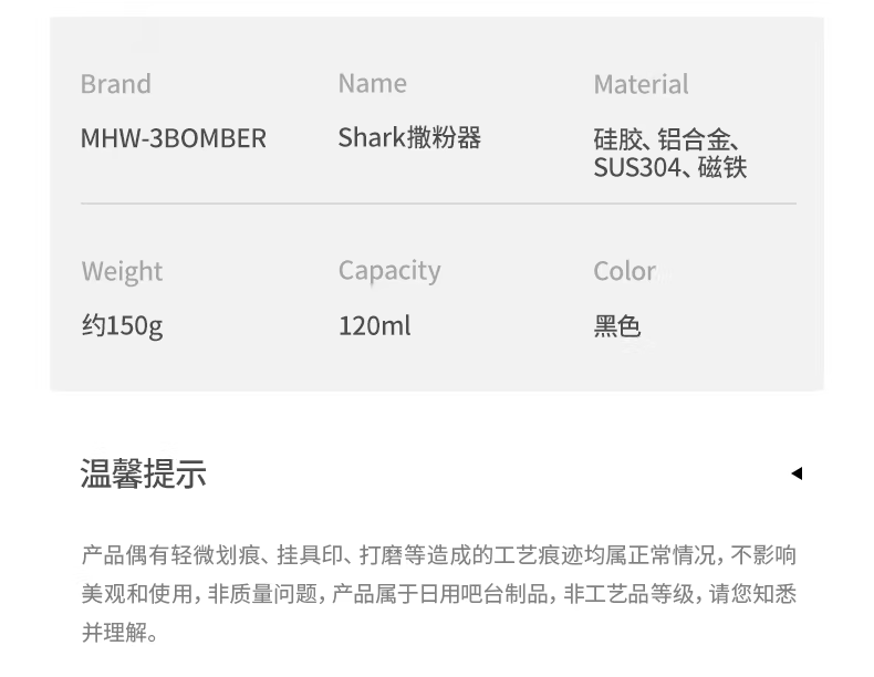 - Bình đựng bột đa năng MHW Bomber Shark, có rây, dùng được cho cà phê, matcha, bột ca cao, có nam châm