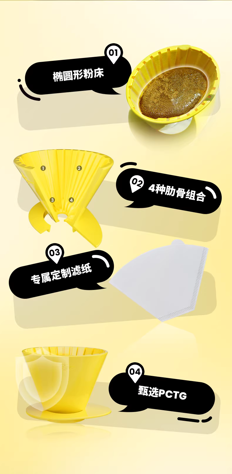 Bình lọc cà phê hình oval MHW, kiểu pha cà phê thủ công, kiểu V60 hình quạt, 2 trong 1, pha và lọc