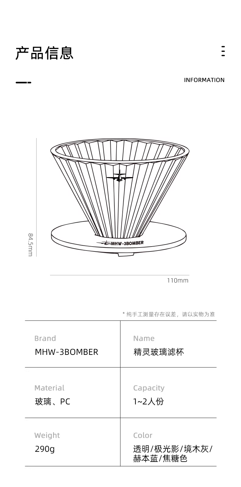 - Bình lọc cà phê kiểu V60 Bomber MHW Elf Glass Filter Cup, dụng cụ pha cà phê thủ công, bộ lọc cà phê đơn, cốc lọc nhỏ giọt