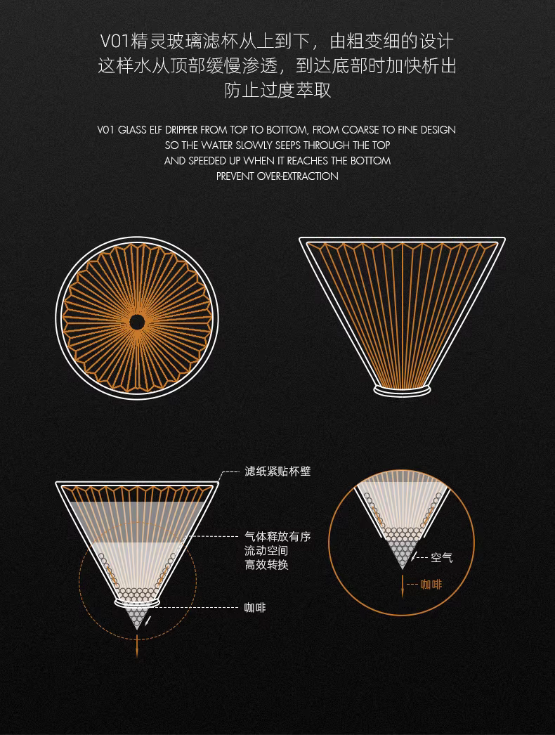 Bình lọc cà phê kiểu V60 Bomber MHW Elf Glass Filter Cup, dụng cụ pha cà phê thủ công, bộ lọc cà phê đơn, cốc lọc nhỏ giọt