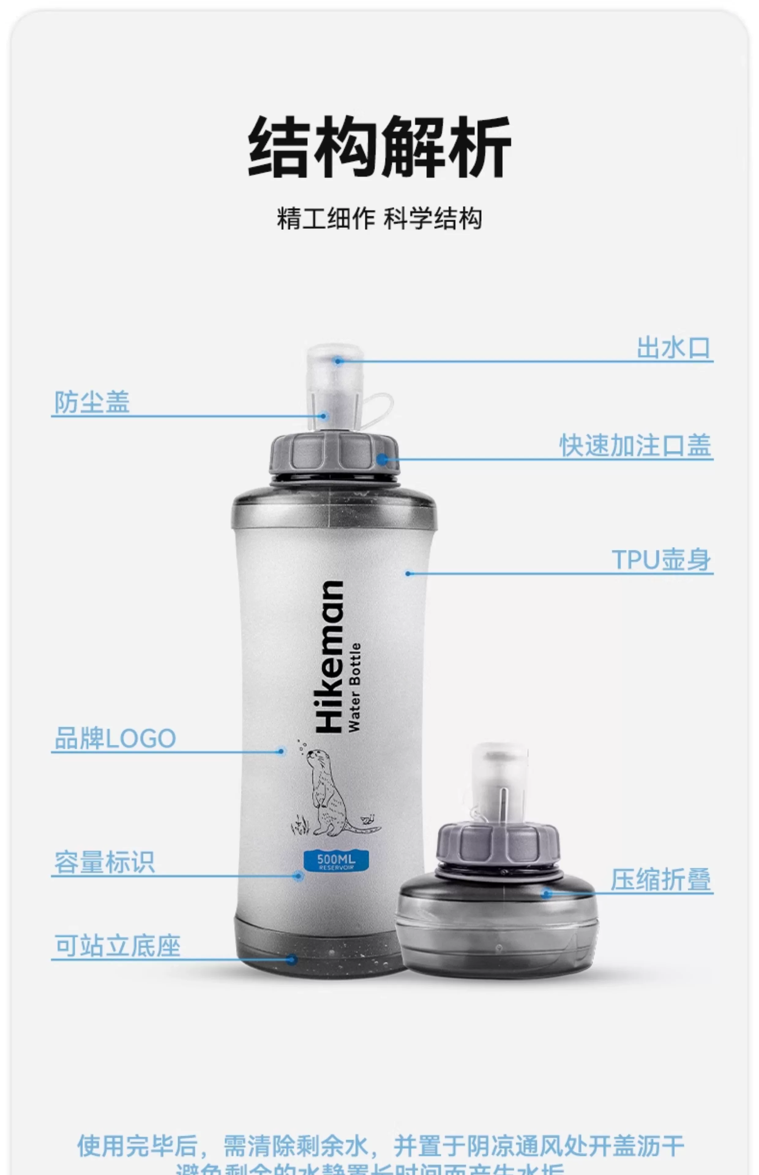- Bình nước thể thao ngoài trời chất liệu silicon mềm, có thể gấp gọn, dùng cho đạp xe, leo núi, chạy bộ, thể dục đường dài, chất liệu TPU, cốc nước di động