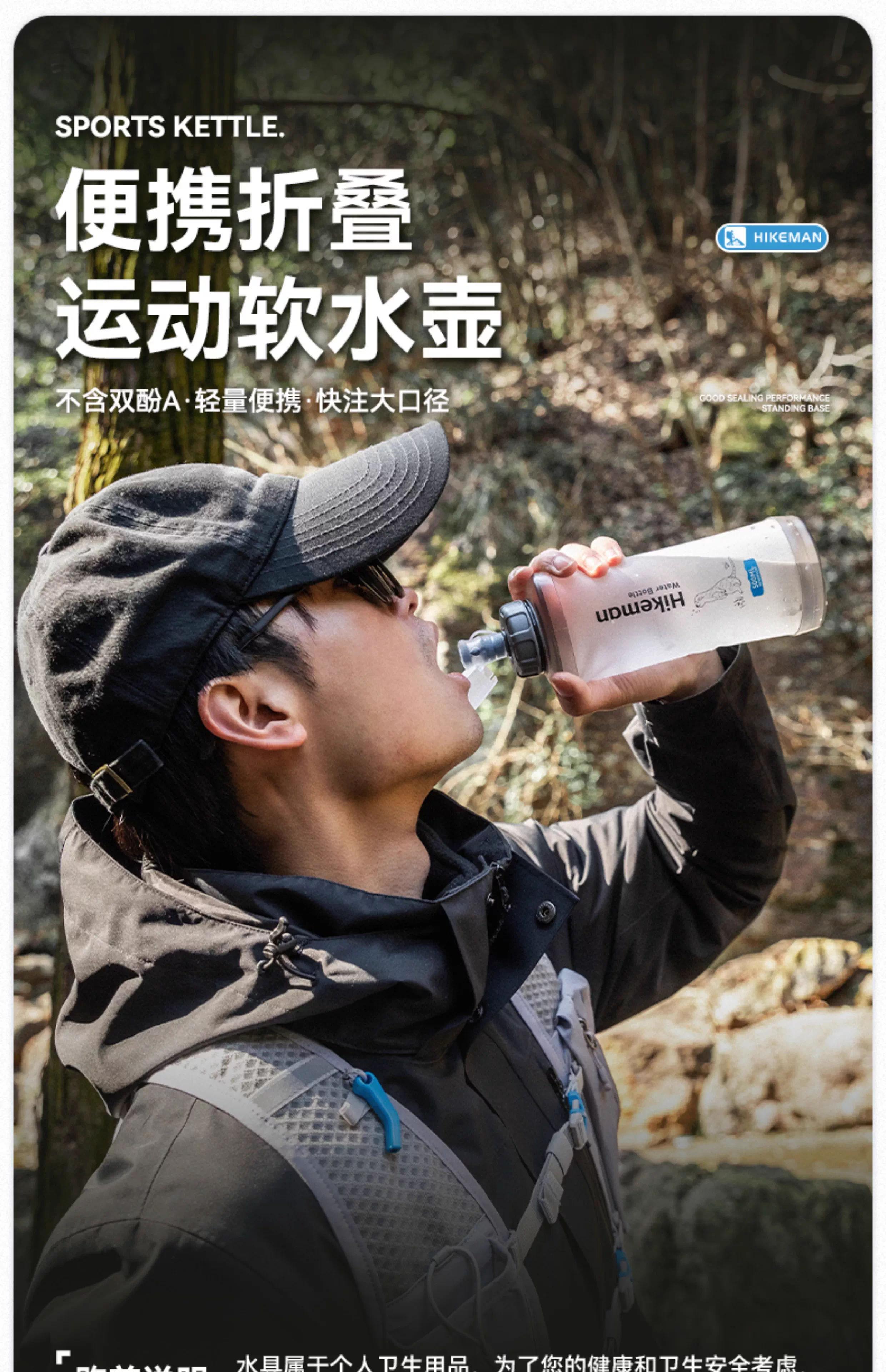Bình nước thể thao ngoài trời chất liệu silicon mềm, có thể gấp gọn, dùng cho đạp xe, leo núi, chạy bộ, thể dục đường dài, chất liệu TPU, cốc nước di động