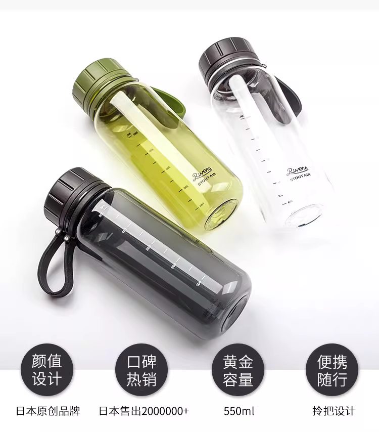 Bình nước thể thao Nhật Bản, di động, gắn xe hơi, chống rò rỉ, du lịch ngoài trời, unisex, mùa hè, bình nước thể dục, dung tích lớn