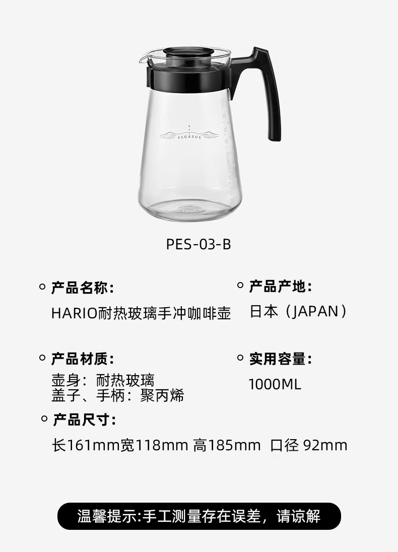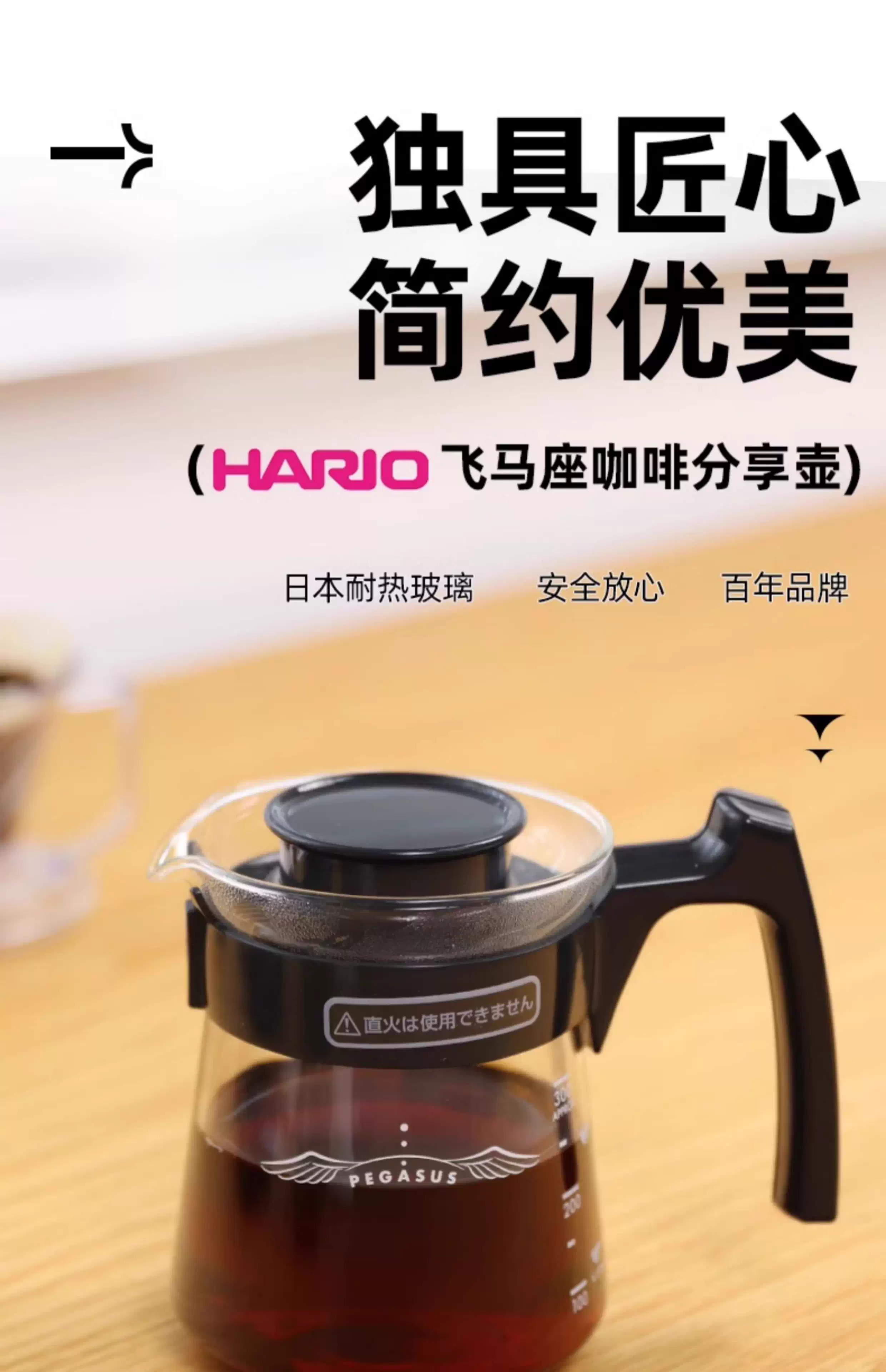 Bình pha cà phê HARIO Nhật Bản, chất liệu thủy tinh chịu nhiệt, kiểu dáng Pegasus, dùng pha cà phê thủ công, cốc lọc V60, kalita