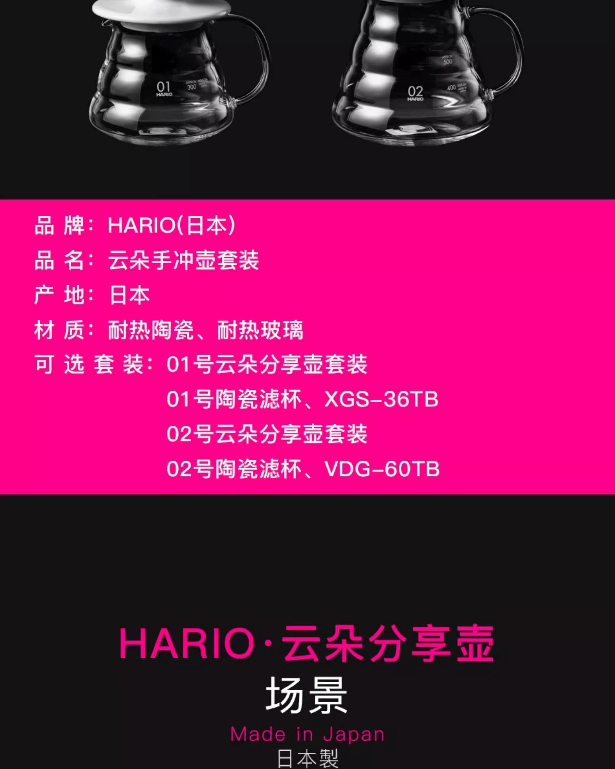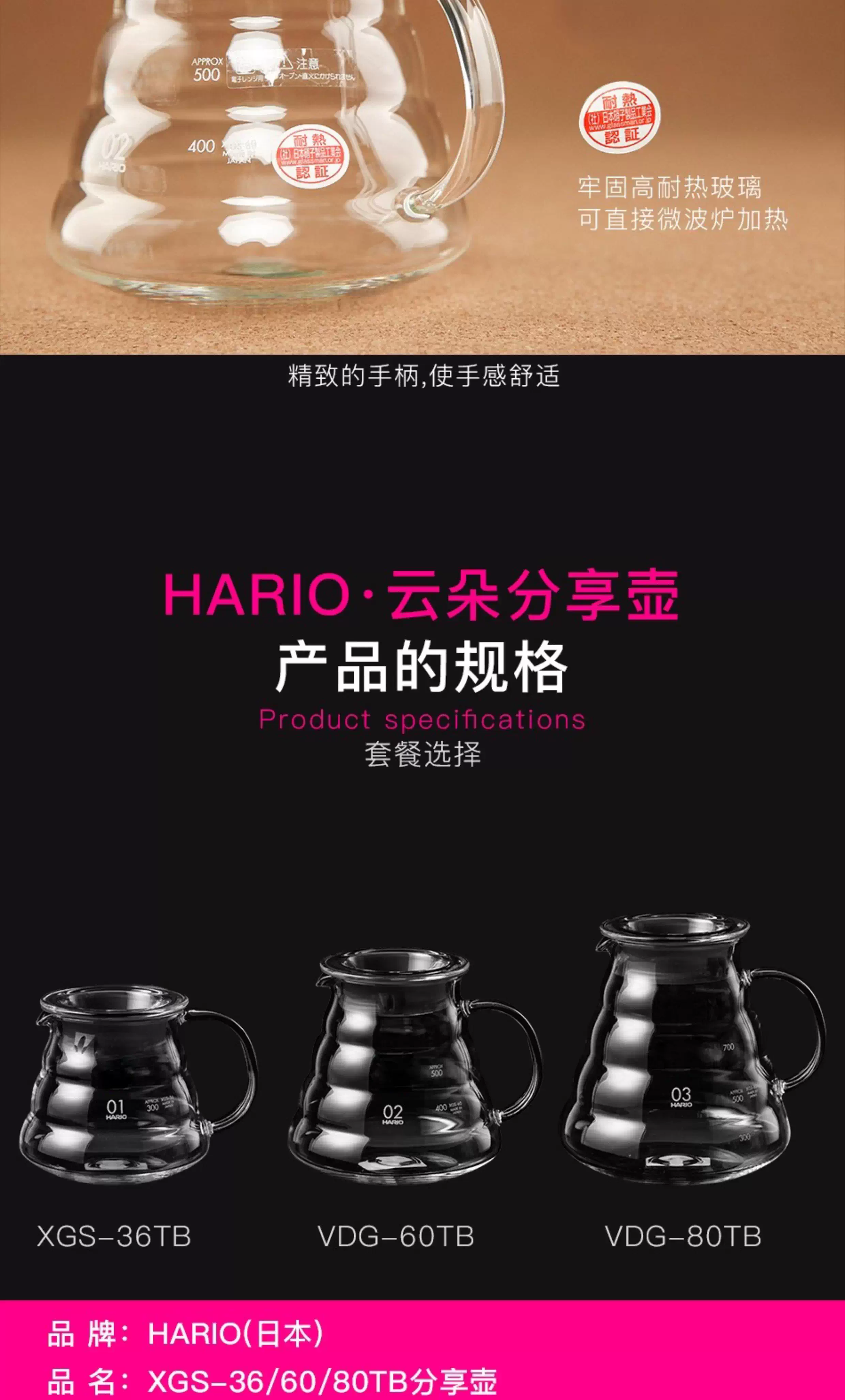 Bình pha cà phê Hario Pour Over chính hãng Nhật Bản Bình pha cà phê Classic Cloud Pot Thủy tinh chịu nhiệt XGS-36