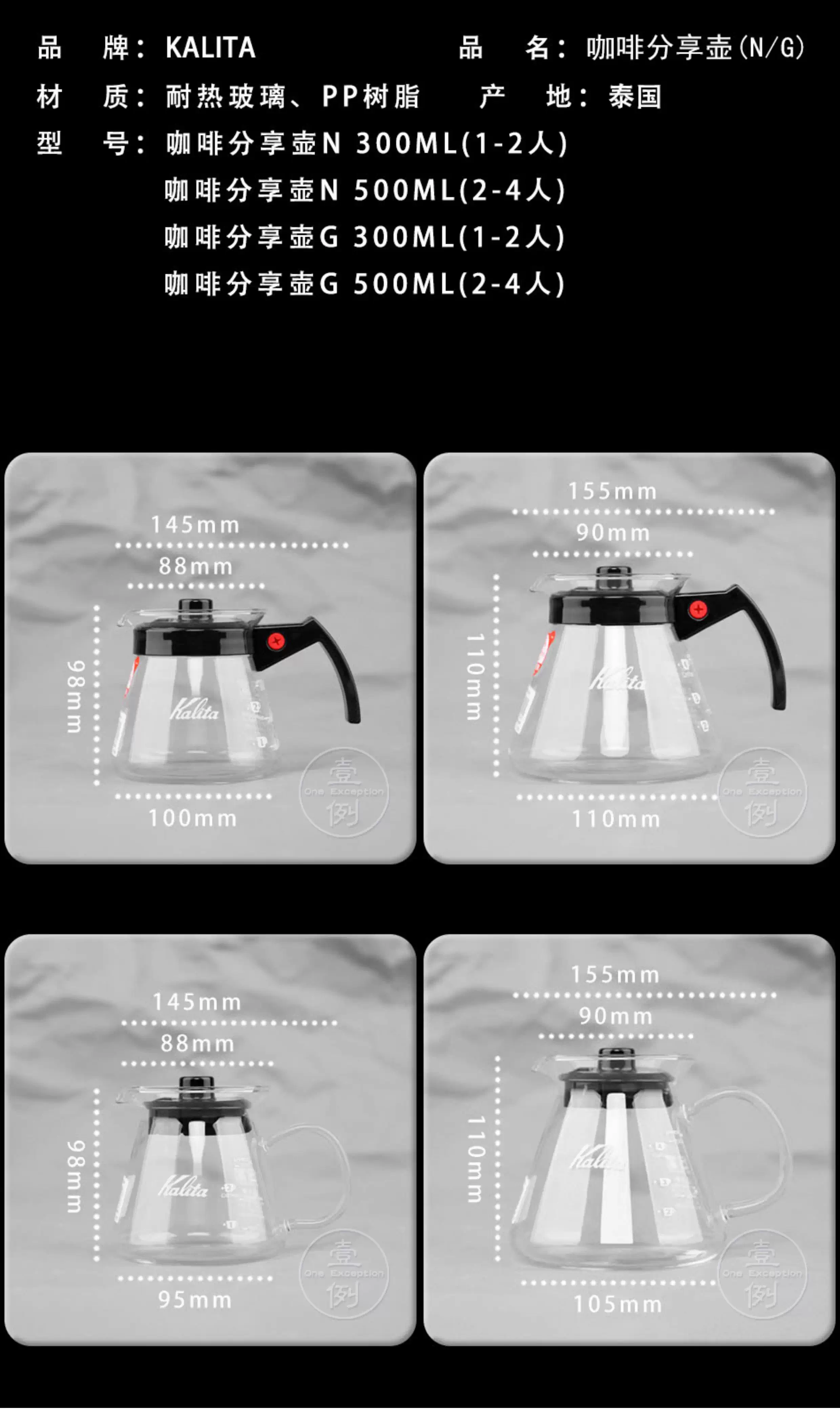 Bình pha cà phê KALITA Nhật Bản, bình rót thủy tinh chịu nhiệt, bình nhỏ giọt 300ml/500ml