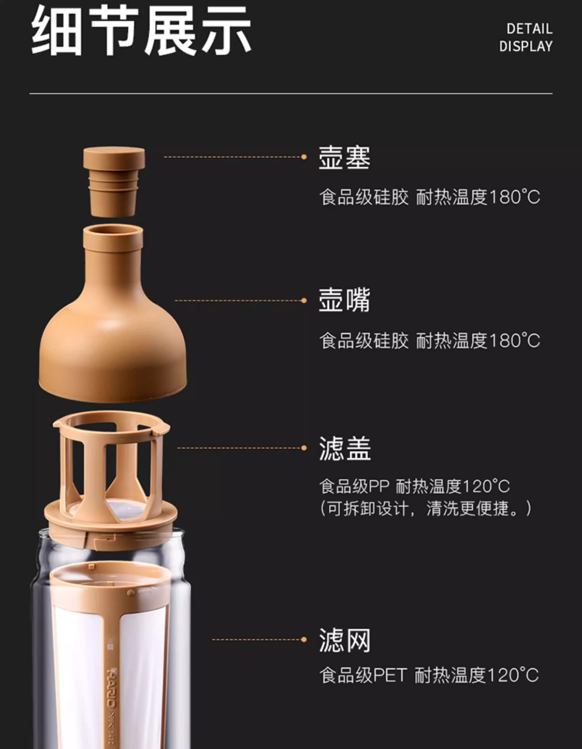Bình pha cà phê lạnh HARIO Nhật Bản, bình giữ lạnh, lưới lọc, dụng cụ pha trà hoa quả, cốc lọc nước đá, cốc pha cà phê đá