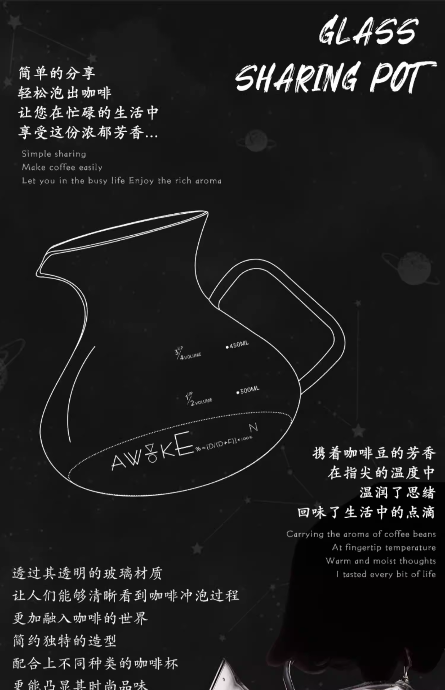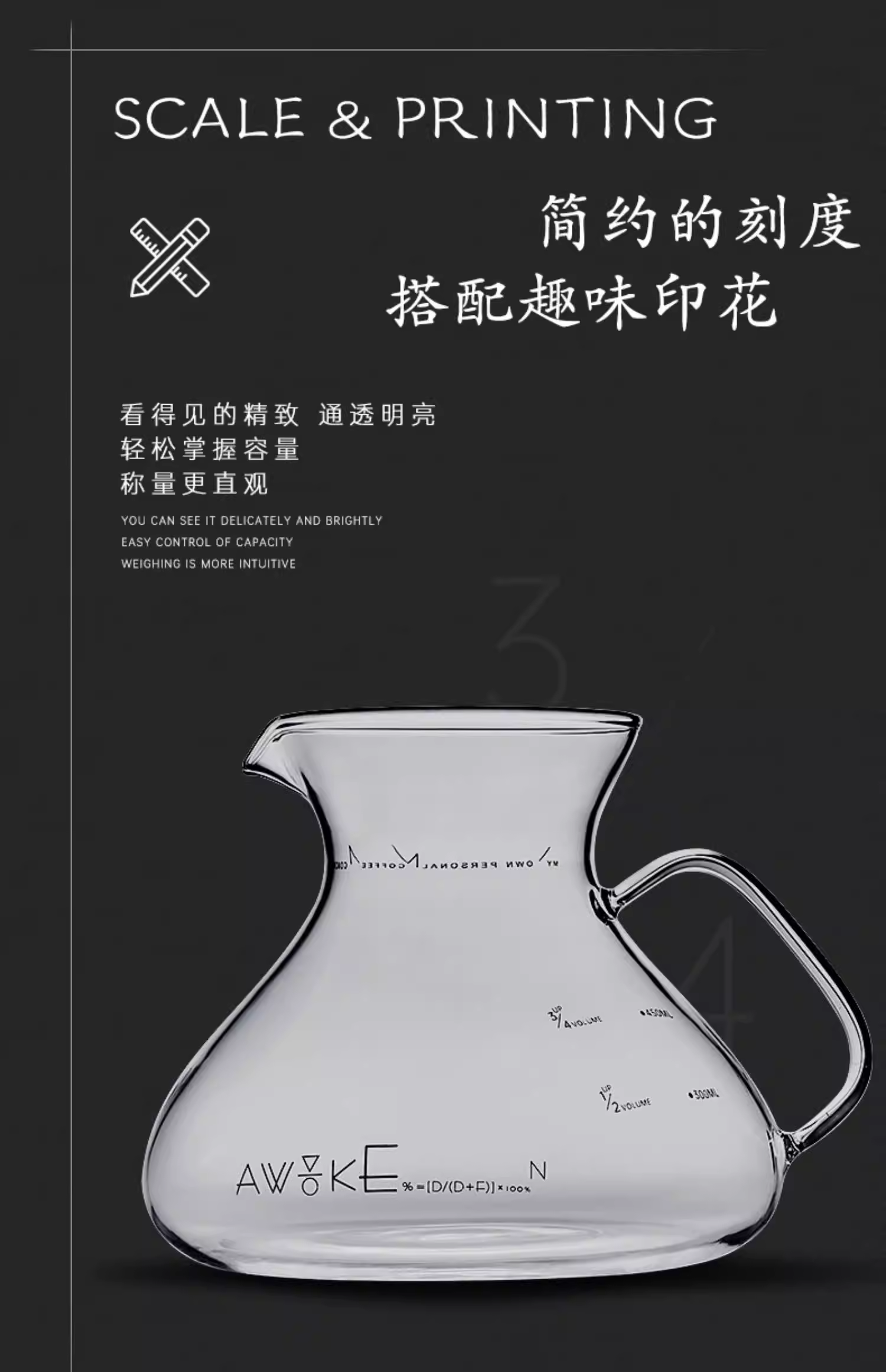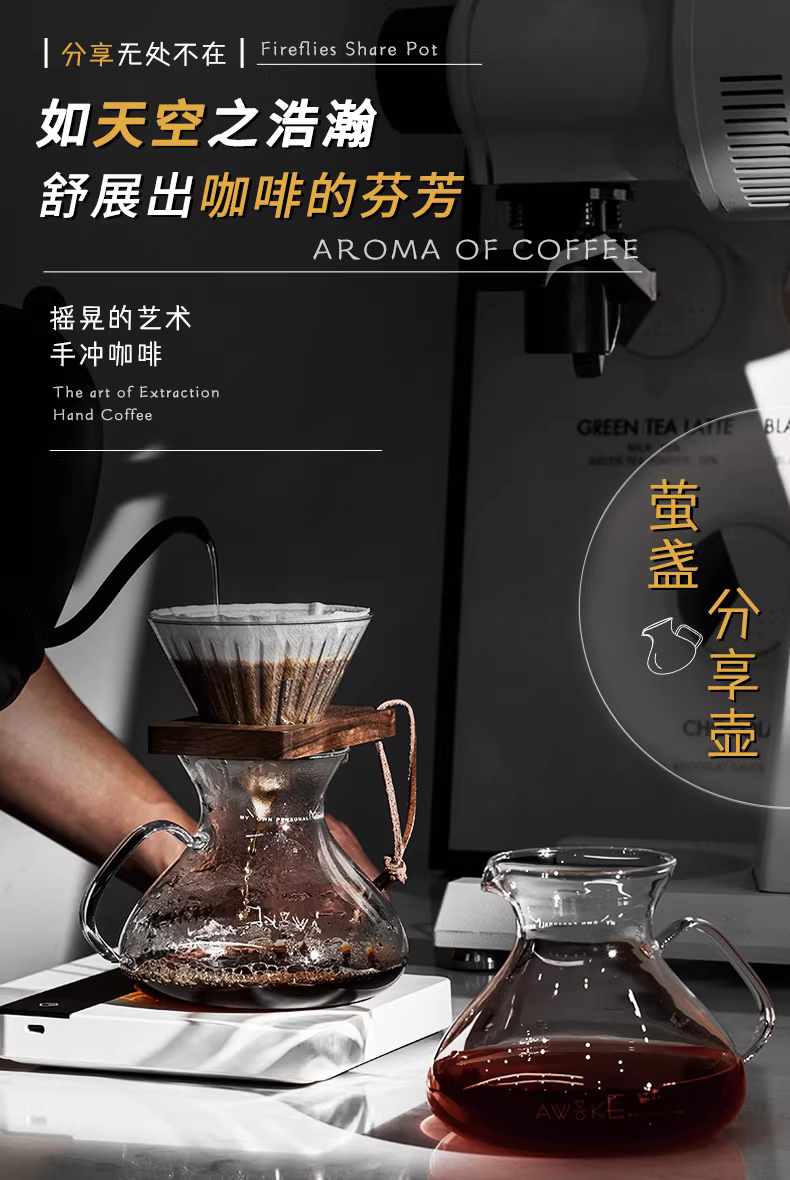 Bình pha cà phê MUVNA, bình thủy tinh có vạch chia, kiểu pha cà phê kiểu Mỹ bằng phương pháp nhỏ giọt, hình dạng quả núi
